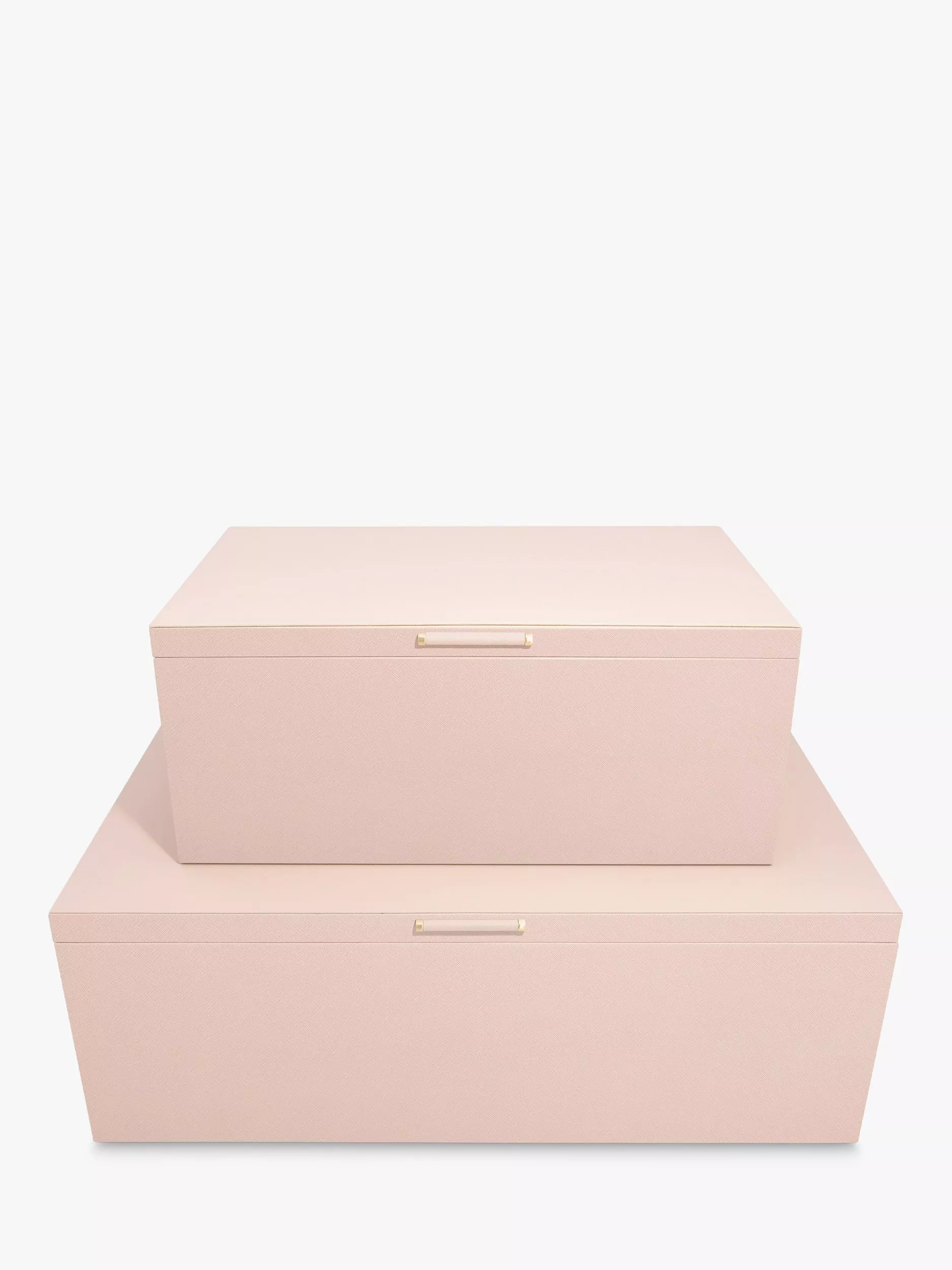 This set of 2 Storage boxes will add a touch of luxury to your home storage solution. Both Storage boxes are finished in a supersoft Faux Leather with a plush velvet lining interior, and premium metal handles. With removable internal dividers, all of your organisational needs are taken care of!