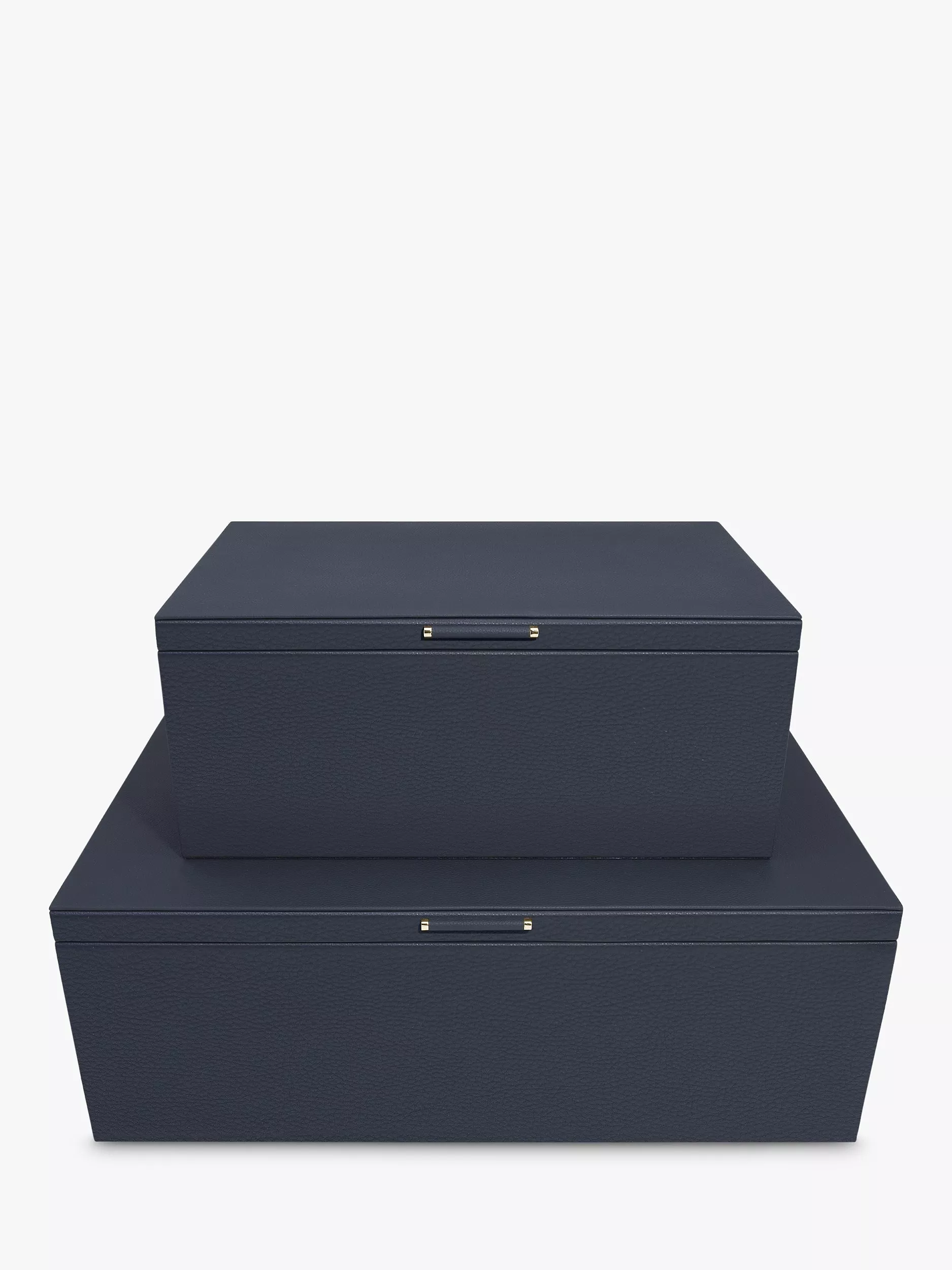 This set of 2 Storage boxes will add a touch of luxury to your home storage solution. Both Storage boxes are finished in a supersoft Faux Leather with a plush velvet lining interior, and premium metal handles. With removable internal dividers, all of your organisational needs are taken care of!
