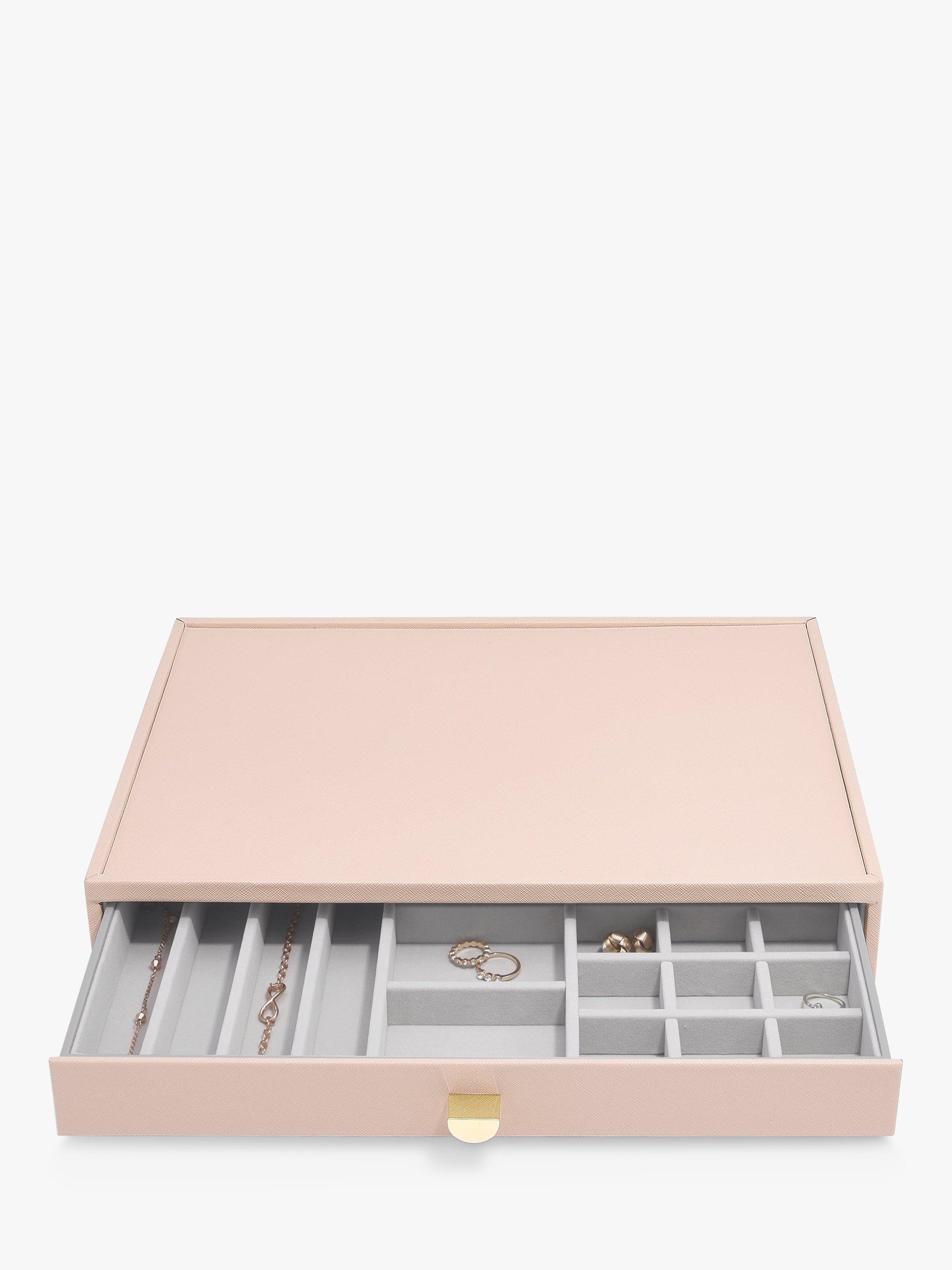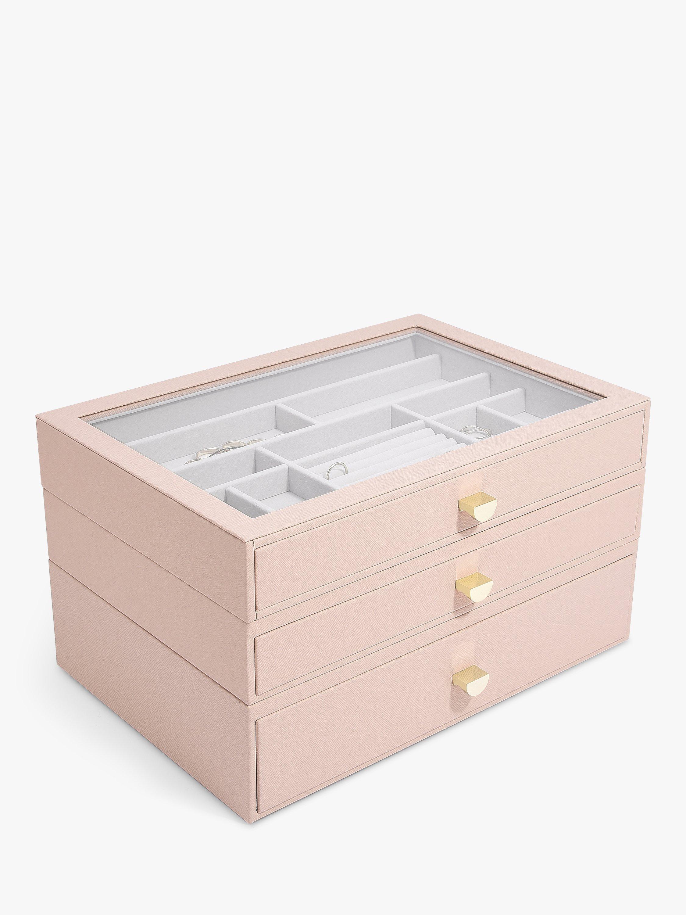 There'll be no excuse for your favourite jewellery to be anything other than tangle-free and organised! The Supersize Drawer Set of 3 is ideal for almost every jewellery collection. With plenty of space to keep your necklaces, rings, earrings, watches and more, beautifully organised and safe. Featuring a clear glass lid for visibility and easy access to your favourite pieces. Whatsmore, you can easily add another jewellery drawer layer as your collection grows!