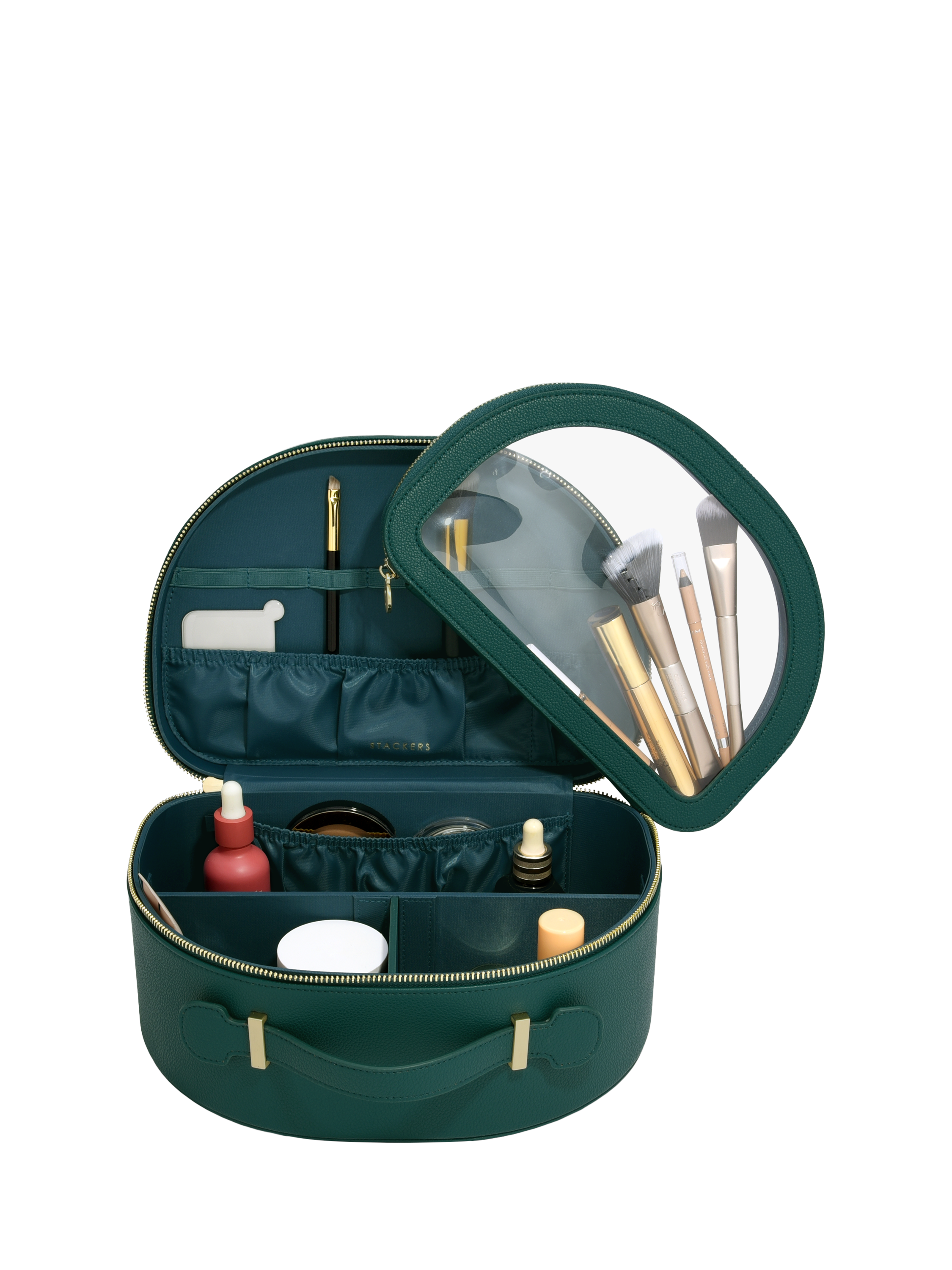 The Stackers Vanity Case includes multiple internal pockets and elastic loops to keep beauty products safely stored away. With a removable clear pouch, ideal for keeping makeup brushes separate and clean. The rigid exterior keeps everything in place and secure. Inside, there are internal dividers to help you organise and a wipeable lining. Keep your dressing table organised with your cosmetics neatly zipped away, or use the carry handle to easily pick up and take with you for travel.