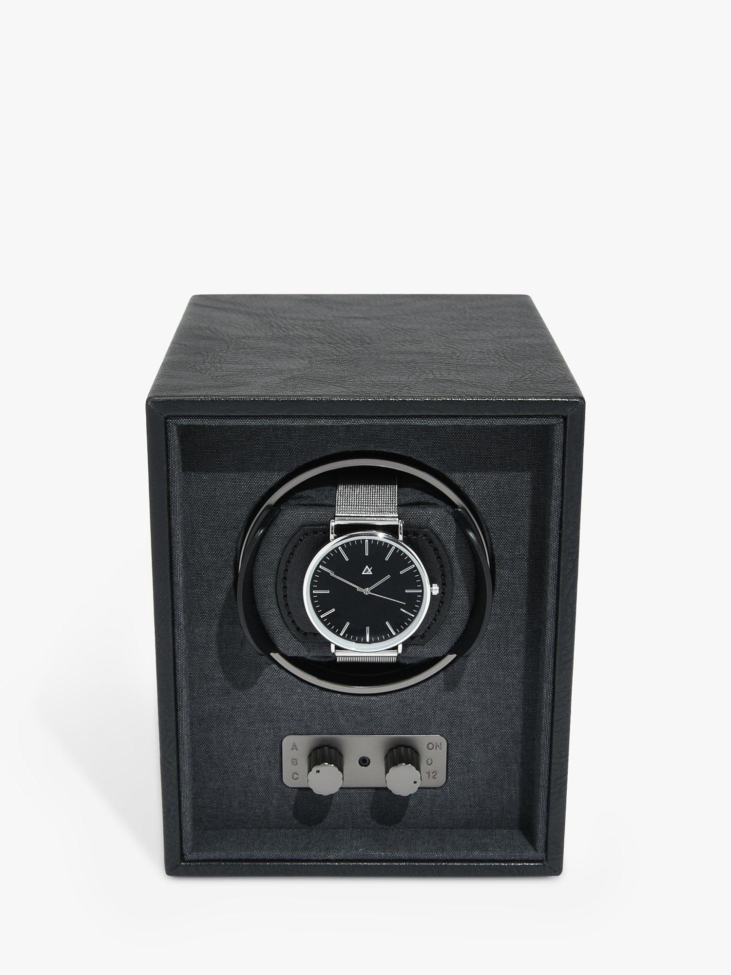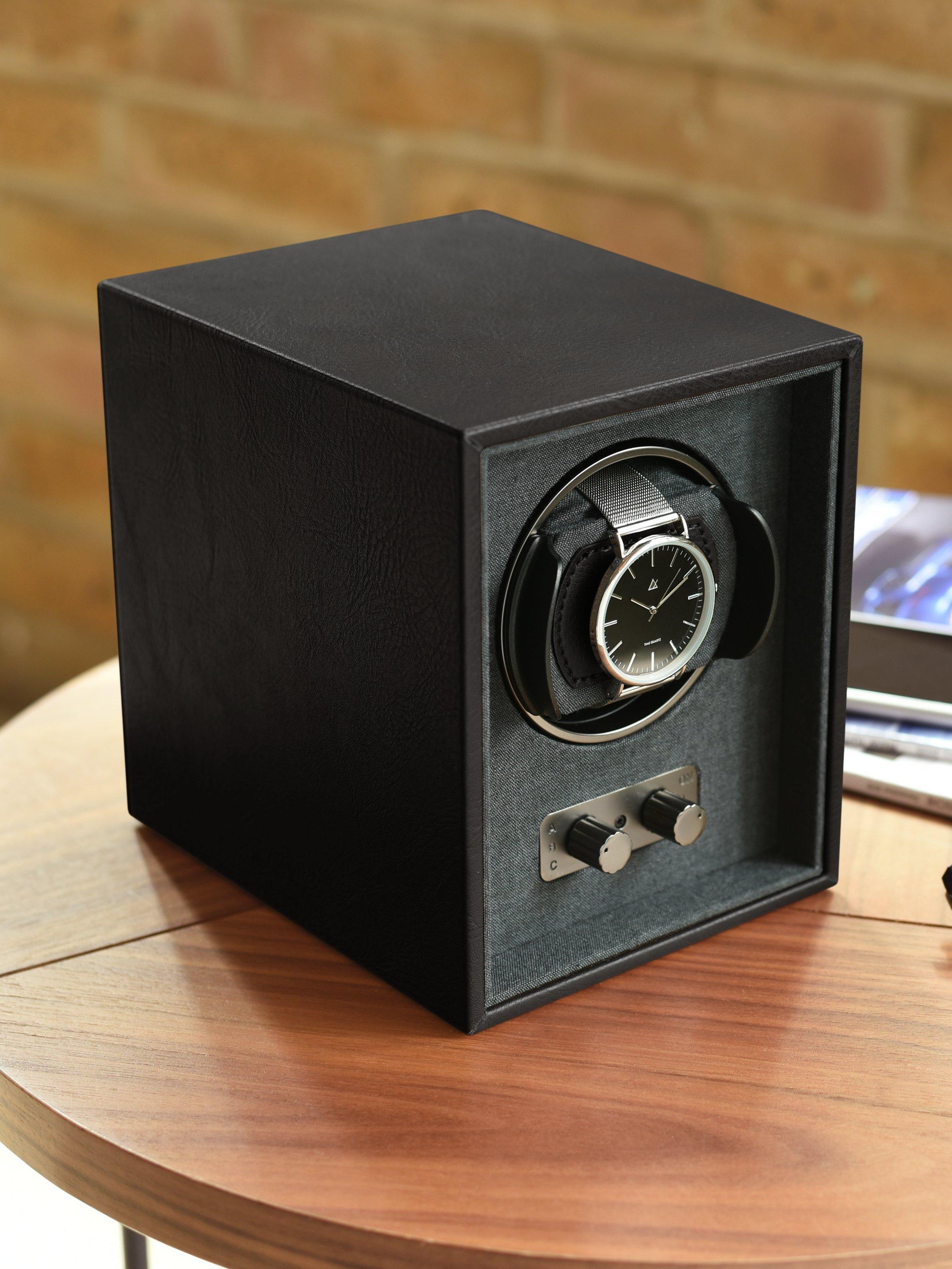 Transform your watch collection into a real focal point with the classically styled Stackers Watch Winder. This meticulously engineered watch winder featuring a soft vegan leather case and textured cotton detailing with smart gunmetal finished hardware.