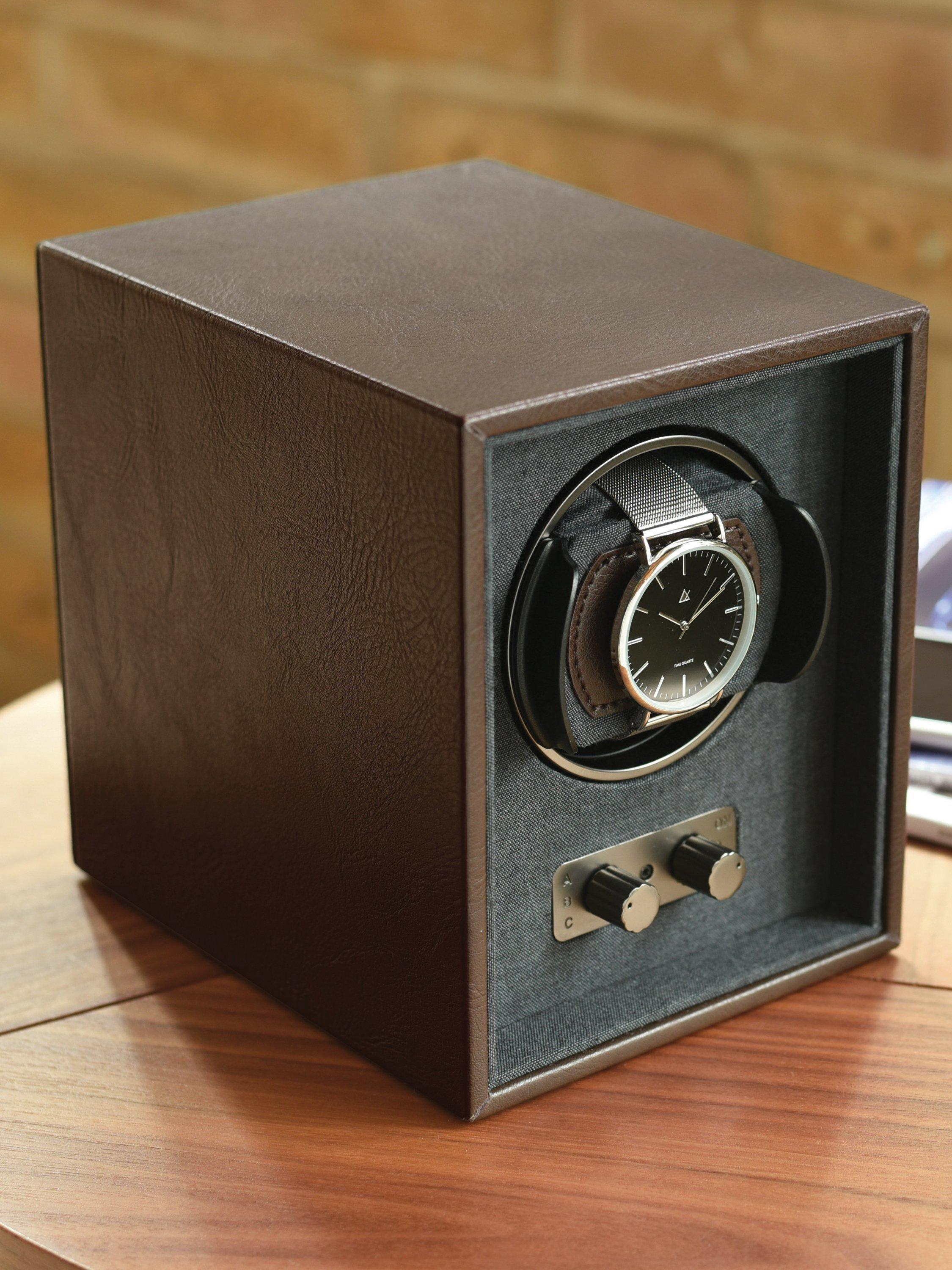 Contemporary styling with brushed gun metal Grey finish hardware, a perfect blend of product design and technology to keep automatic watches perfectly wound and looked after when not being worn.