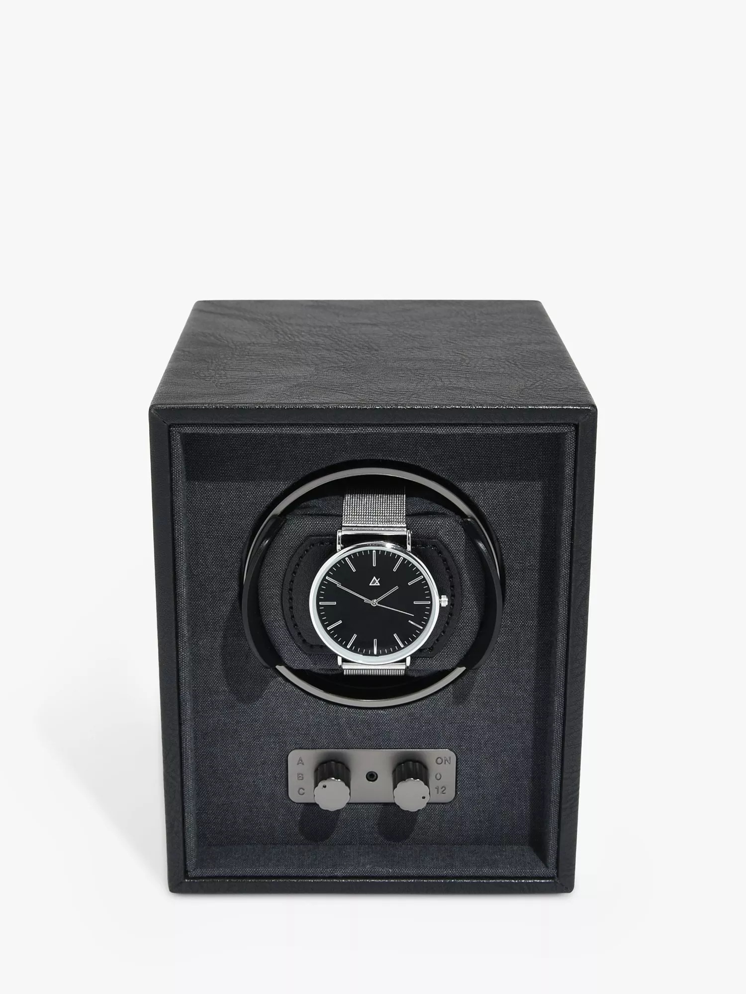 Transform your watch collection into a real focal point with the classically styled Stackers Watch Winder. This meticulously engineered watch winder featuring a soft vegan leather case and textured cotton detailing with smart gunmetal finished hardware.