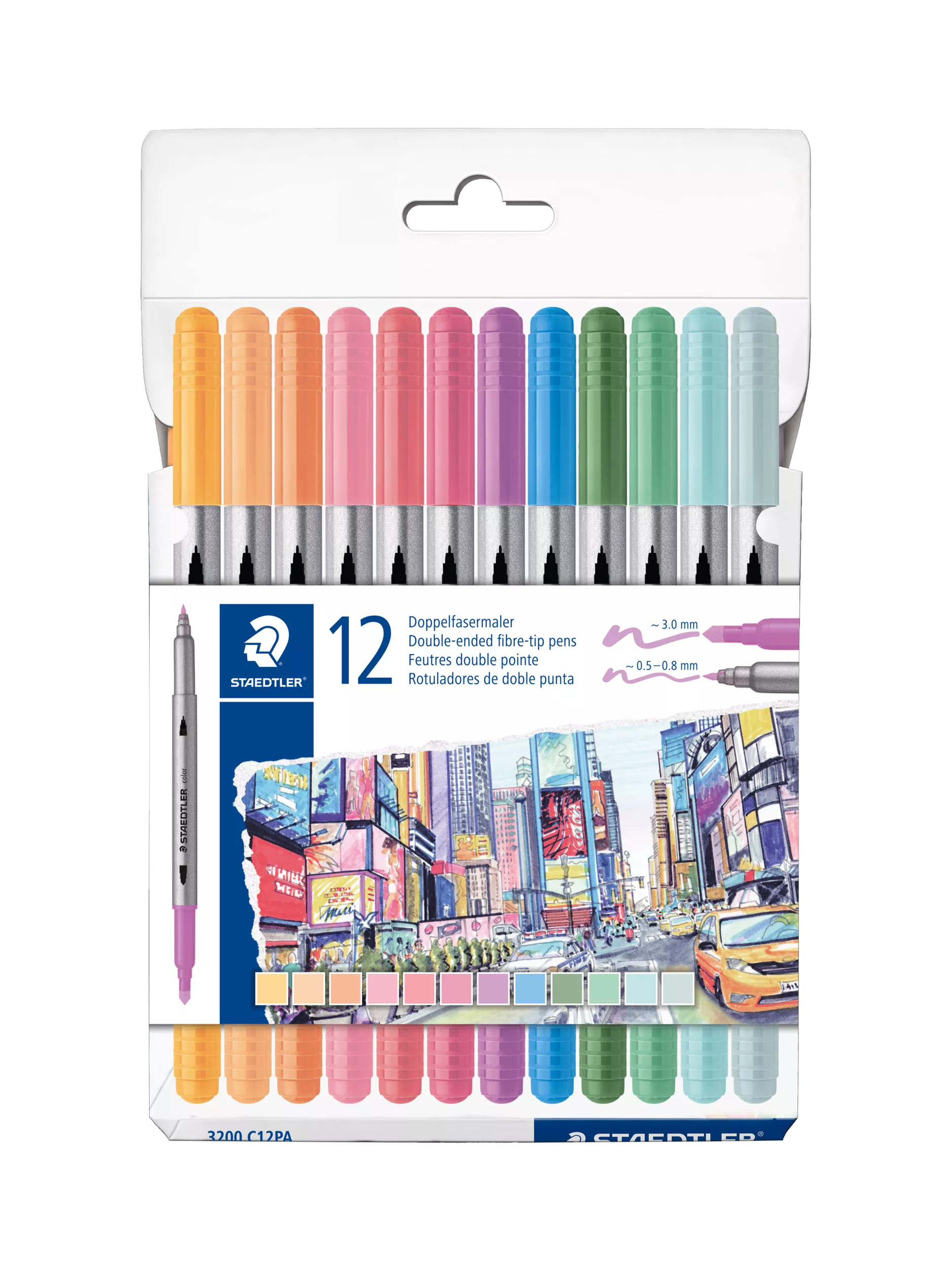 The pack includes 12 double-ended fibre-tip pens in a variety of pastel colours that spark the imagination to write, draw and design and can also be used for other types of artwork such as lettering, graphics, and modern calligraphy.