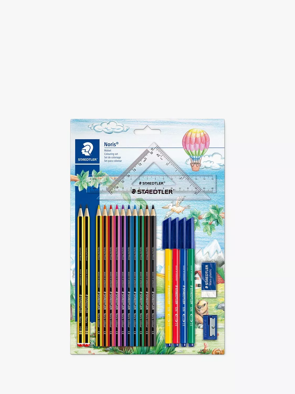 The set comes with an array of colourful pencils and pens, including the well-known Noris graphite pencil.