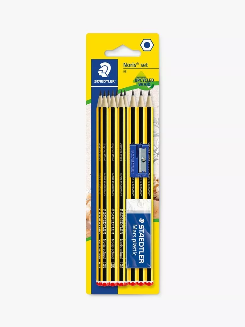 This STAEDTLER Noris set including 10 high quality Noris HB pencils in the iconic black and yellow design, a sharpener and eraser, is the perfect addition to your pencil case or desk. These high-quality pencils are incredibly break resistant and are easy to sharpen and erase. The HB pencils are ideal for writing, drawing and sketching whilst the eraser provides superior erasing performance with minimal crumbling. The pack is a must have for students going back to school, college, or university.