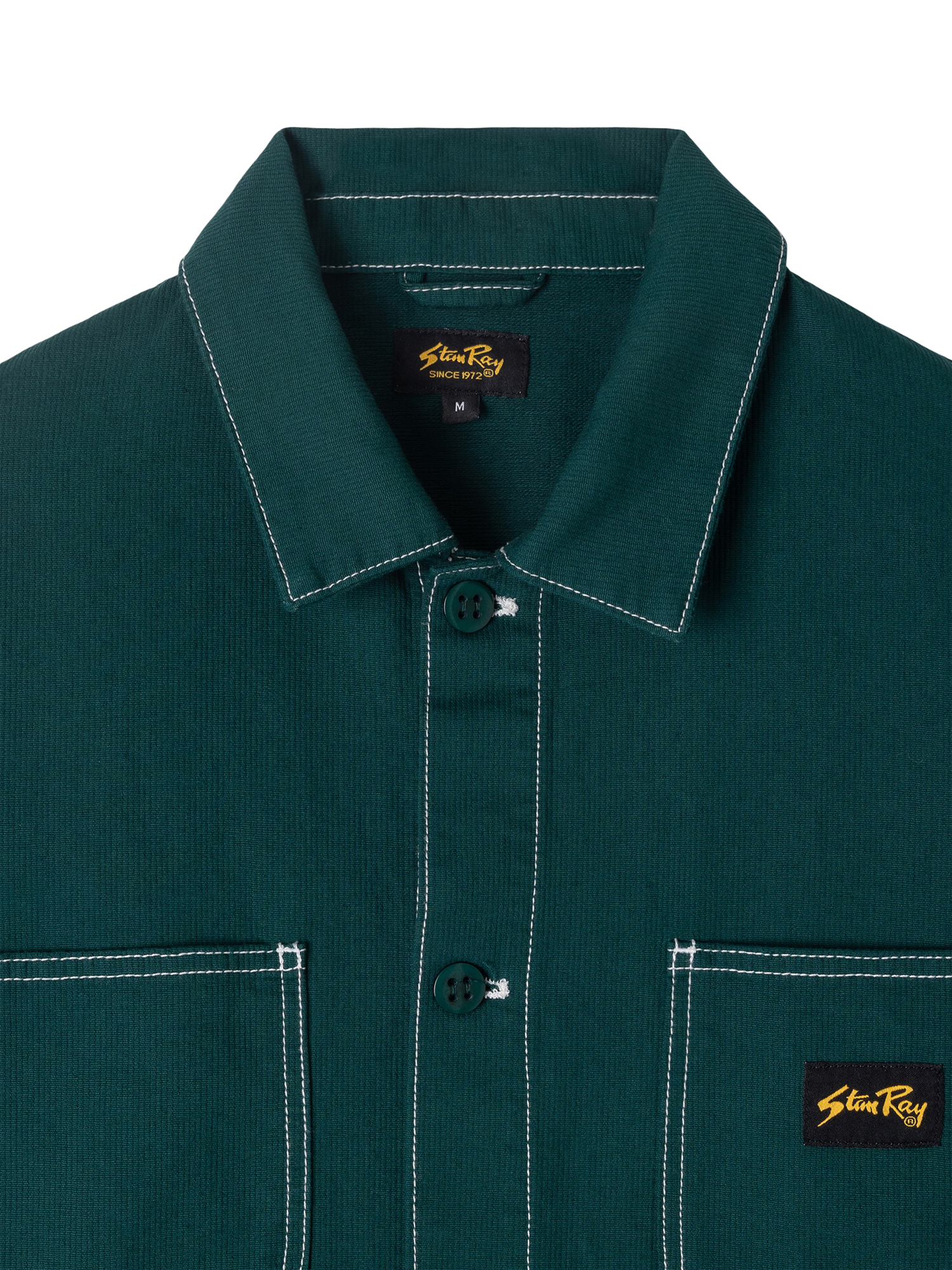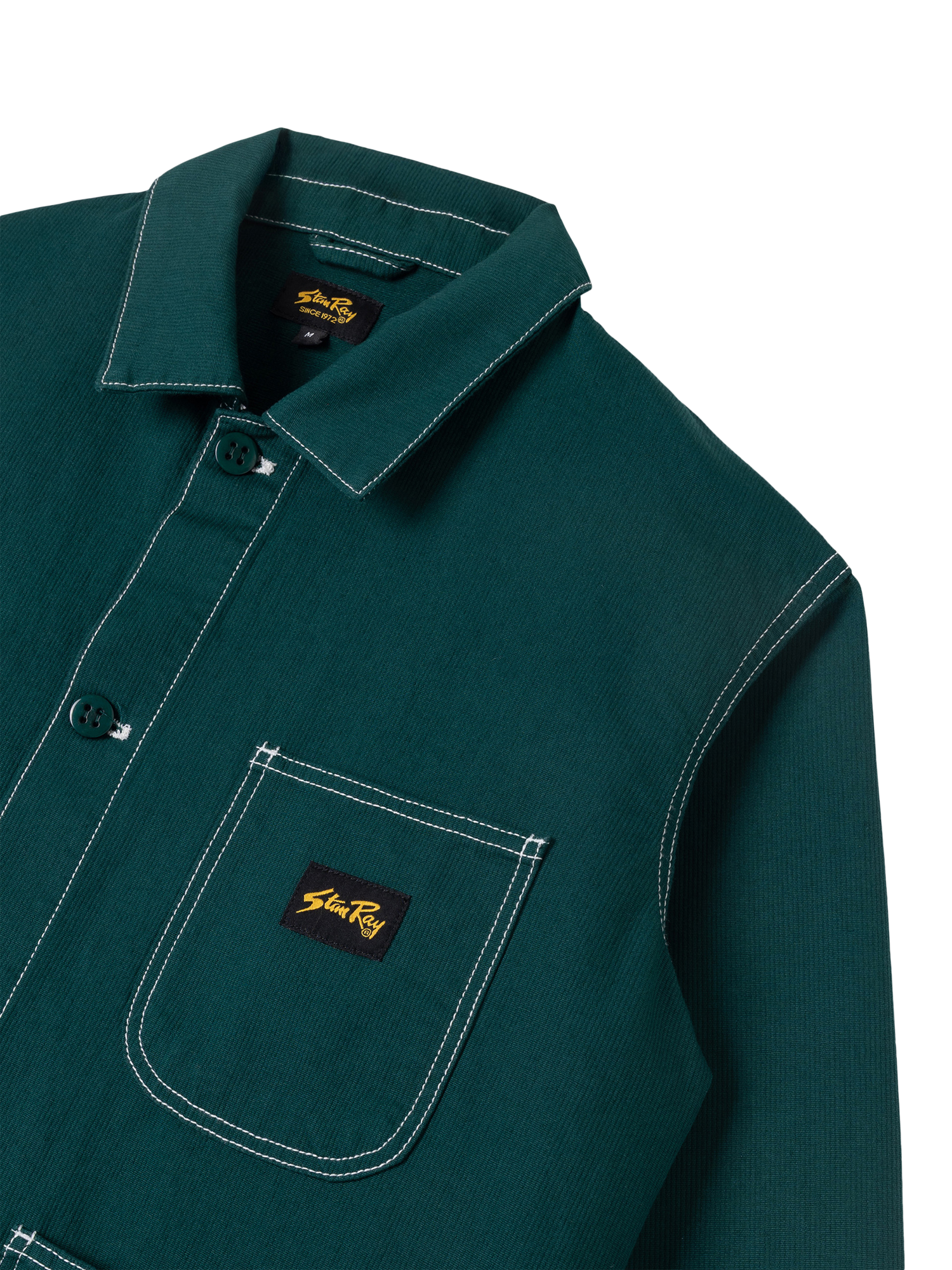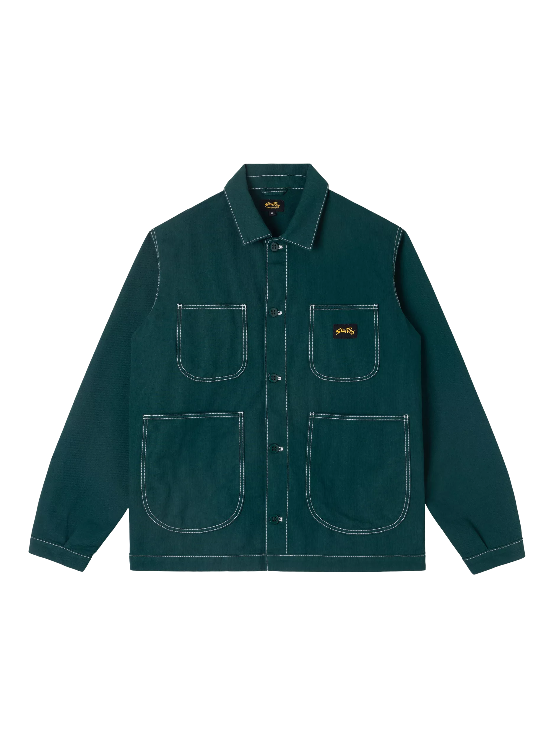 The jacket’s design is all about confident functionality. It features an oversized, relaxed fit that layers easily and offers comfortable movement. Storage is generous, with two deep front bellow pockets alongside two chest pockets for keeping essentials secure. Details are focused on durability, with triple chain stitched flat-felled seams and bartacked stress points ensuring the jacket stands up to repeated, demanding wear. It fastens with the classic Stan Ray ‘Donut’ button, adding a final touch of heritage quality to this modern staple.