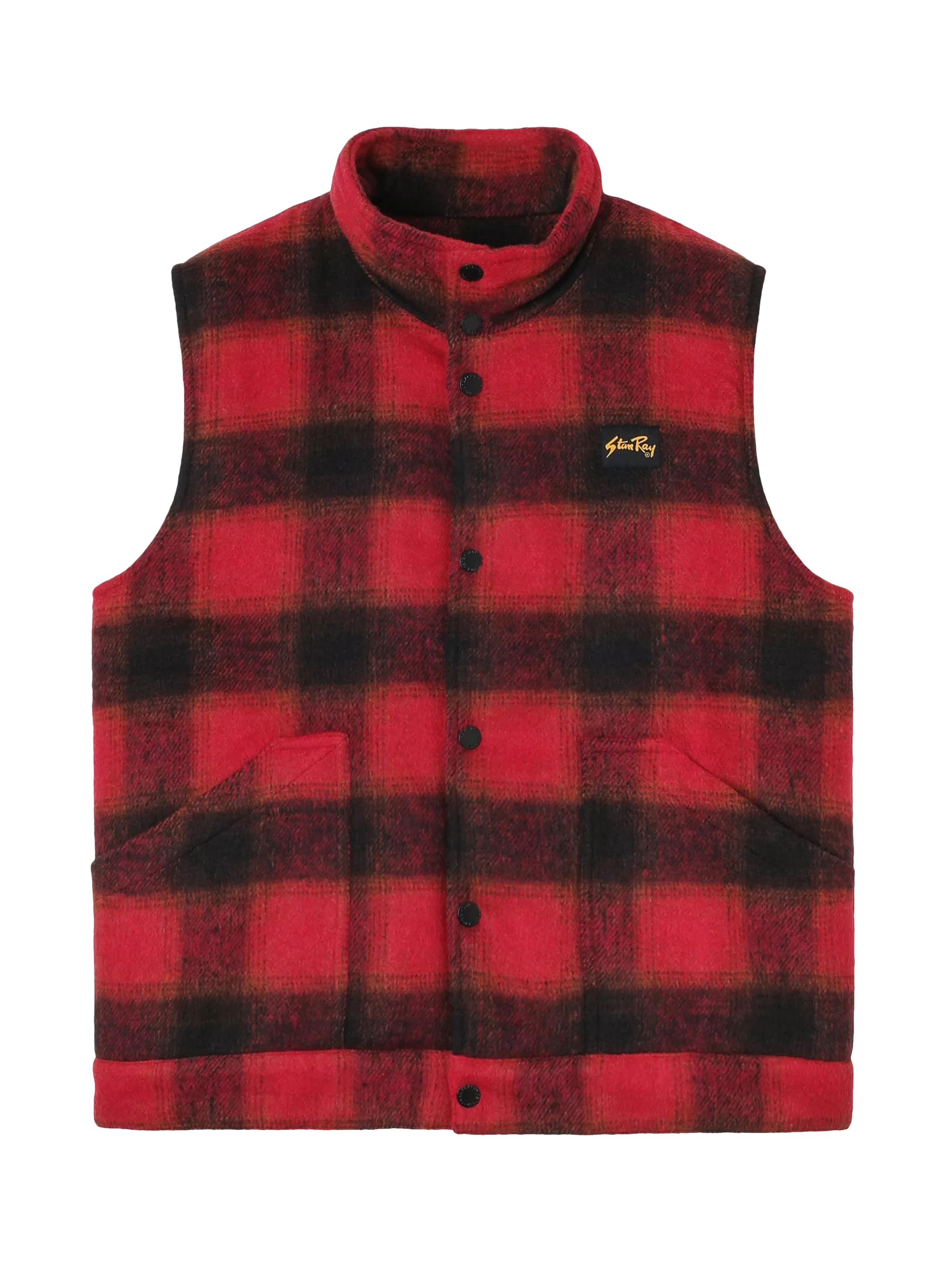 This plaid vest features a synthetic fill for warmth without bulk, welted hand pockets and a secure zip and snap-fastened front.
