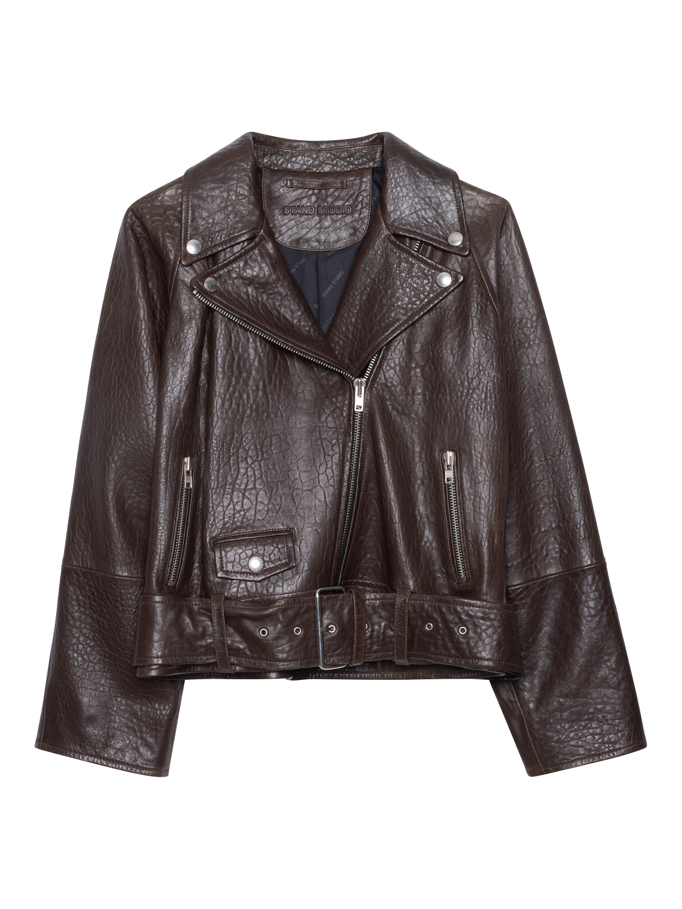 STAND STUDIORomy Oversized Leather Jacket, Dark Brown