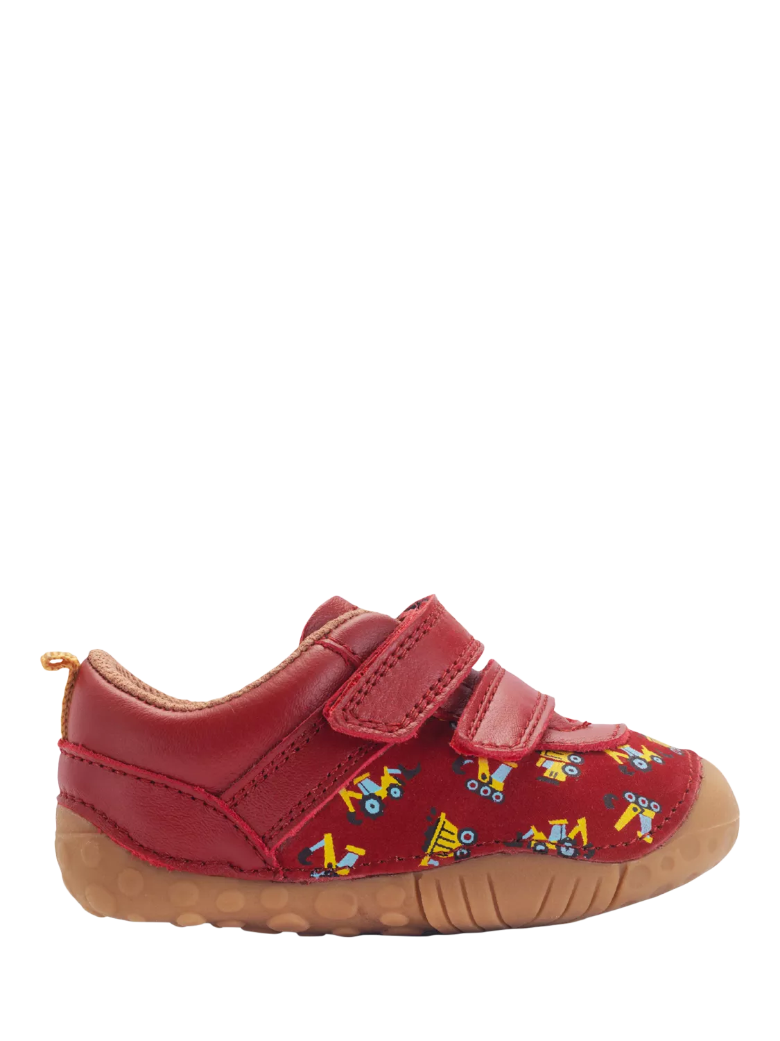 Designed for adventurous feet, helping them crawl, cruise and explore in style. Scuff-resistant bumpers and rubber sole protects tiny toes and the red digger design adds fun to little feet.
