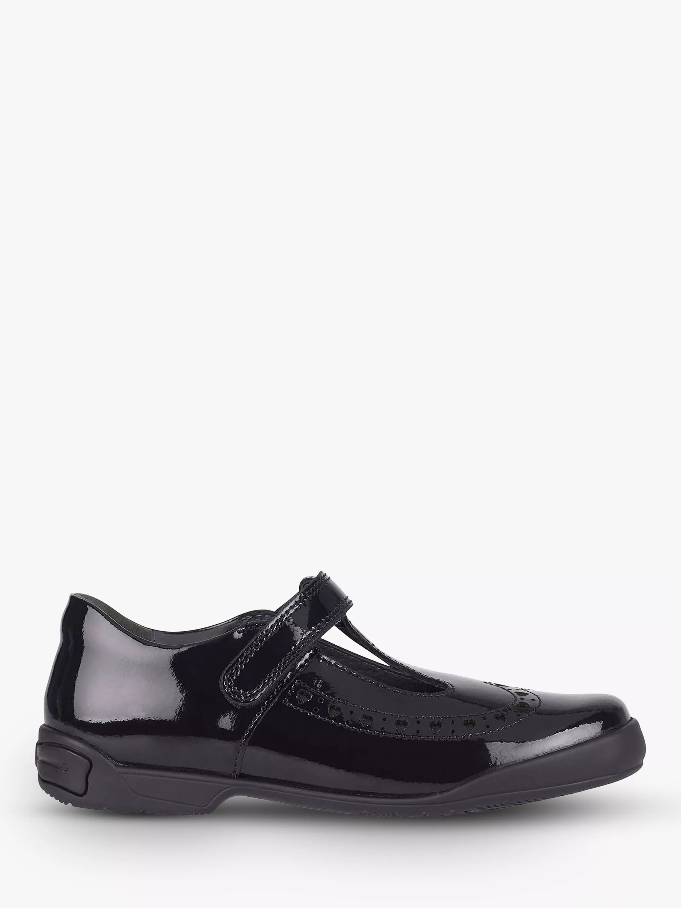 The easily adjustable t-bar riptape fastening allows shoes to fit snug to the foot as the soft black leather features punch detailing for a trendy finish.