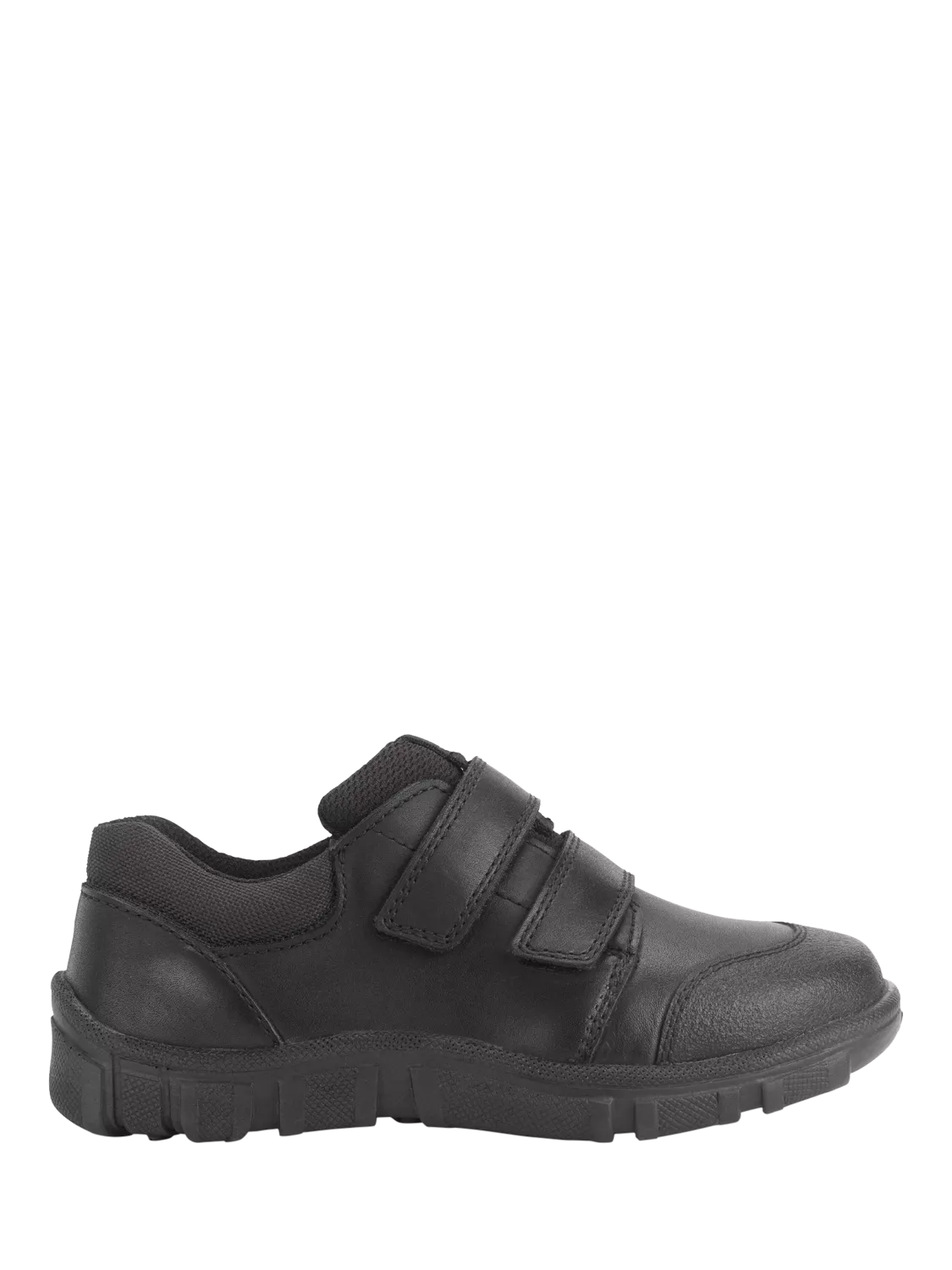 The durable Topic black leather primary school boys' shoes are crafted from dyed through leather with breathable textile linings, and feature an abrasion toe, meaning fewer scuffs and more targeted protection. This pair is also super comfy thanks to the padded ankles and the Dual-Fit insoles make it easy to get the right fit first time. They also come ready-fitted with removable insoles, so you can adjust the fit and double rip-tape fastenings for a snug, secure fit.