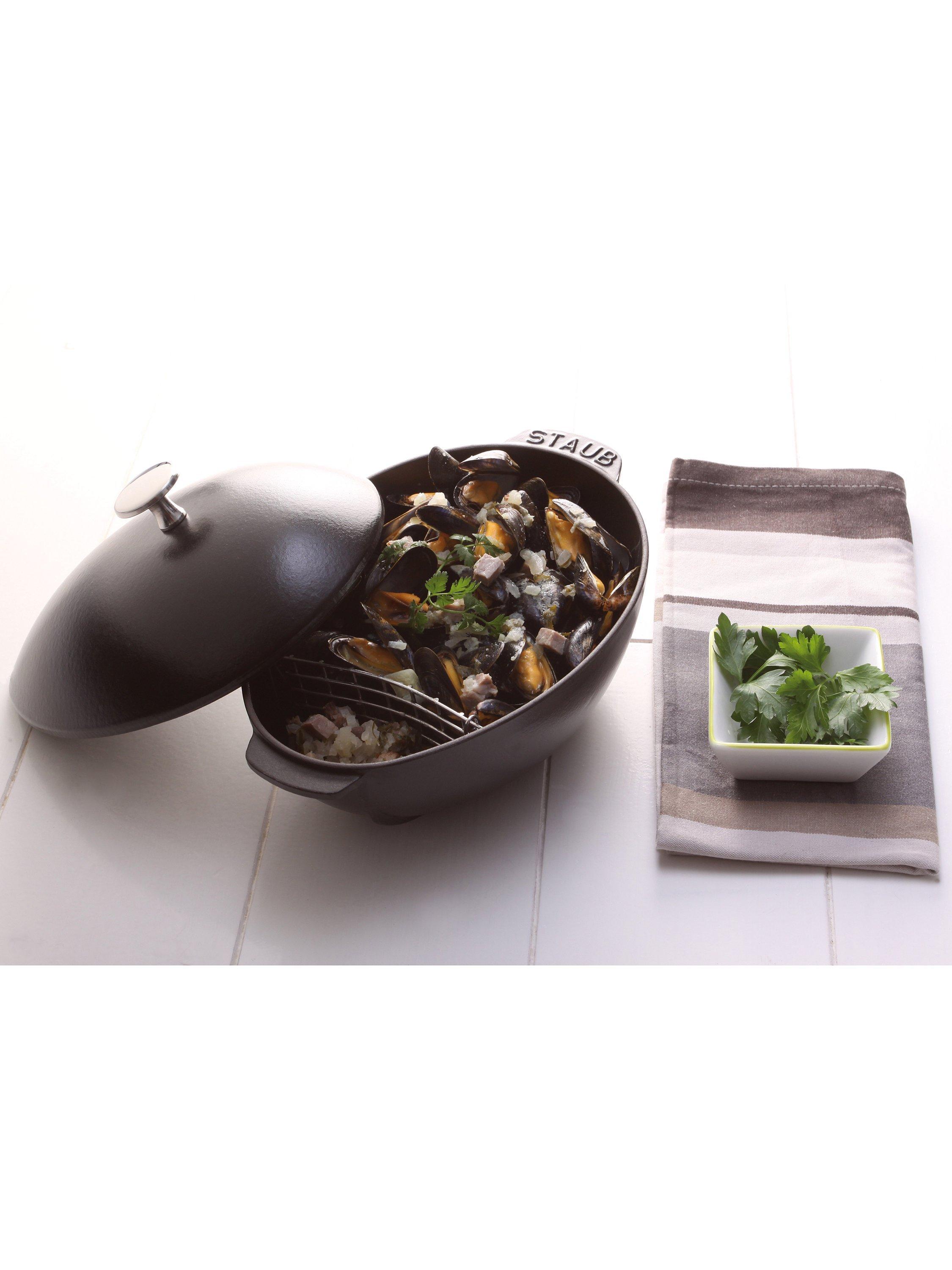The STAUB mussel pot combines traditional craftsmanship with modern functionality. The matt black enamel intensifies the flavour of the dishes, while the cast iron ensures optimal heat distribution and retention.
