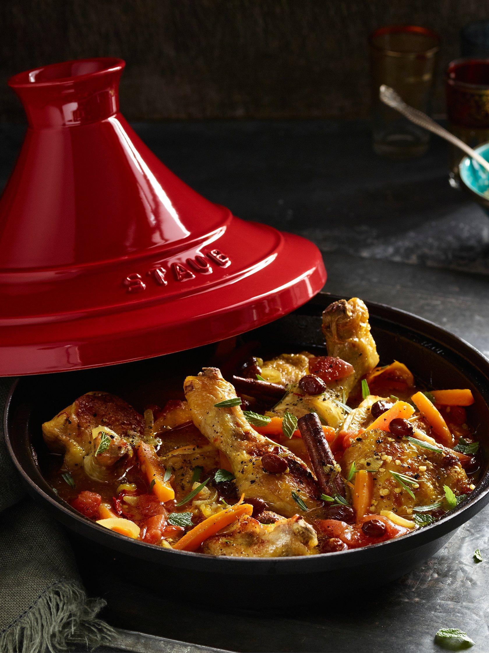 The STAUB tagine combines traditional craftsmanship with modern functionality. The matt black enamel intensifies the flavour of the dishes, while the cast iron ensures optimal heat distribution and retention.