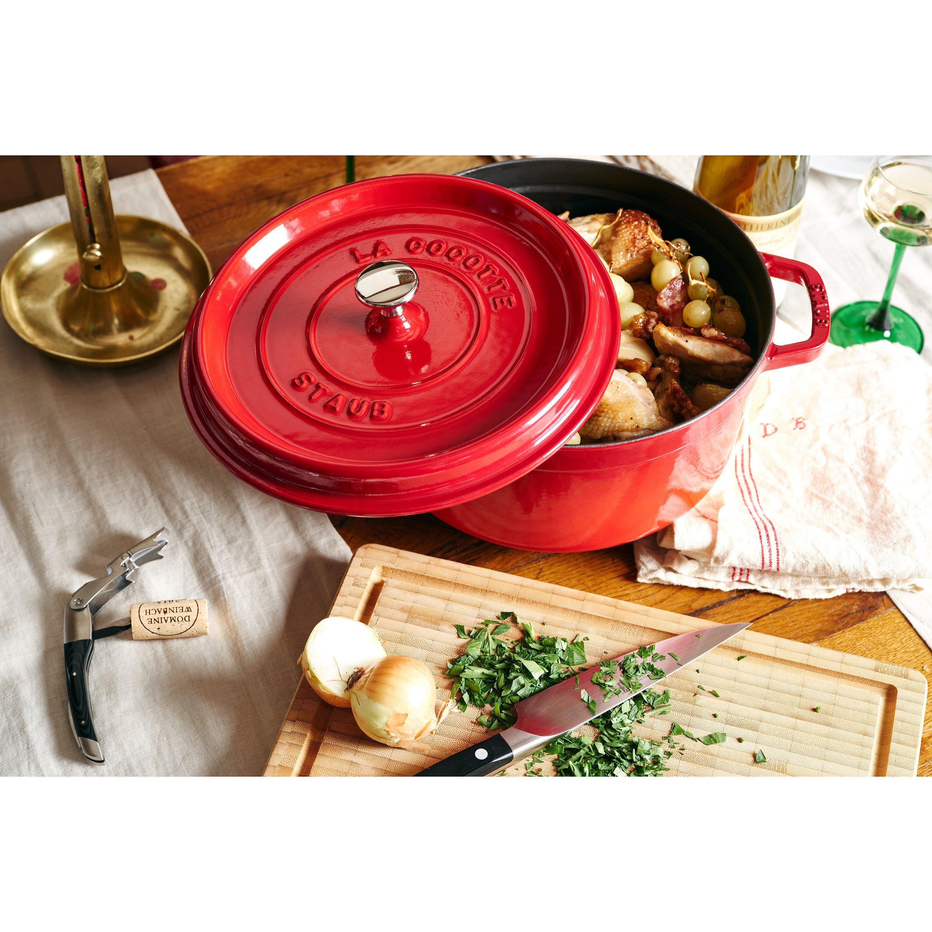 The STAUB cocotte combines traditional craftsmanship with modern functionality. Try it for stuffed bell peppers, classic cabbage roulades, Mediterranean ratatouille, sweet desserts, fresh bread and more. This practical cast iron pot can be used to prepare a wide variety of dishes.