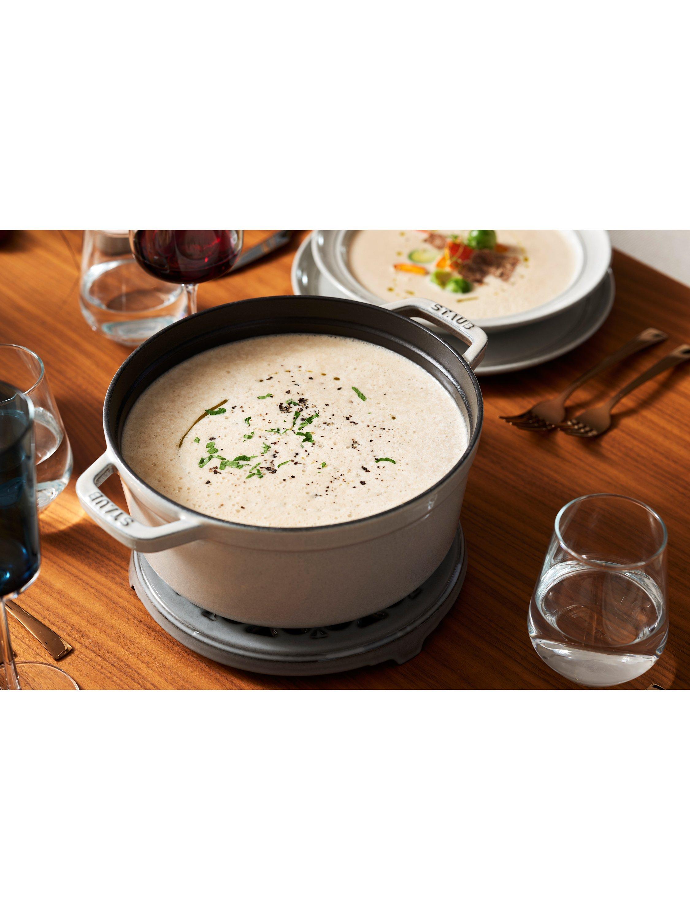 The STAUB cocotte combines traditional craftsmanship with modern functionality. Try it for stuffed bell peppers, classic cabbage roulades, Mediterranean ratatouille, sweet desserts, fresh bread and more. This practical cast iron pot can be used to prepare a wide variety of dishes.