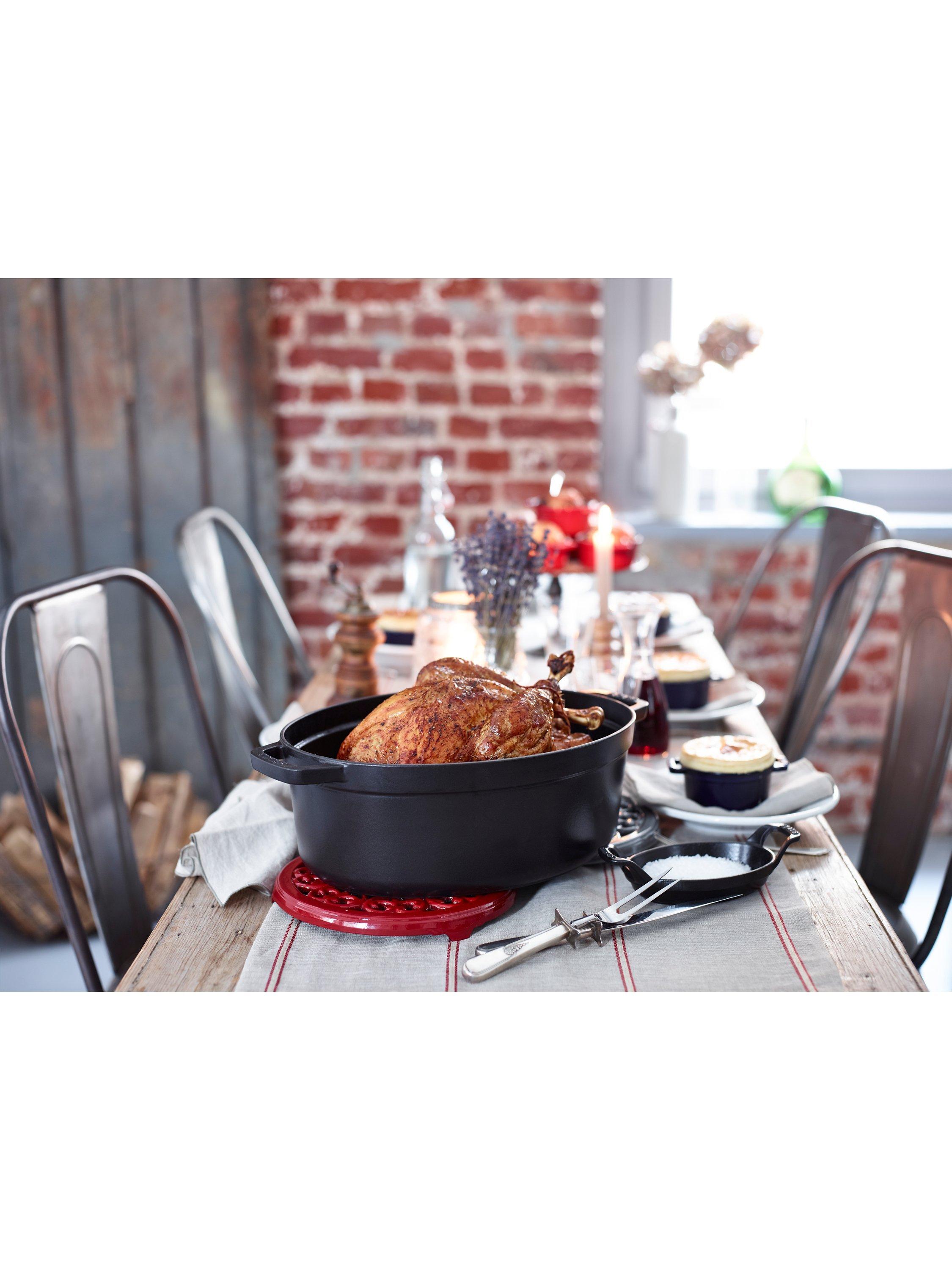 The STAUB cast iron pot stand provides a stable and practical place to safely set down pots, hob kettles, gratin dishes, baking tins or other hot objects.