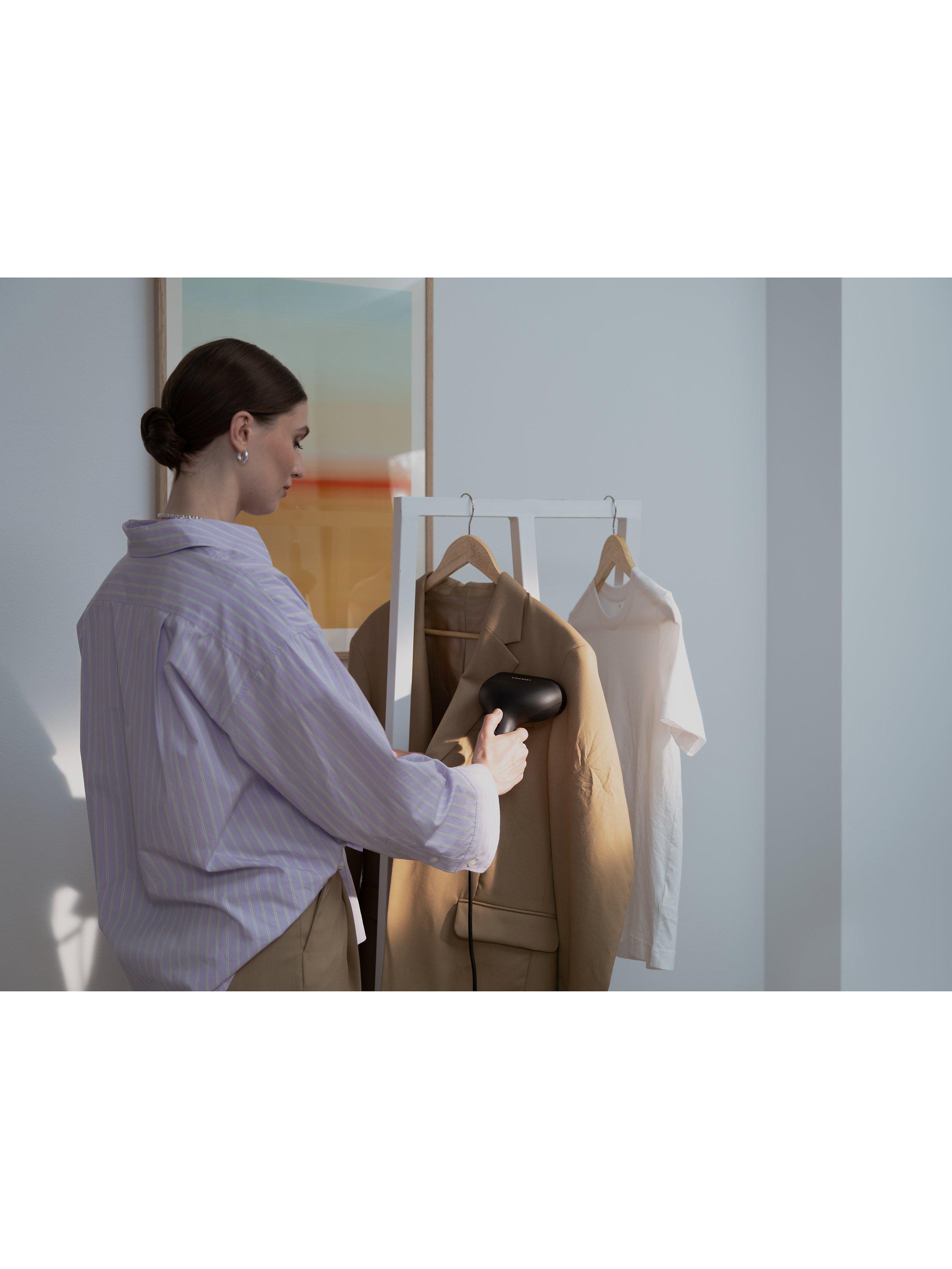 Cirrus X Handheld Steamer is a clothing care essential designed to bring out the best of your wardrobe. With innovative features like a visible water tank and hanging loop, your steaming experience will be seamless and effortless. Remove wrinkles quickly and easily, and make your clothes feel fresh again. The hot steam from a handheld steamer lifts the textile fibres, instead of pressing them down like an iron, and makes them swell and regain their natural shape. Sanitise and refresh your clothing between washes; steam reduces bad smells, shallow dirt, and bacteria.