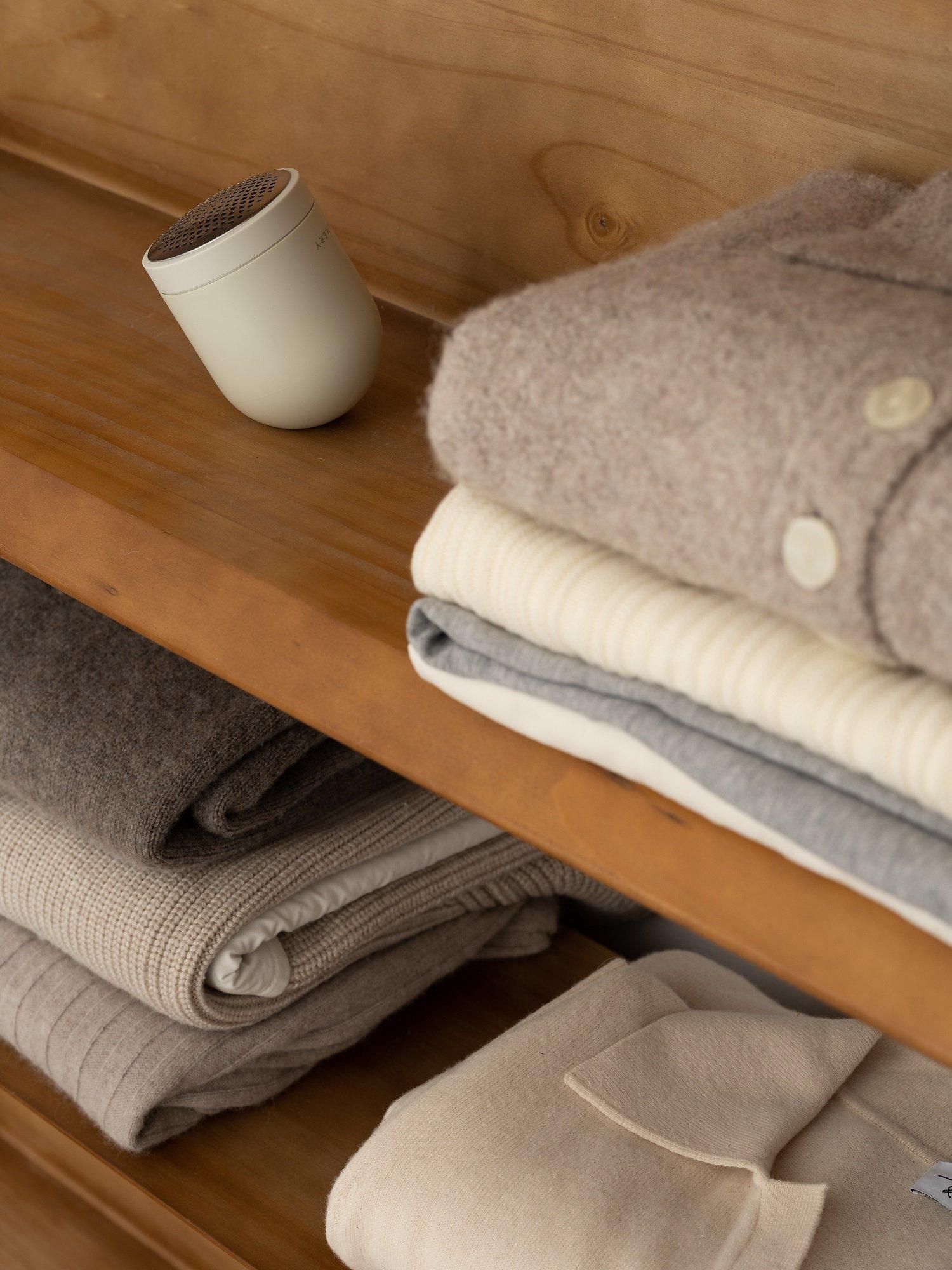 Pilo 2 Fabric Shaver works perfectly on both clothes and home textiles, like knits, coats, scarfs, socks, sofas, armrests and blankets. It works on all kinds of materials, even the most delicate ones, and also features a new solution that makes it easier to clean the machine from fuzz.