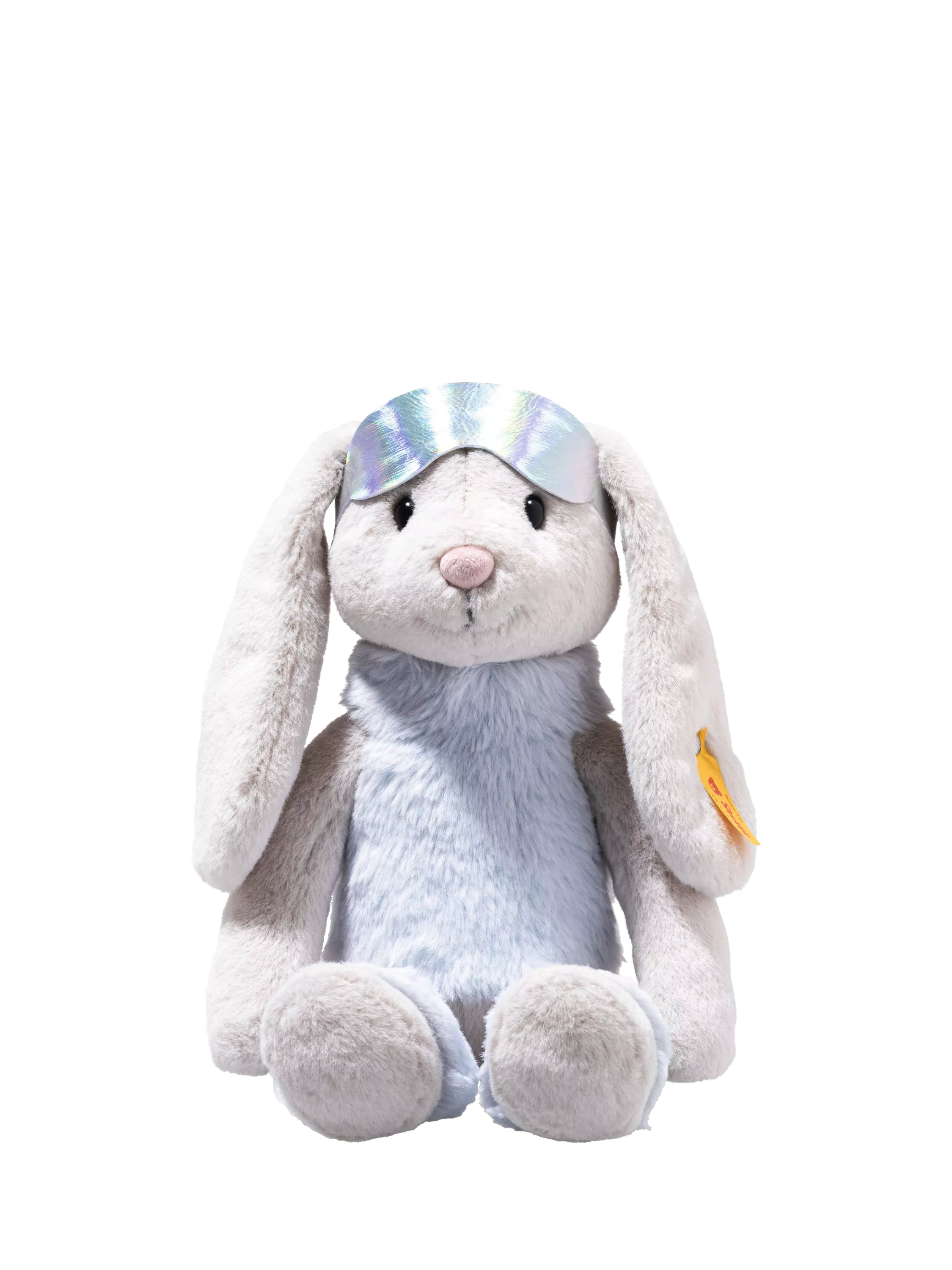 Hoppie's outfit is firmly attached to her body and cannot be removed. To ensure that Hoppie cuts a fine figure when plowing and waving, she has a weighted, dol-like dangling body. Hoppie protects her eyes with reflective ski goggles, which she can also casually slide onto her head for après-ski. After an exhausting day of skiing, the cuddly plush bunny falls into bed tired but overjoyed.
