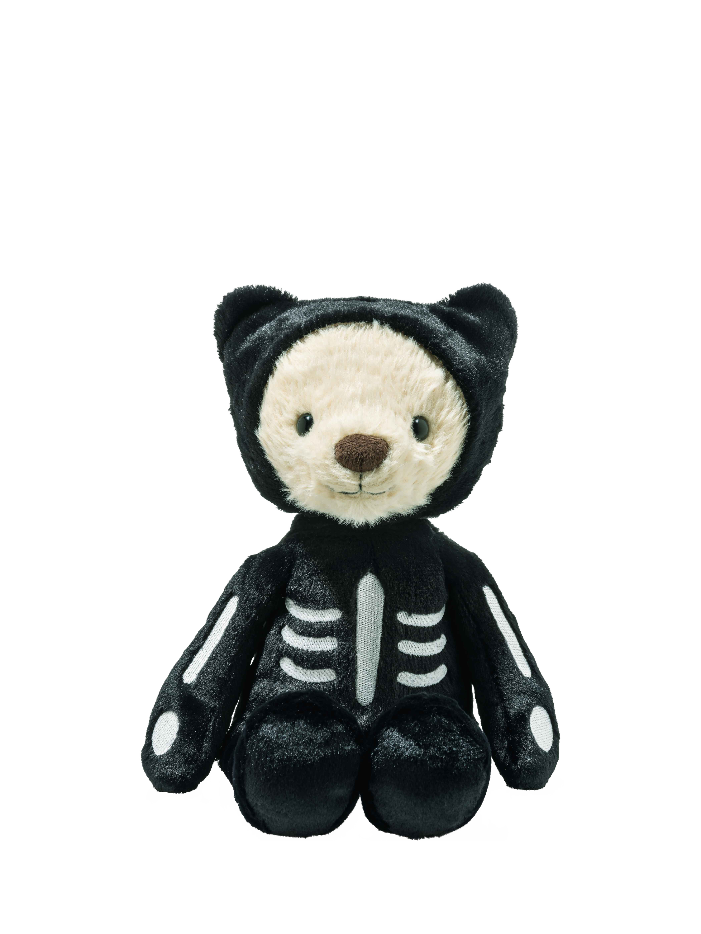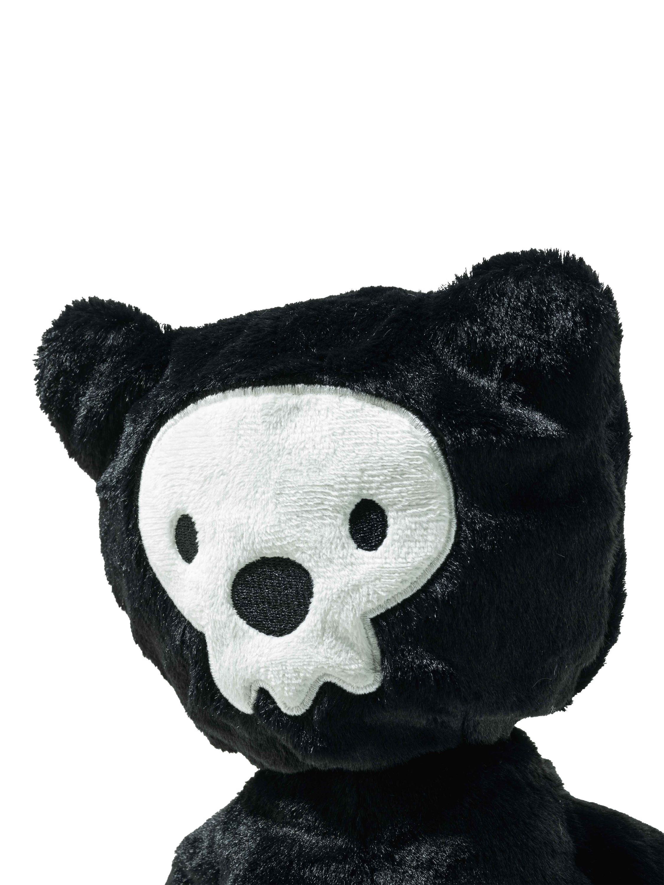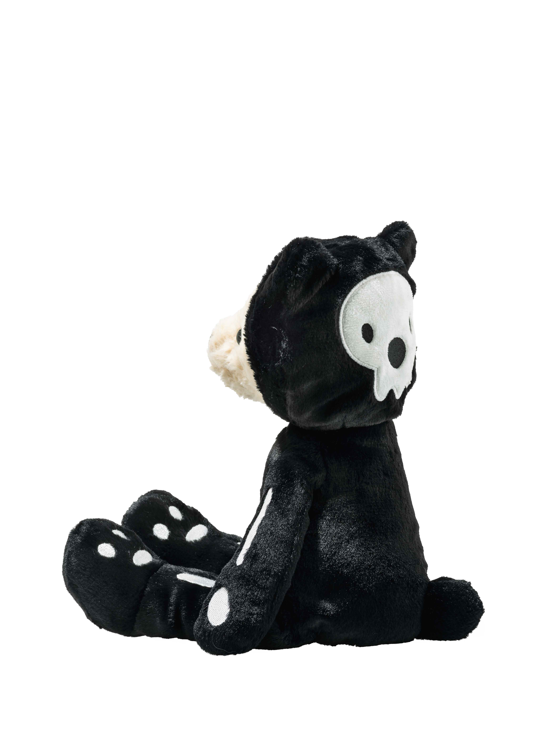 This cuddly friend haunts children’s rooms with a skeleton embroidered over his body. The outfit features a removable hood with a teddy bear skull appliqué on the back. Granulated material in the arms, legs and bottom provide him with stability.