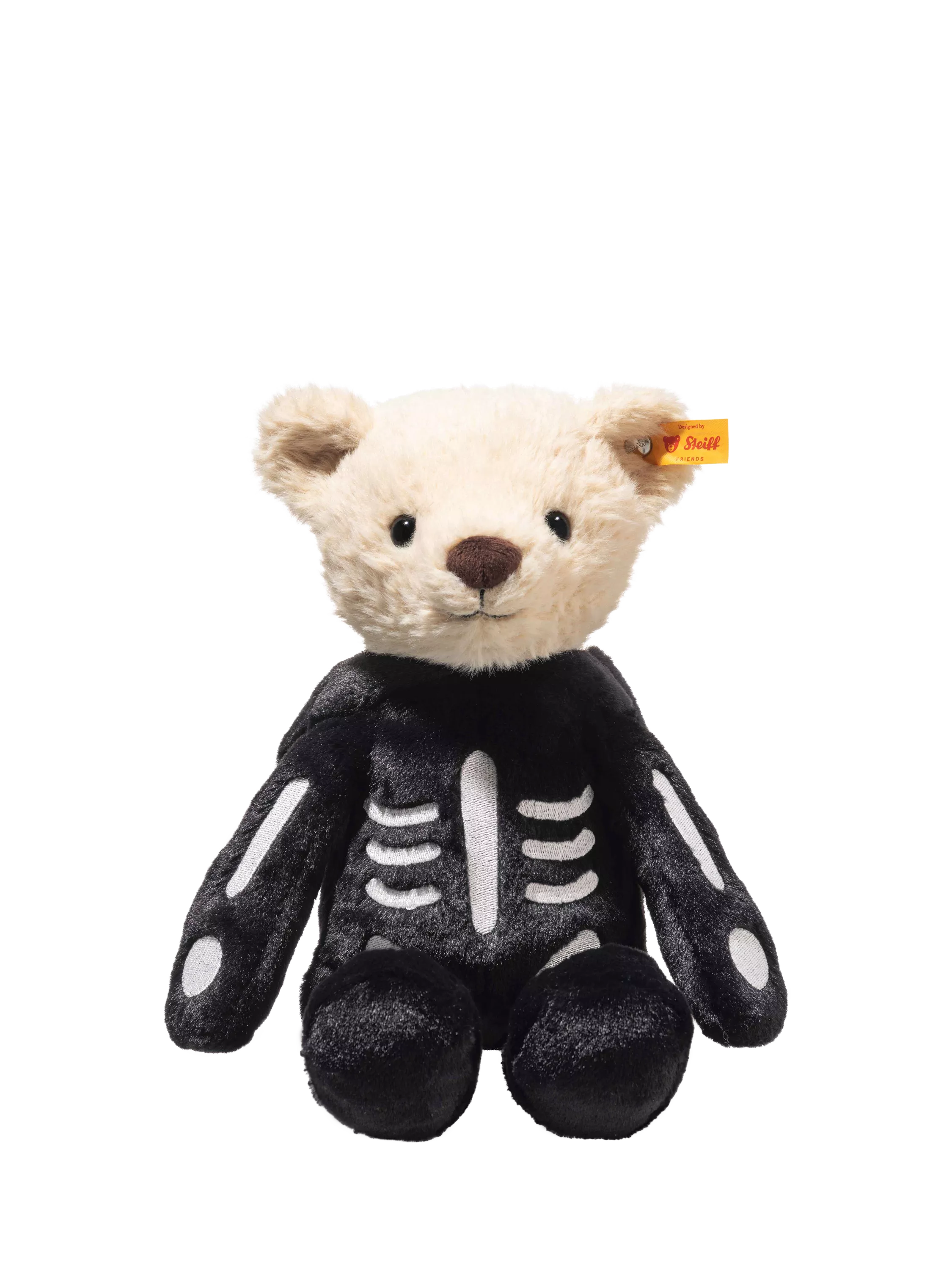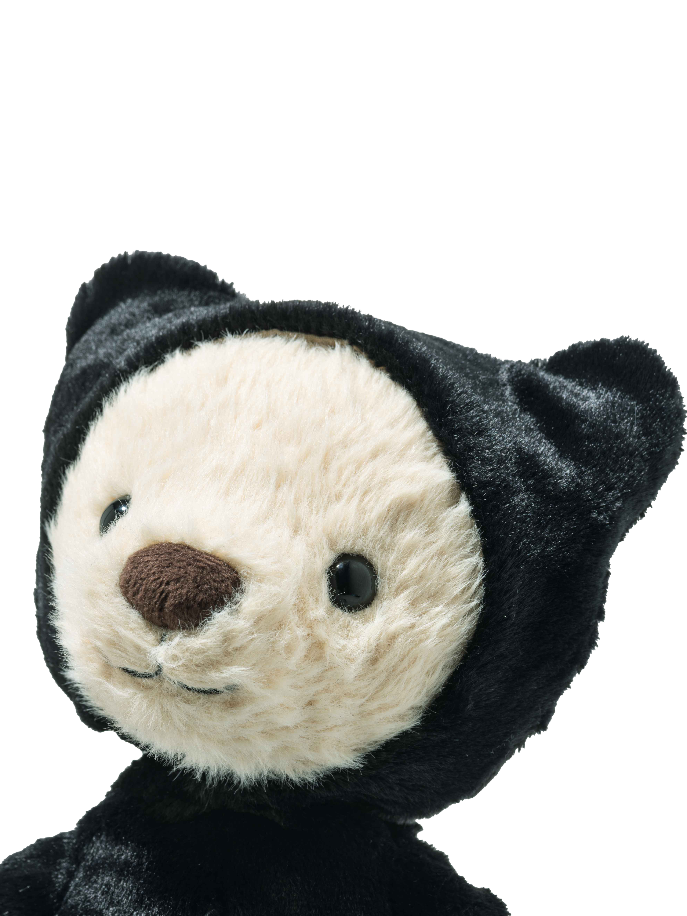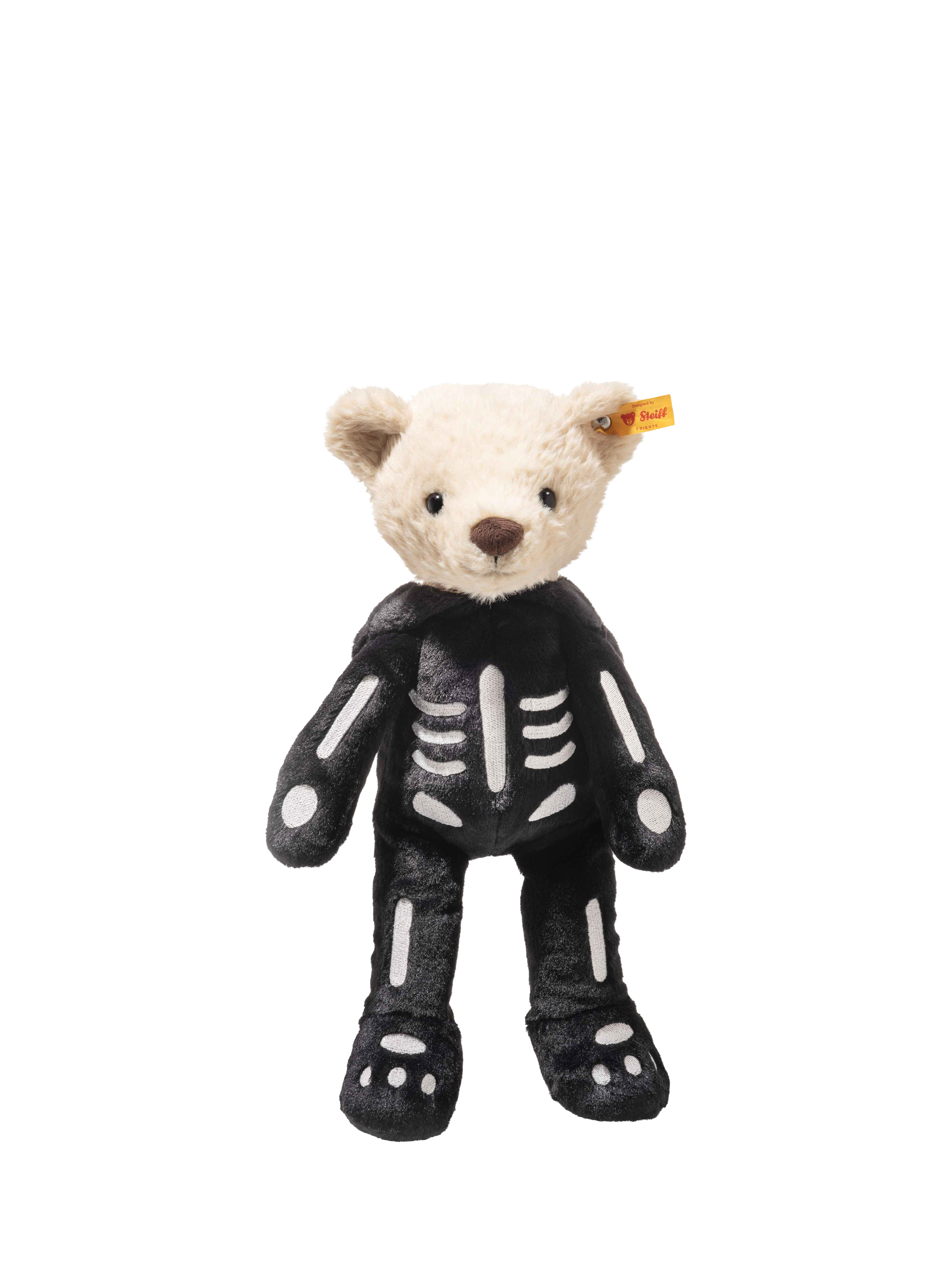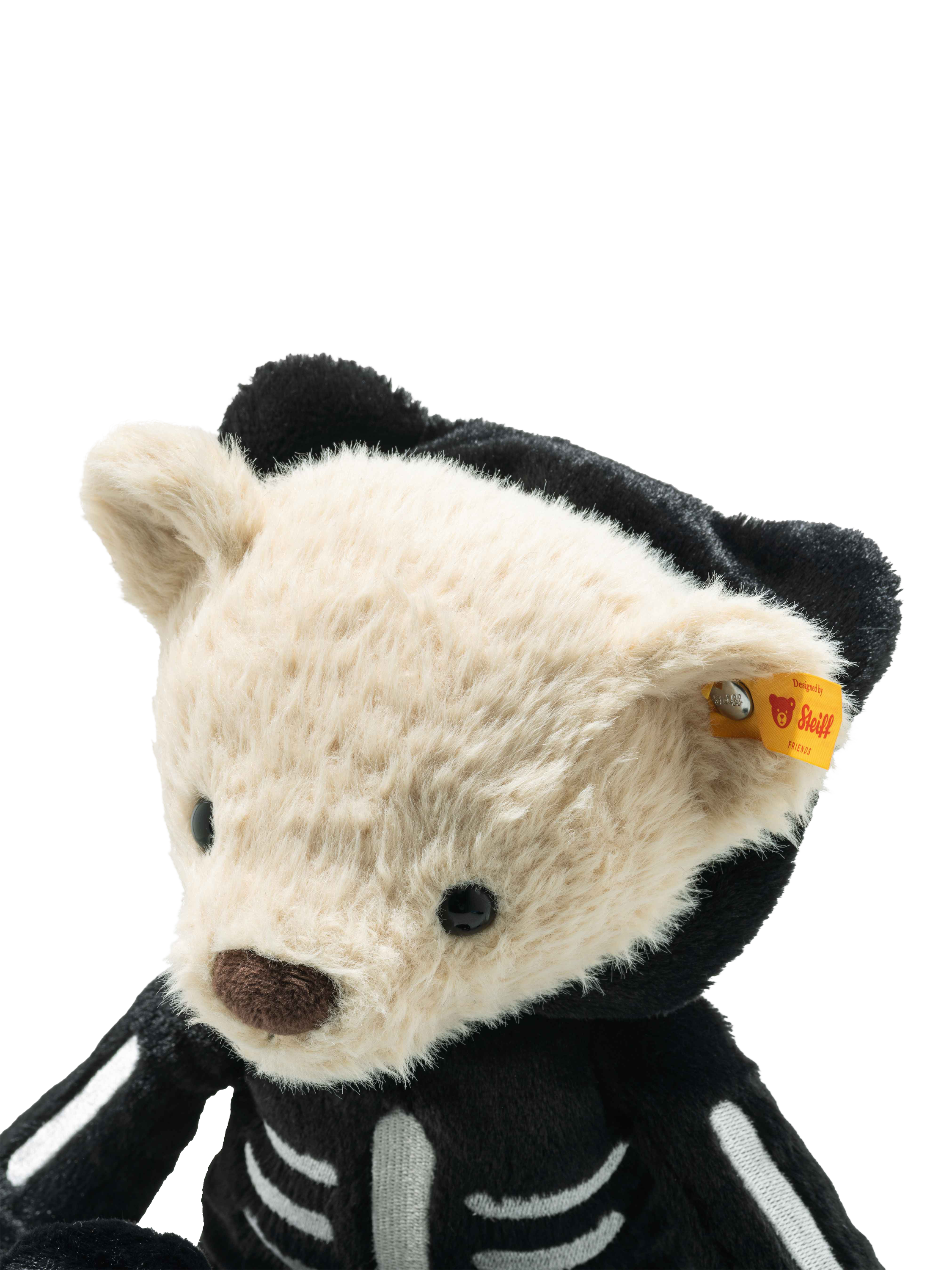 This cuddly friend haunts children’s rooms with a skeleton embroidered over his body. The outfit features a removable hood with a teddy bear skull appliqué on the back. Granulated material in the arms, legs and bottom provide him with stability.
