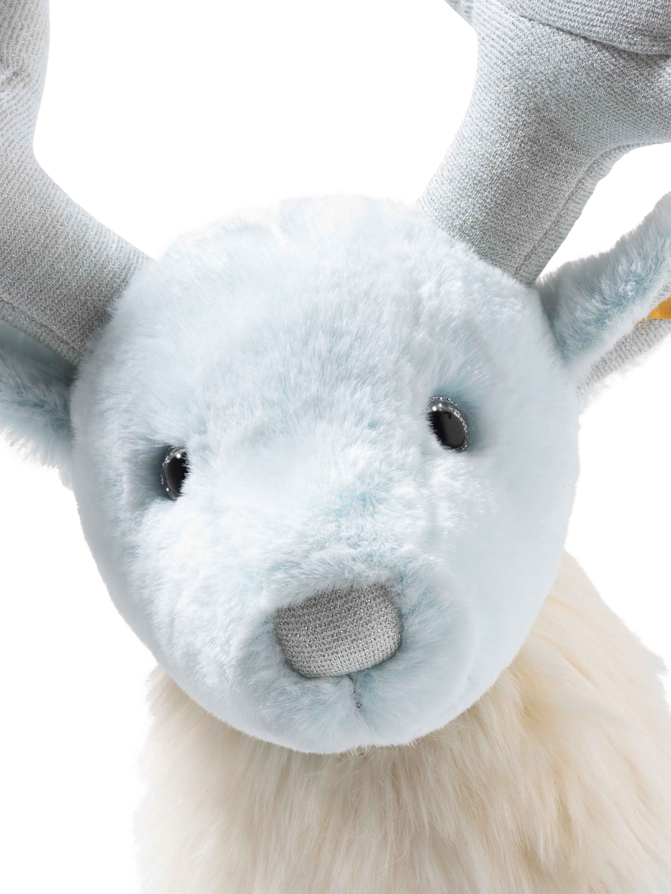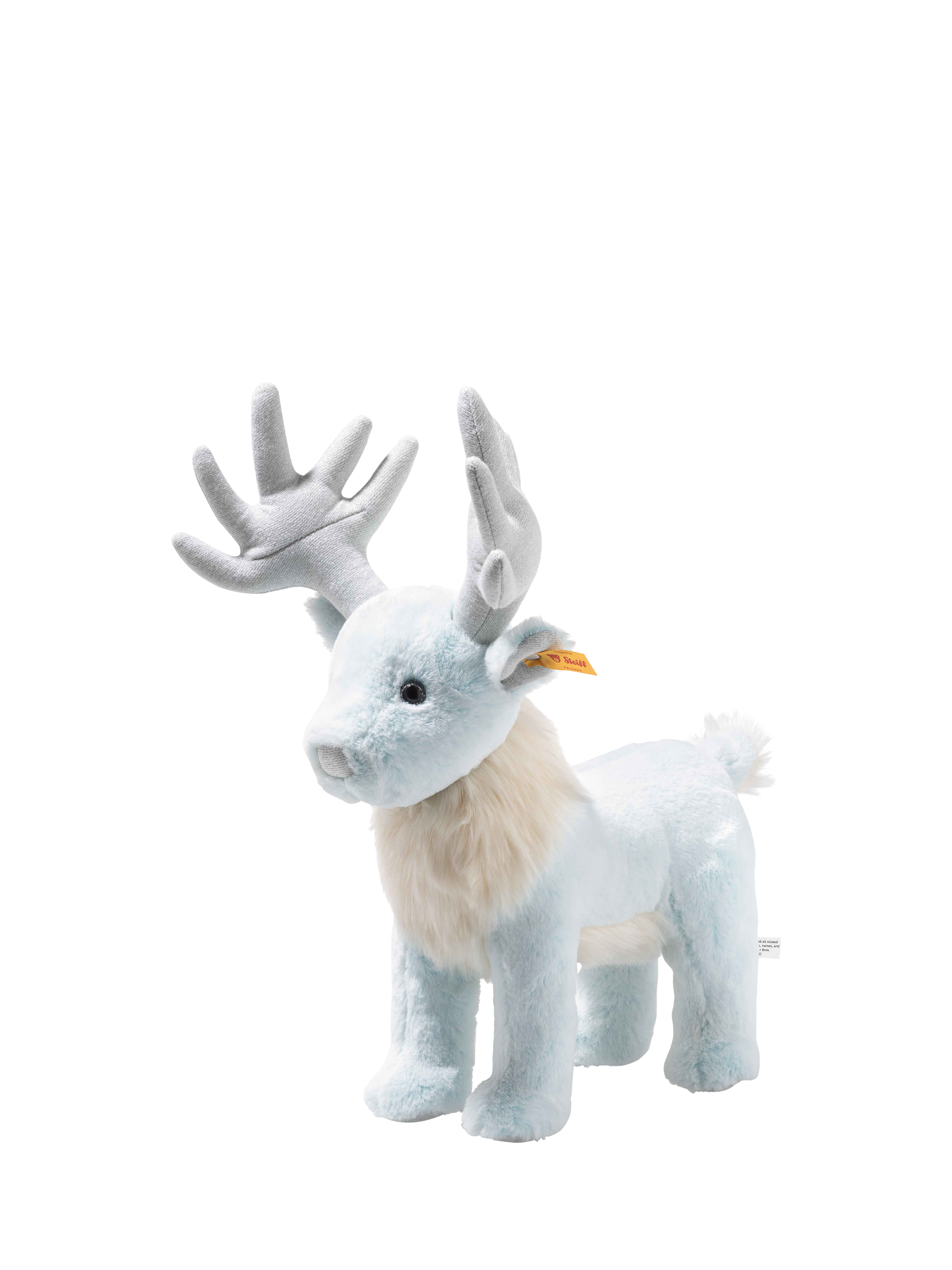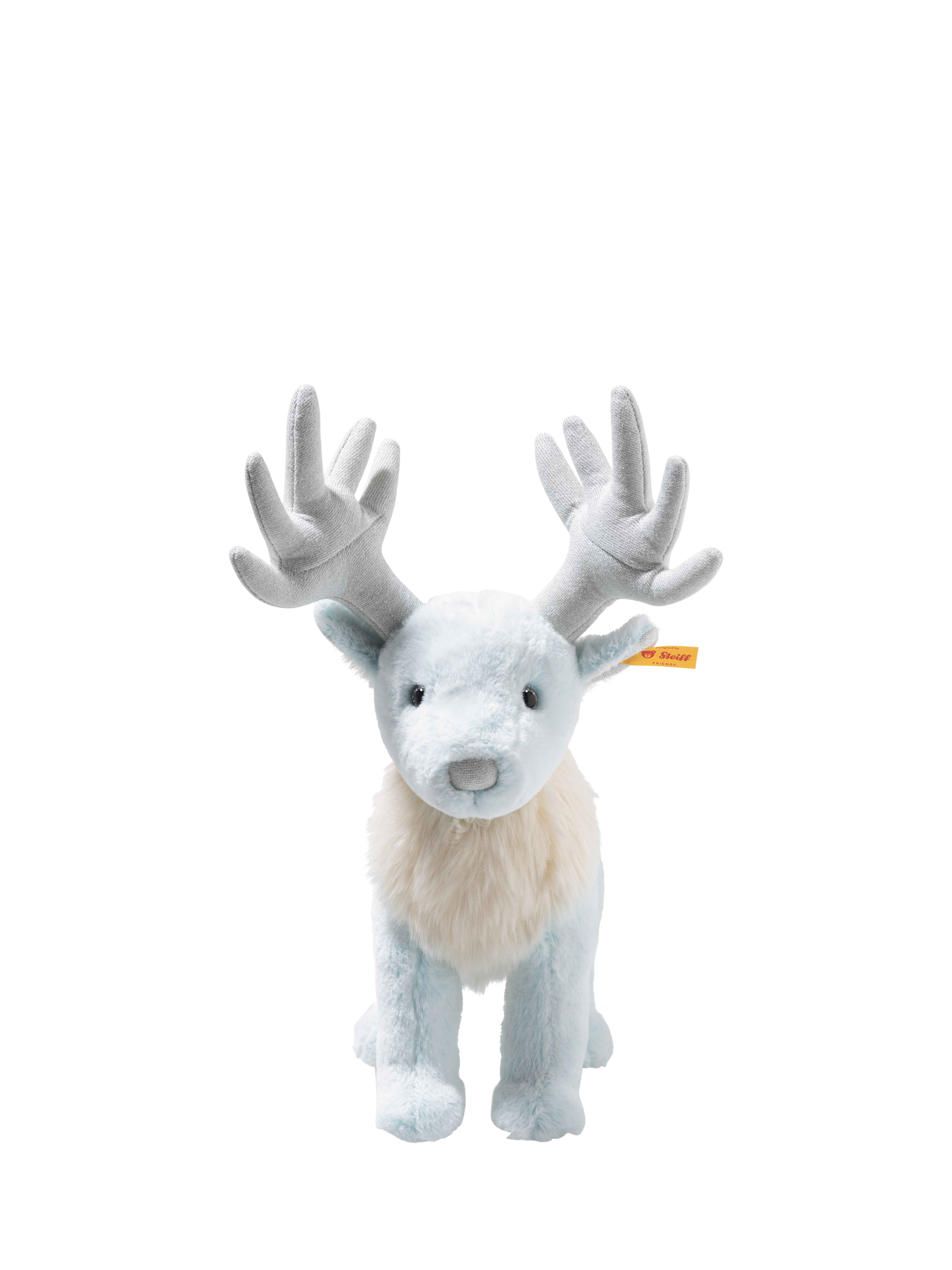 The 25cm tall magical creature radiates security and protection with its cuddly soft plush designed in soft blue and white. The mighty antlers sparkle silver and the eyes look wisely into the magical world. The weighted body allows the stag to stand stably to protect from dark forces.