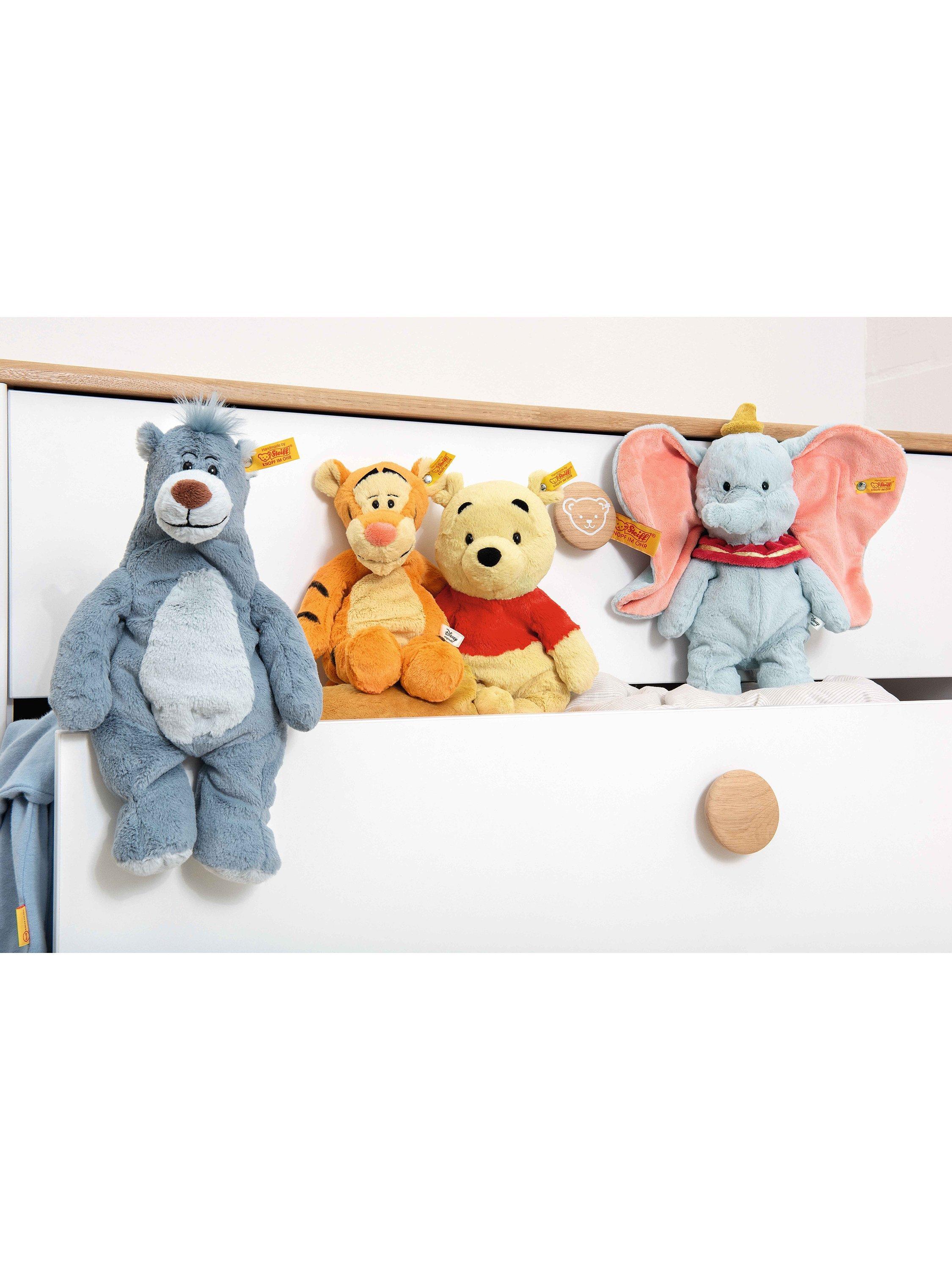 Measuring 30cm tall, Tigger has an infectious personality. With his magnificent snout, two-tone ears and original Tigger stripes, he has all the makings of a real tiger. He is soft and cuddly and has practical bean bags in his arms, legs and bottom. This means he can bounce like crazy but also sit comfortably.