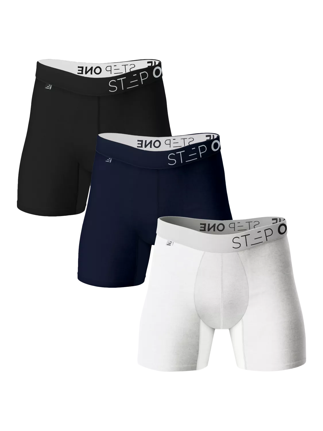 The Step One men's boxer brief is perfect for thicker legs. With 3D elastic for a great fit and comfort pouch for comfortable support, the anti-chafe, UltraGlyde inner leg panels are friction-resistant and prevent leg ride-up.