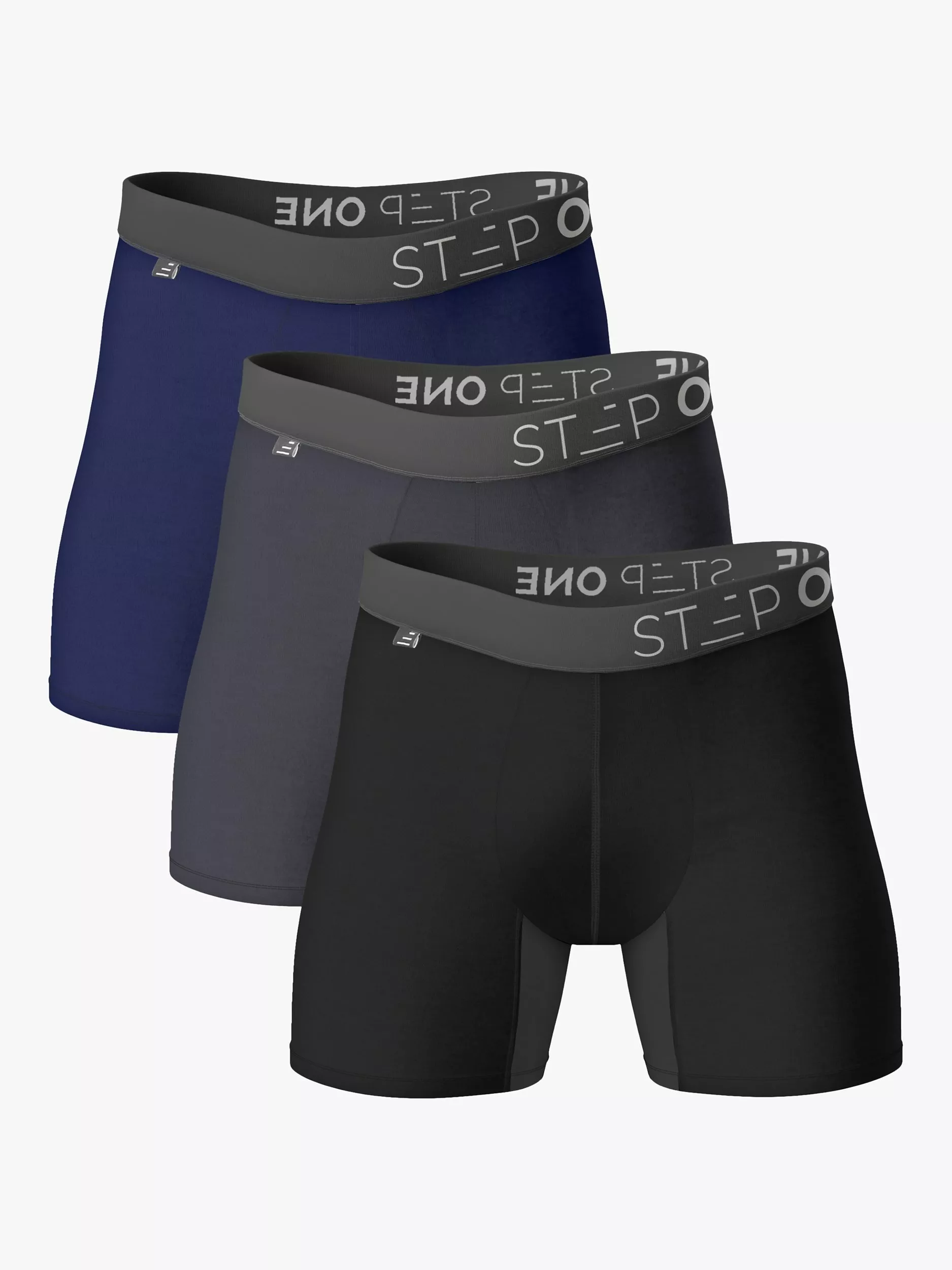 These men’s trunks from Step One are great for guys with thinner legs, and feature a comfort pouch, with a hidden piece of elastic around the pouch to surround and support. UltraGlyde friction resistant inner-leg panels mean they’re anti-chafing and resist riding-up. Crafted from a super-soft viscose fabric derived from organically grown bamboo, they’re ultra-breathable too ...for all-day comfort. Supplied as a pack of three.