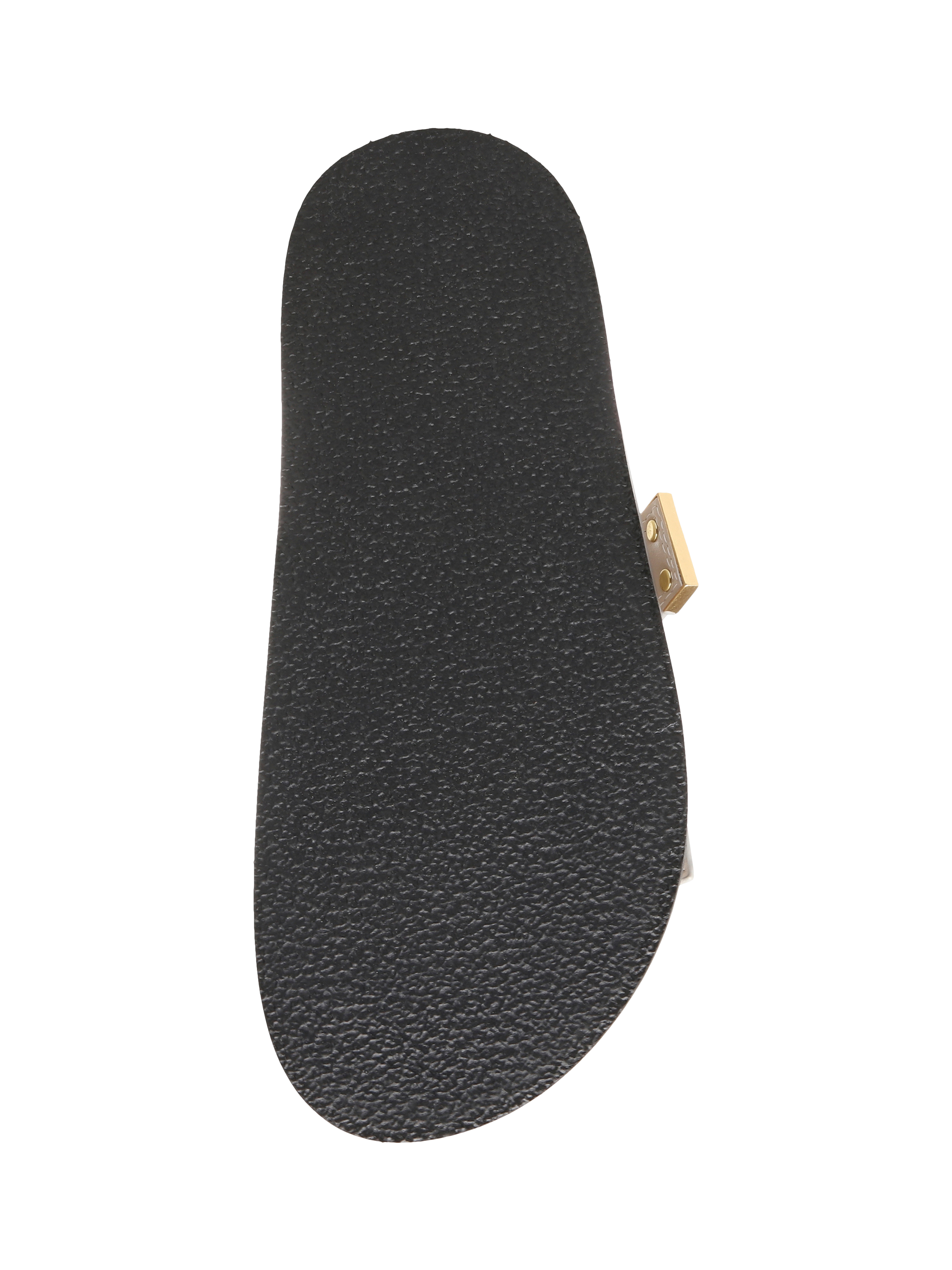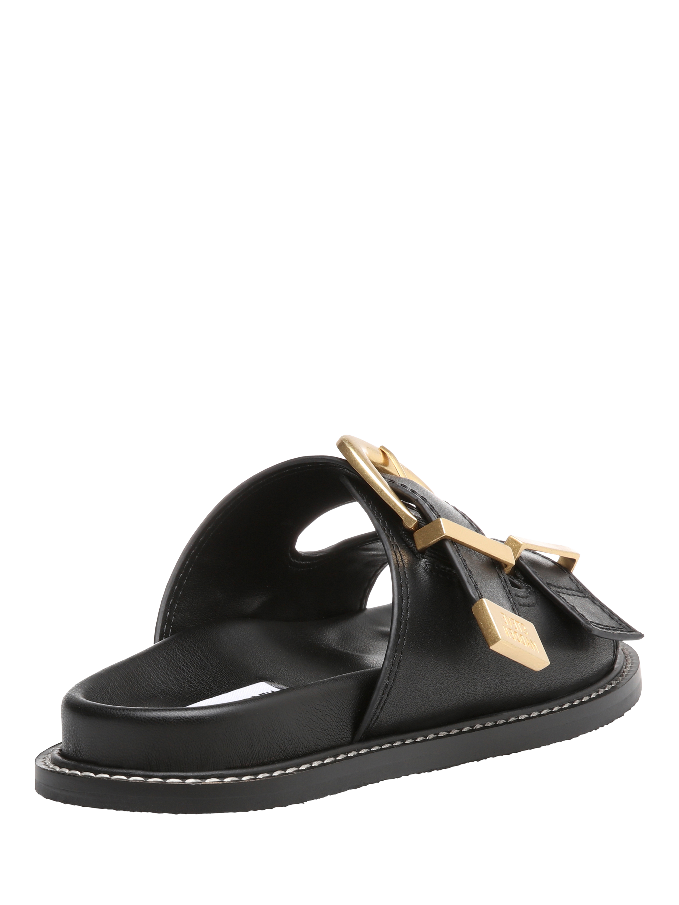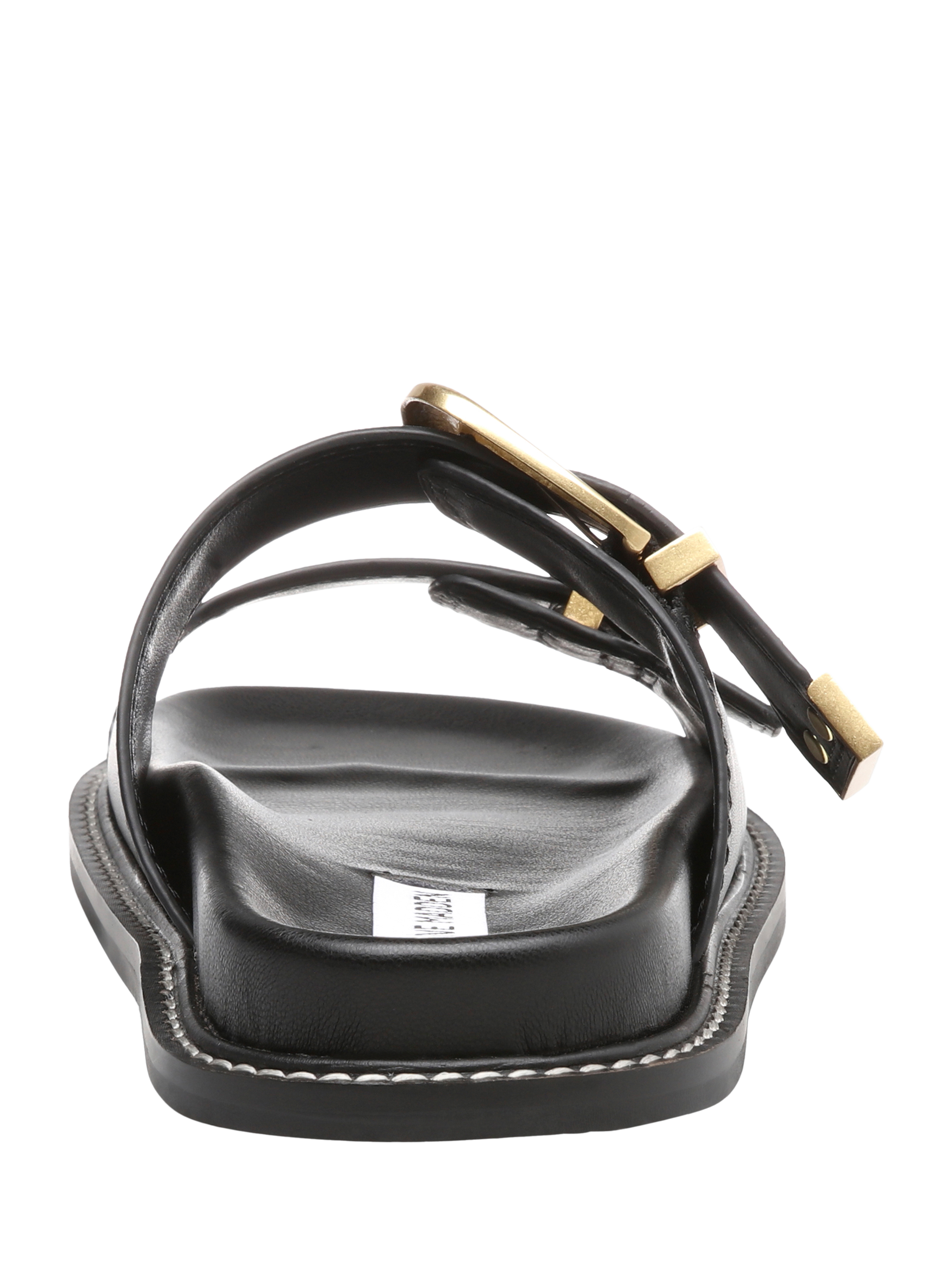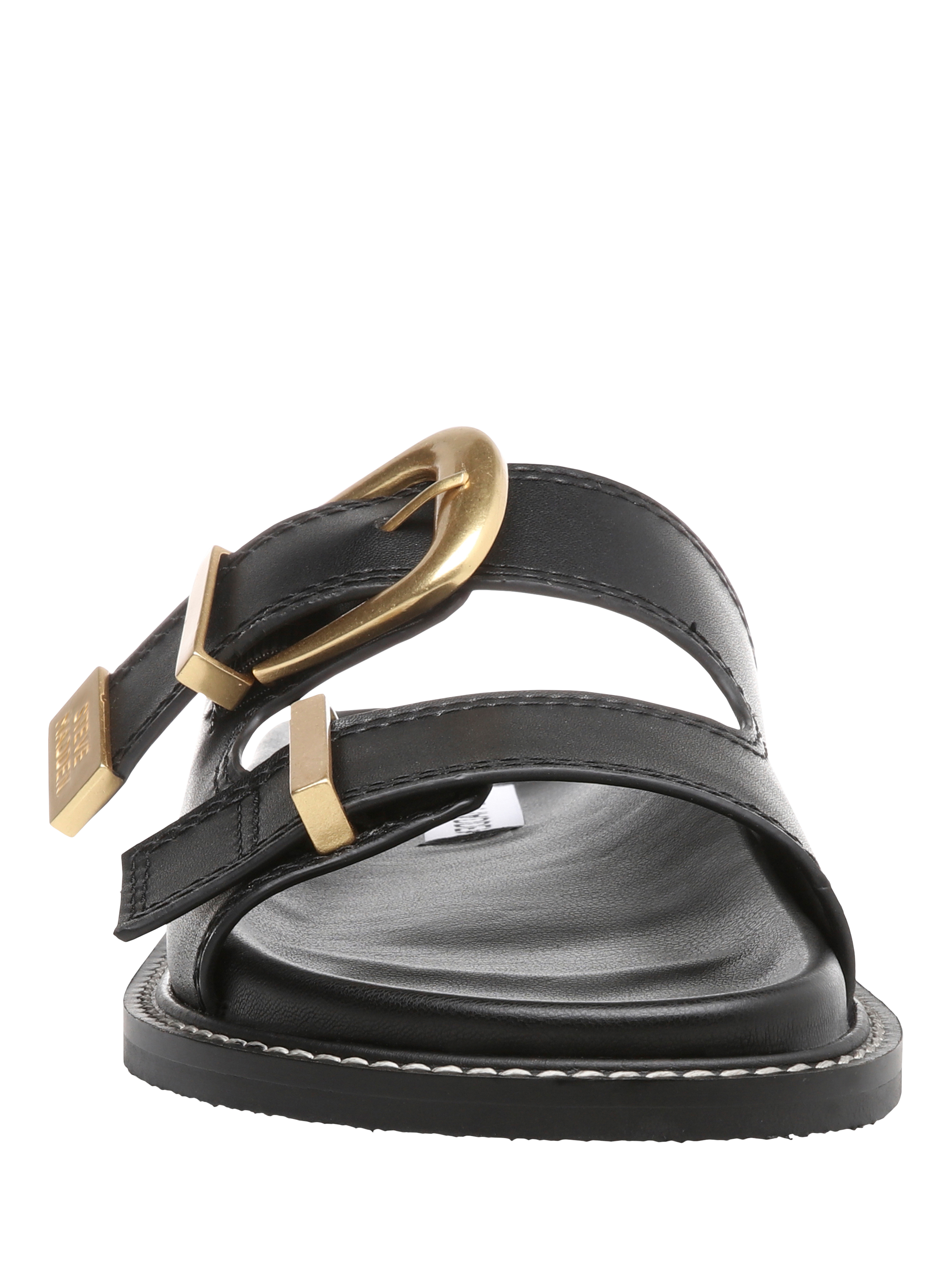 Steve Madden updates the classic buckle sandal by incorporating gold-tone hardware and contrast stitching to great effect.