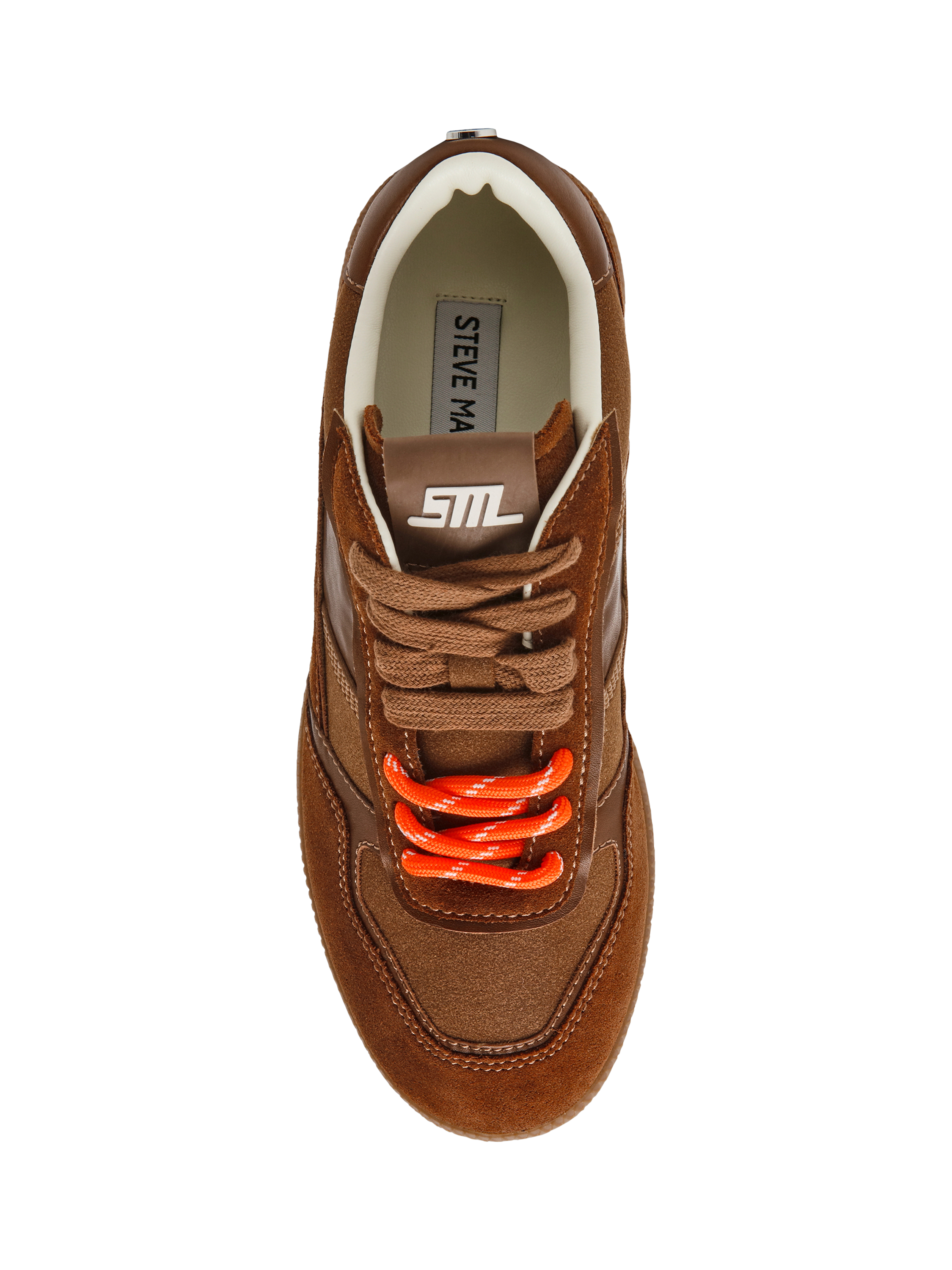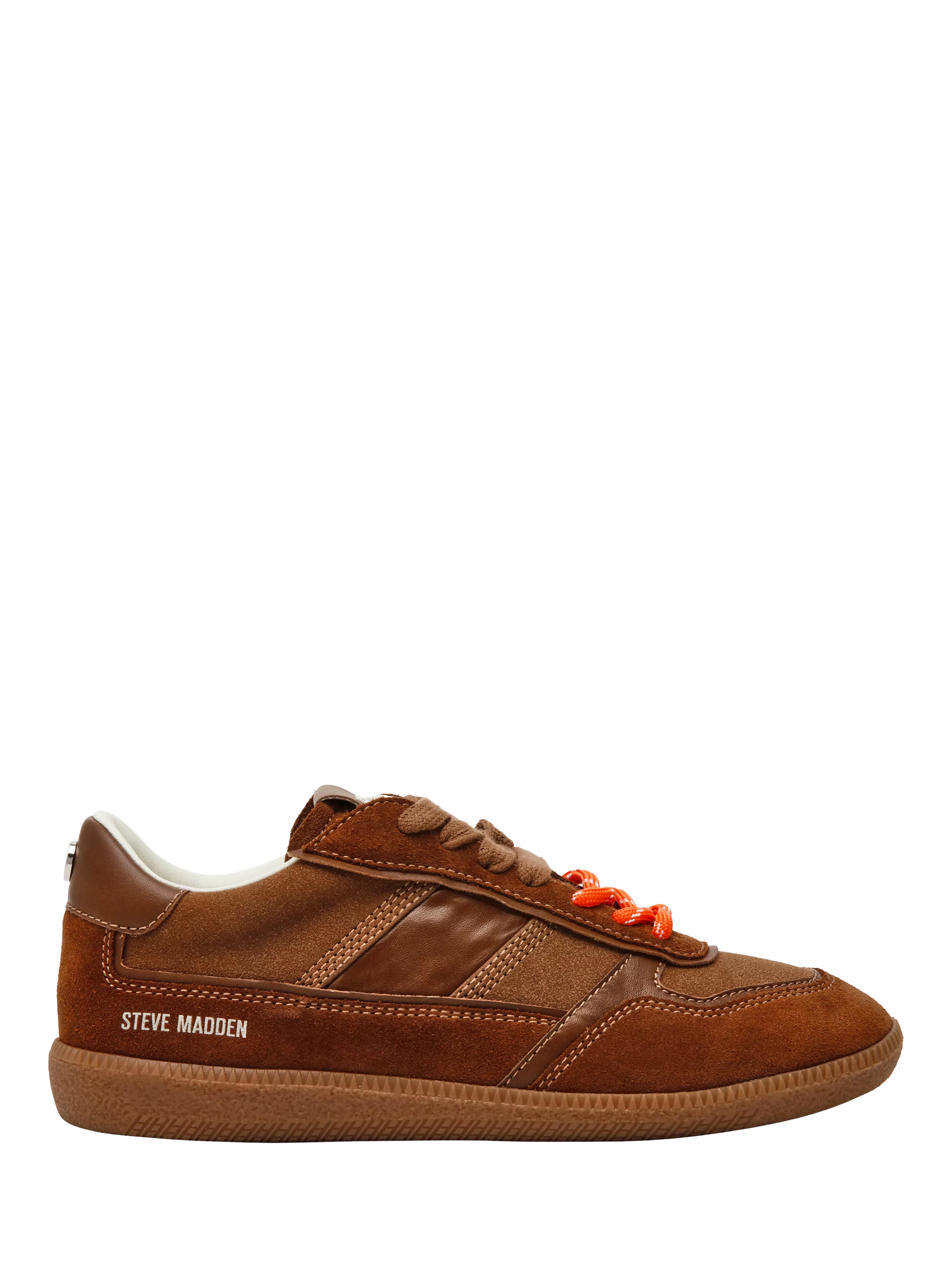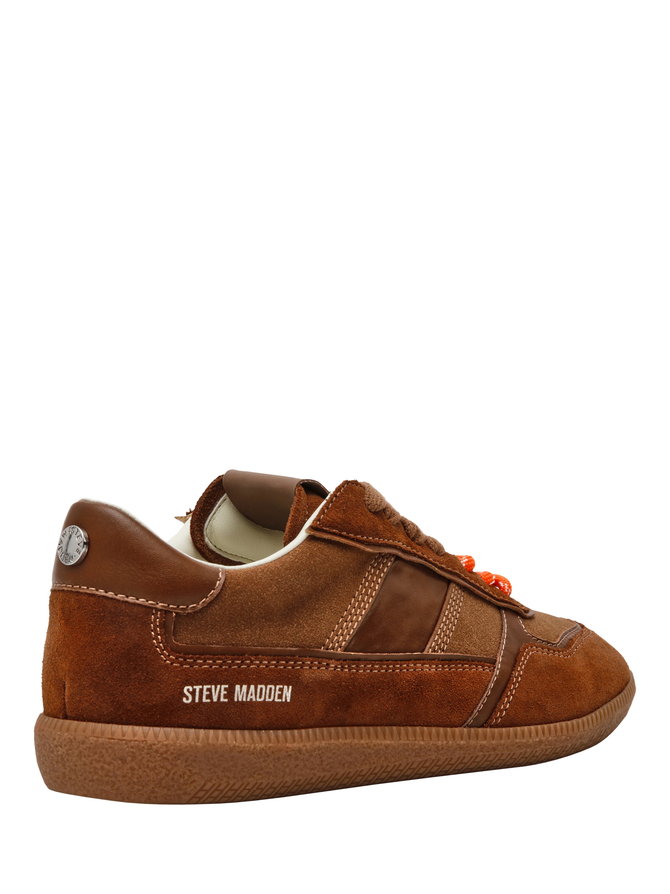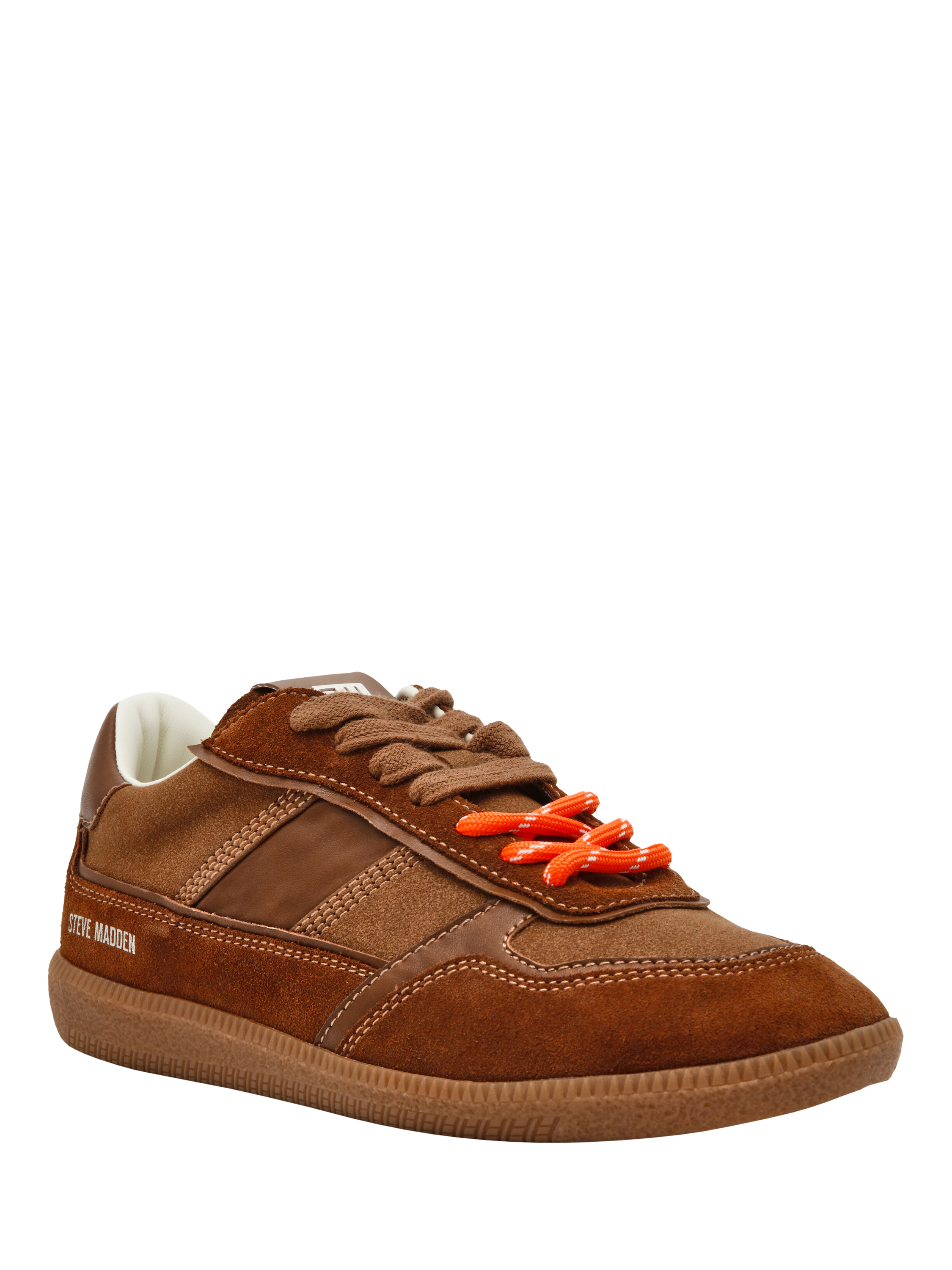 A pair of suede blend trainers by Steve Madden. The round toe and lace-up design offer comfort and versatility, while a low, flat heel keeps you grounded.