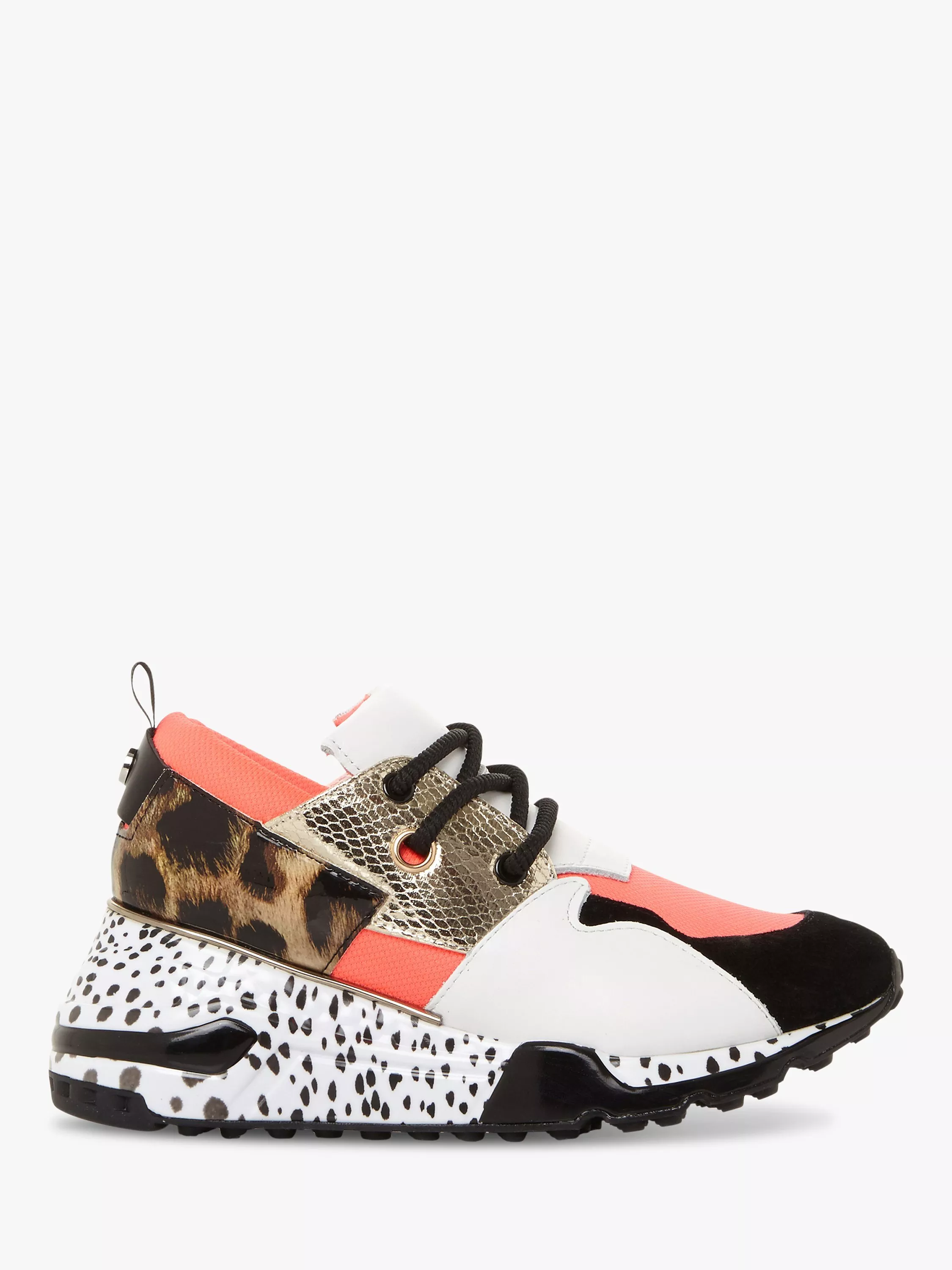 Sitting on a mid-high flatform sole for added lift, the style comprises of standout patchwork patterns with a rounded toe and lace-up front. Team with jeans and an oversized tee to complete the athleisure style.