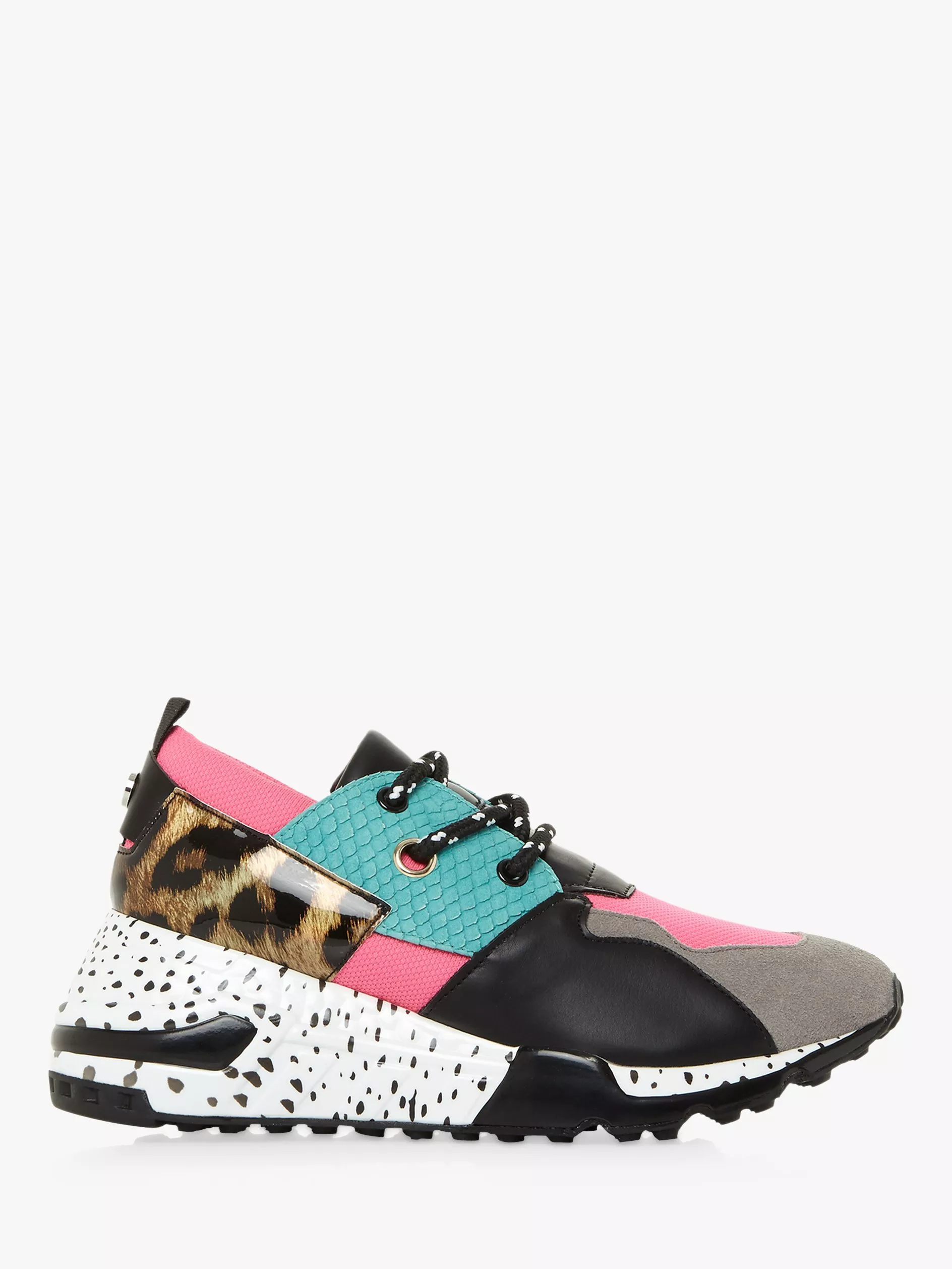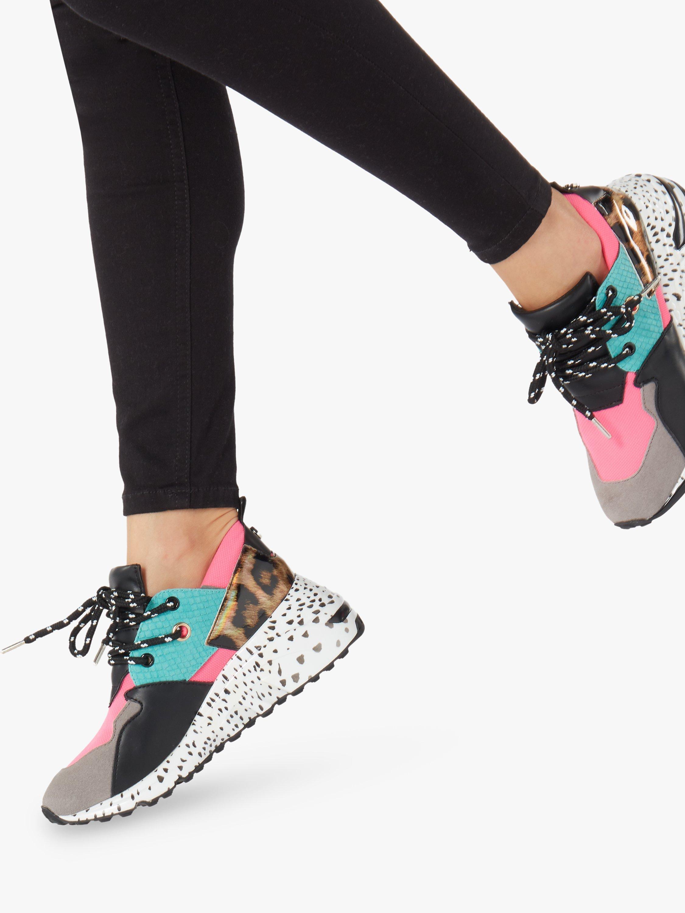 Sitting on a mid-high flatform sole for added lift, the style comprises of standout patchwork patterns with a rounded toe and lace-up front. Team with jeans and an oversized tee to complete the athleisure style.