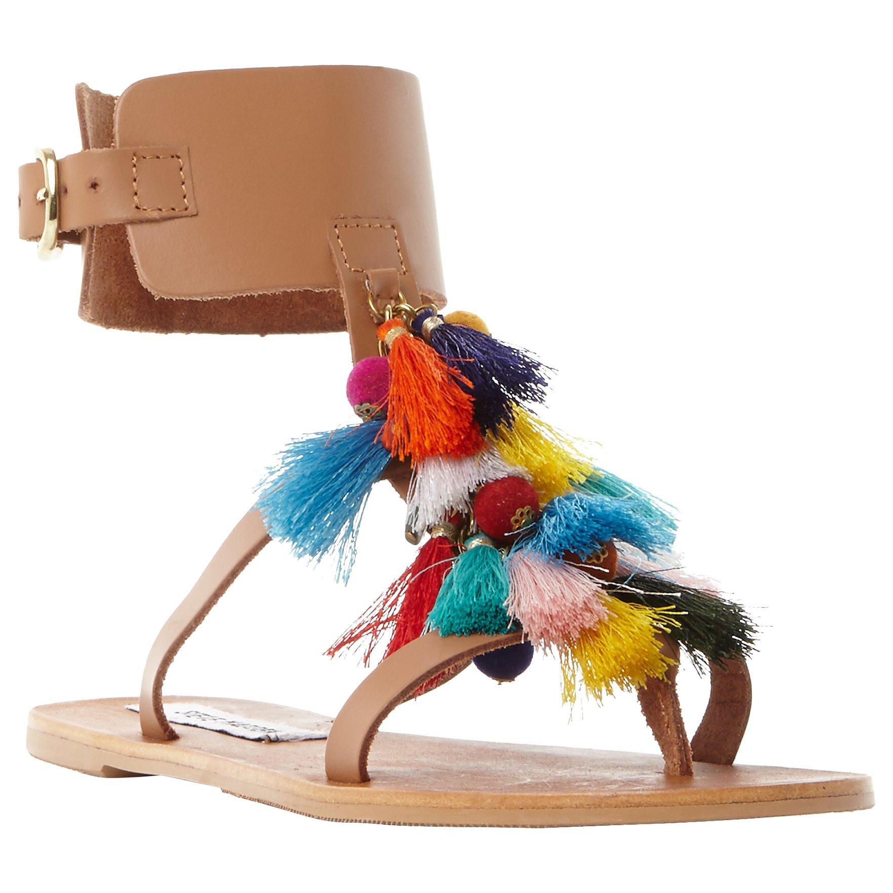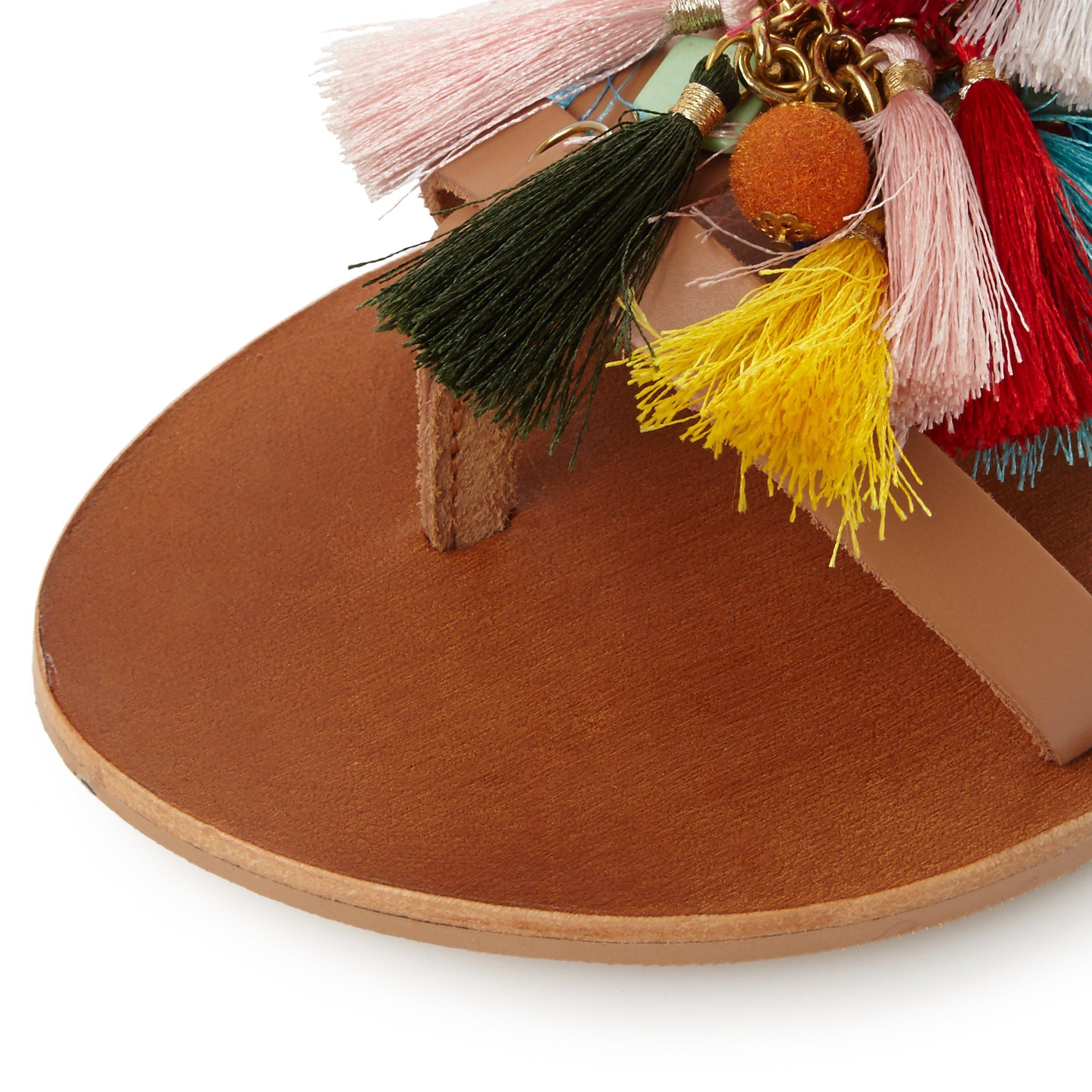 Updating a traditional gladiator design with a contemporary bold twist, these sandals boast a bright tassel, pompom and bead finish on the straps in a rainbow spectrum of hues. Complete with a cuff feature around the ankle that fastens with a buckle strap and leather lining for comfort.