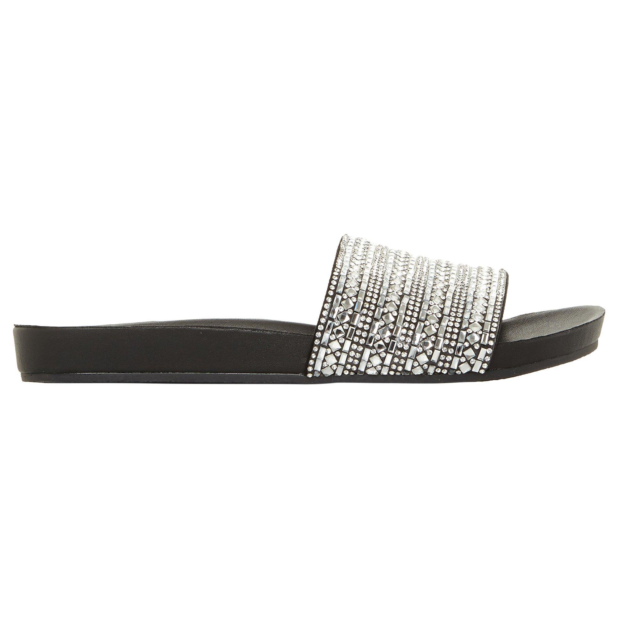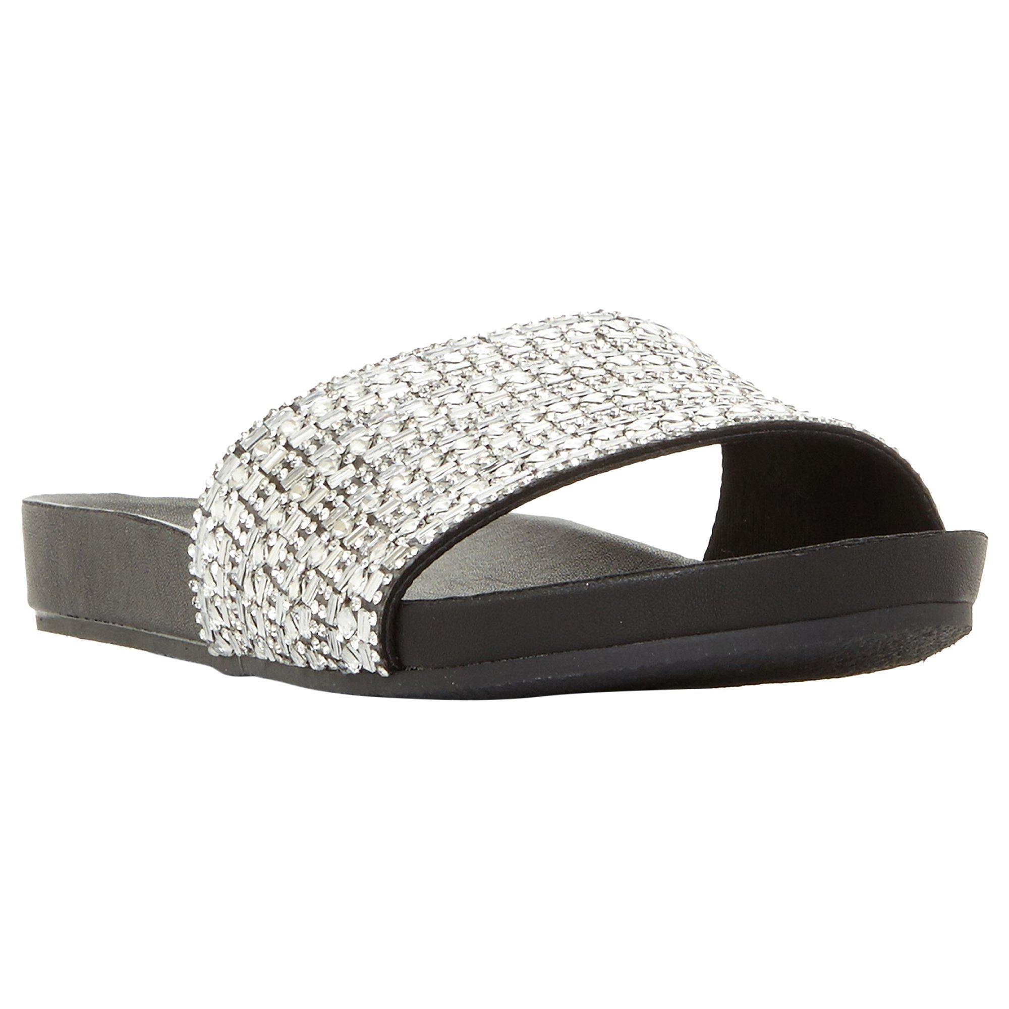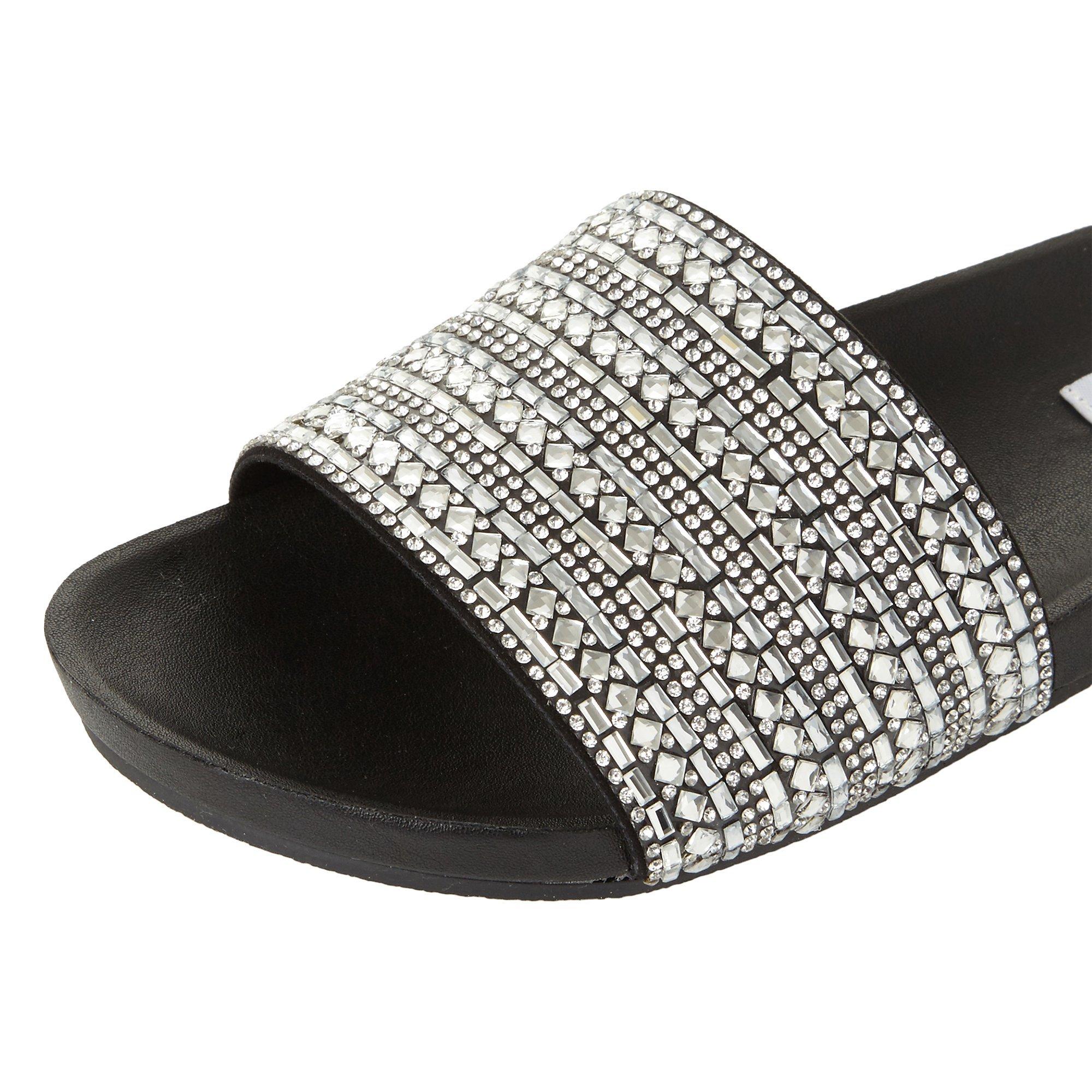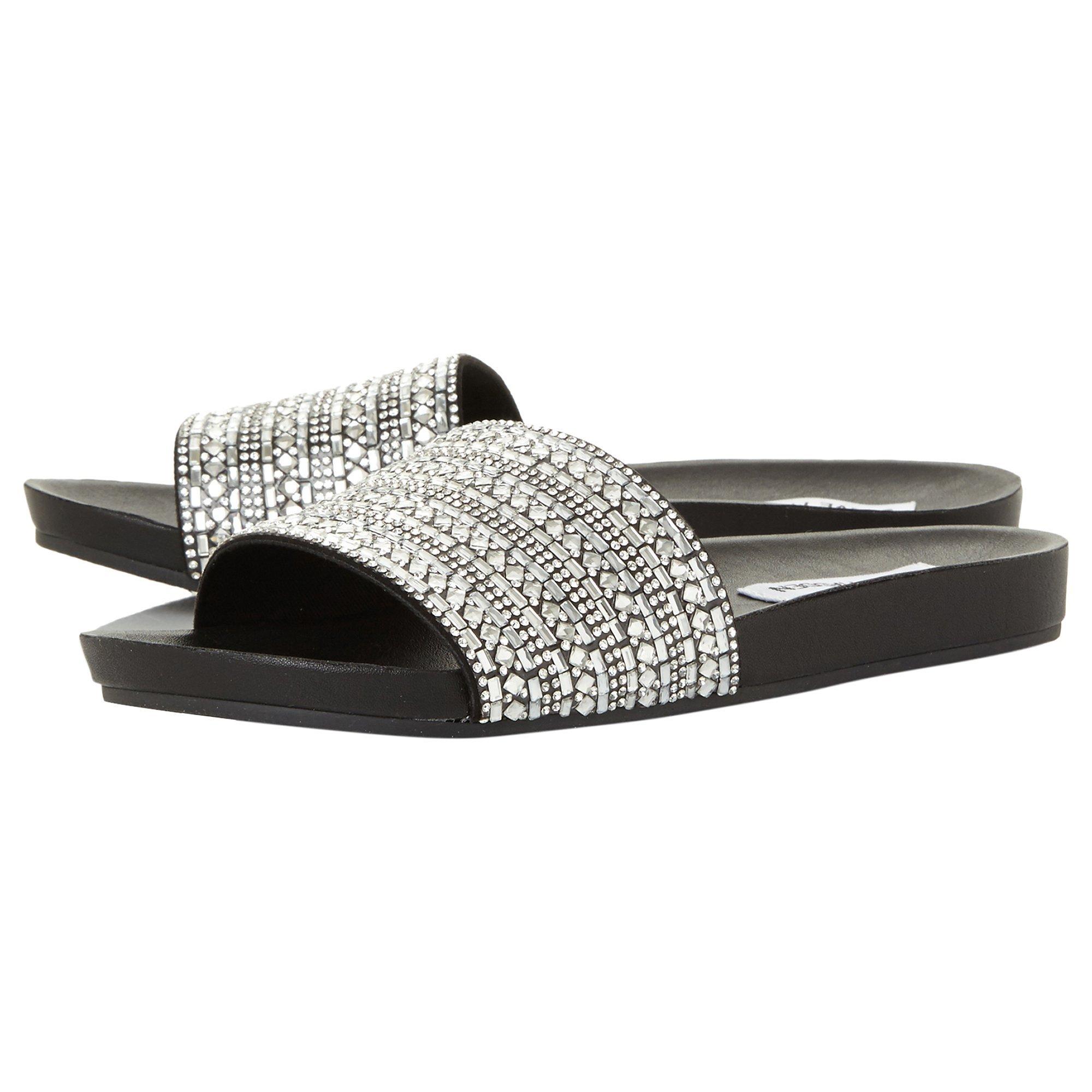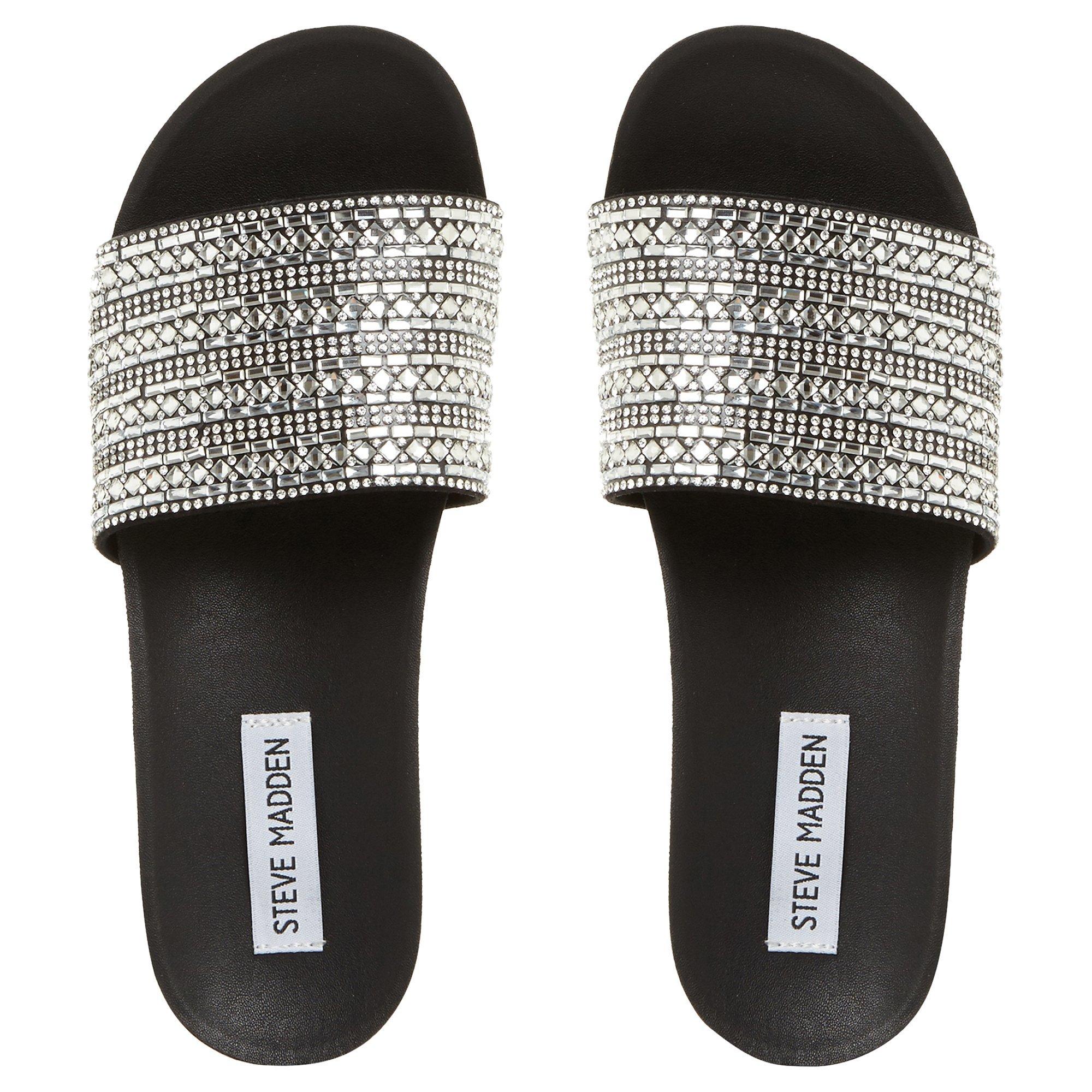 Choose a stand out pair for the beach or pool with these Dazzle sliders from Steve Madden. Featuring a slip-on design, this sandal is embellished with shimmering jewels and is set to a comfortable flat sole.