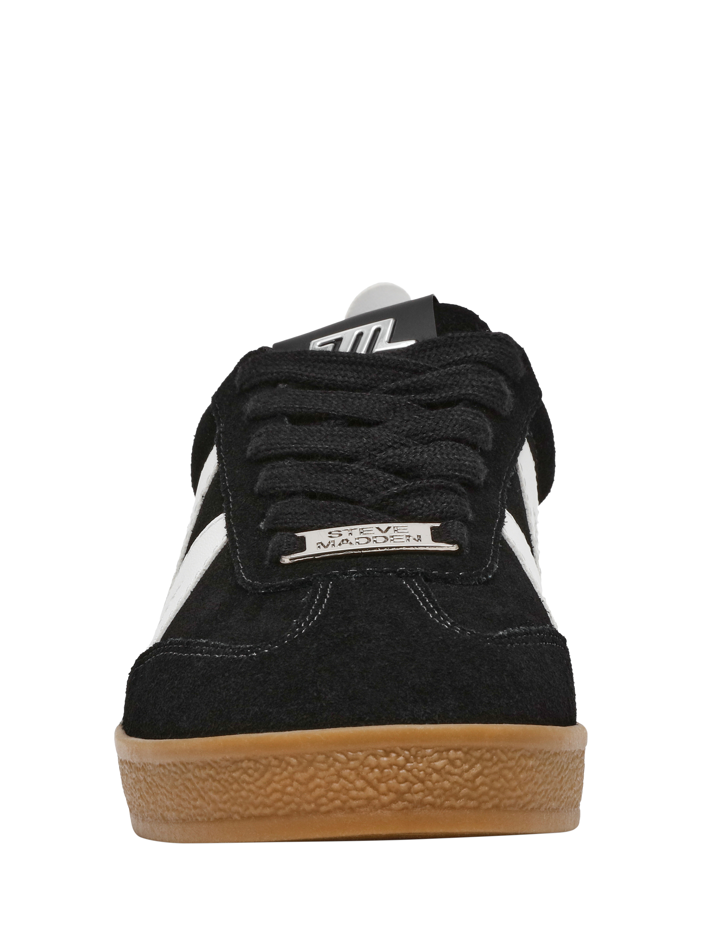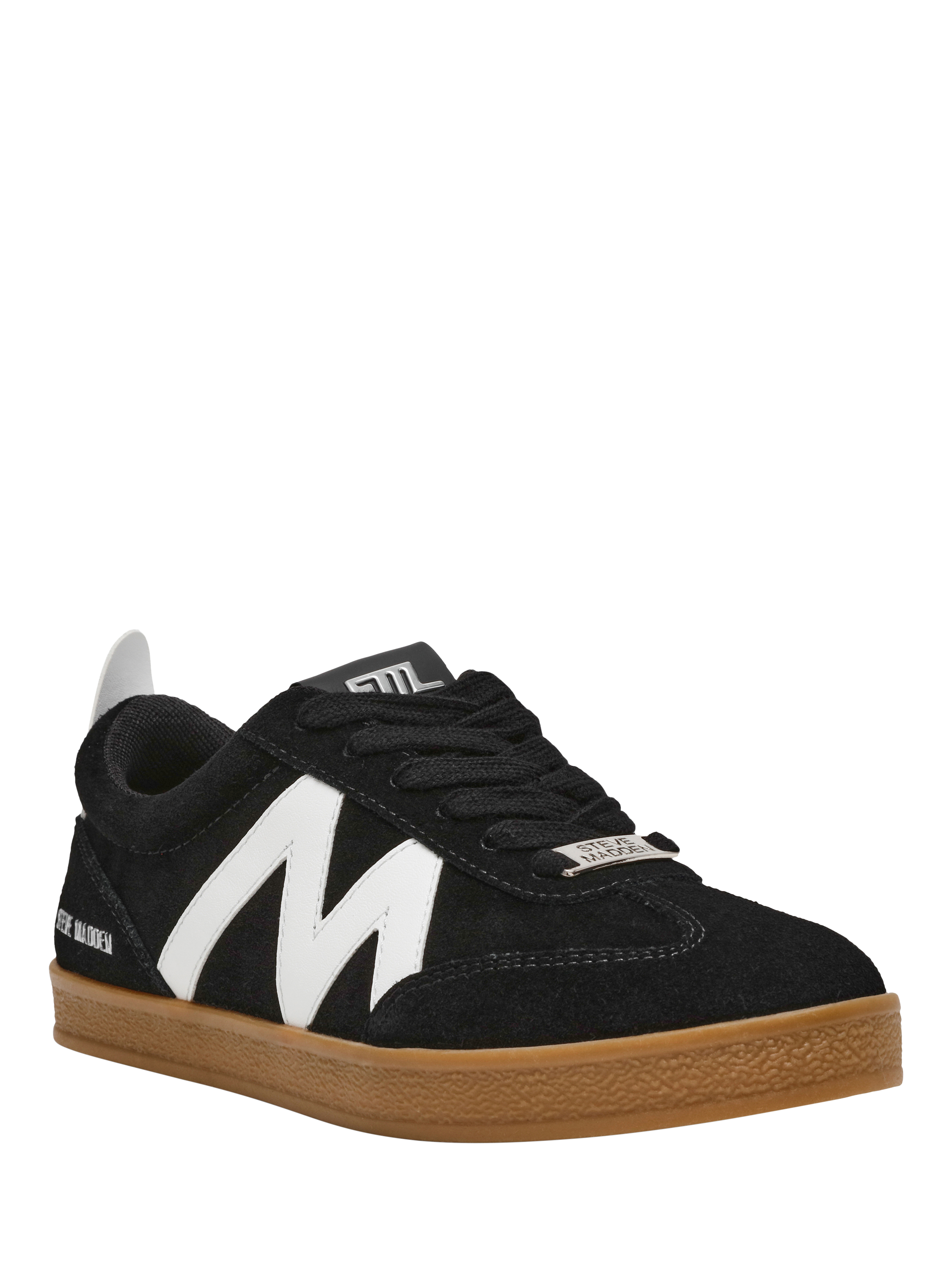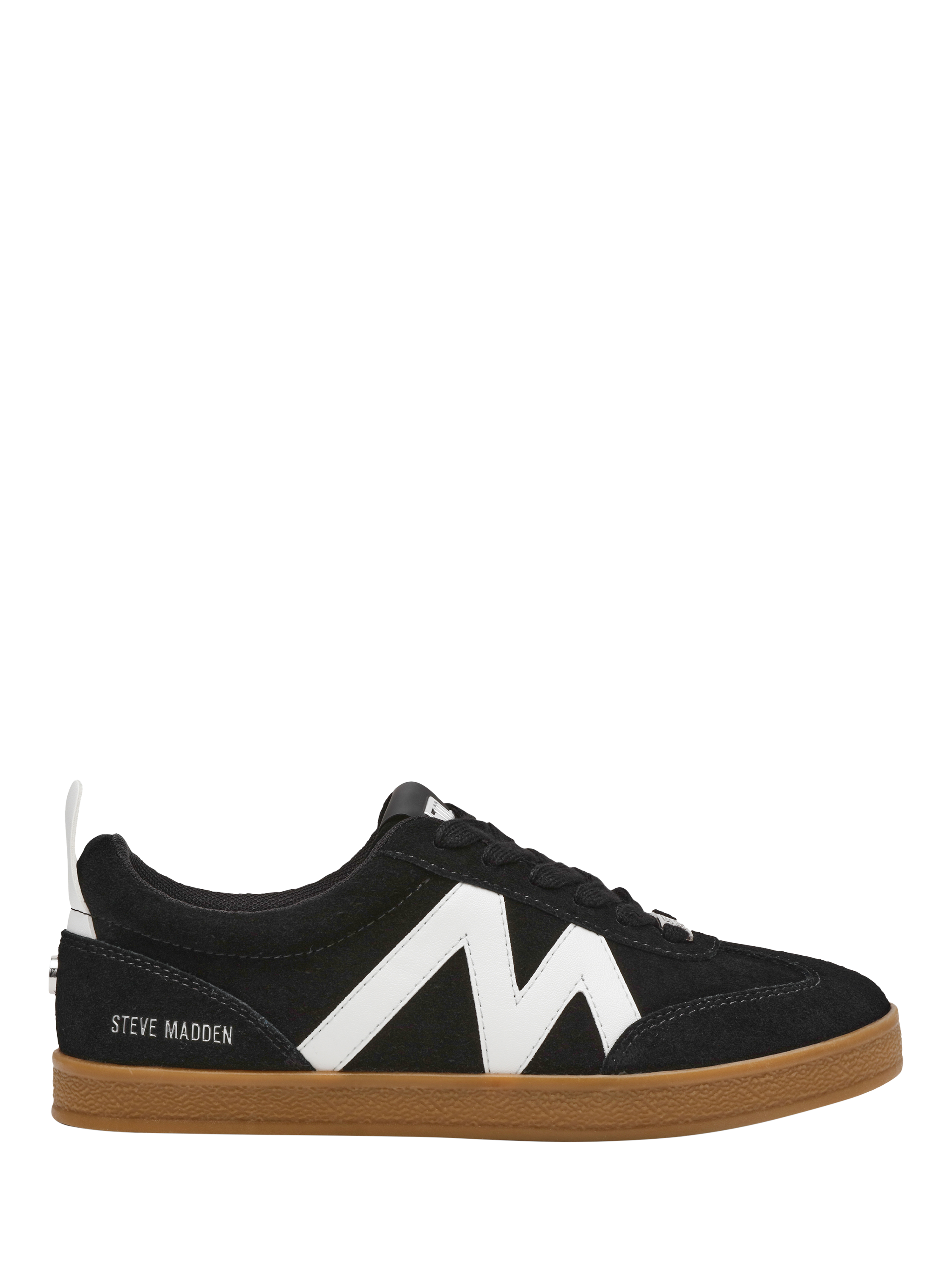Suede blend trainers by Steve Madden, designed with a round toe and subtle logo detail. The low 2.4cm flat heel and lace-up front keep you comfortable and ready for whatever your day brings.
