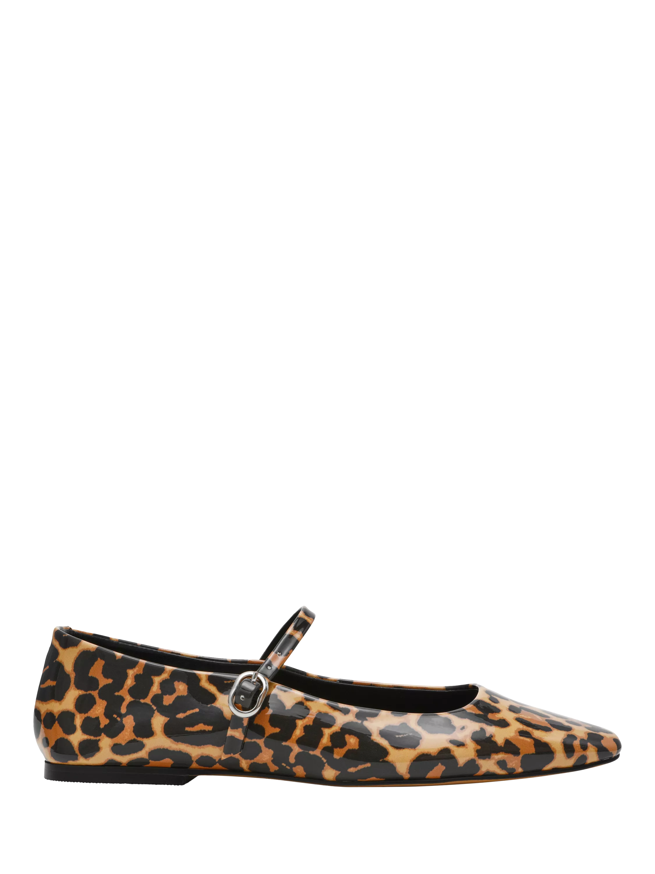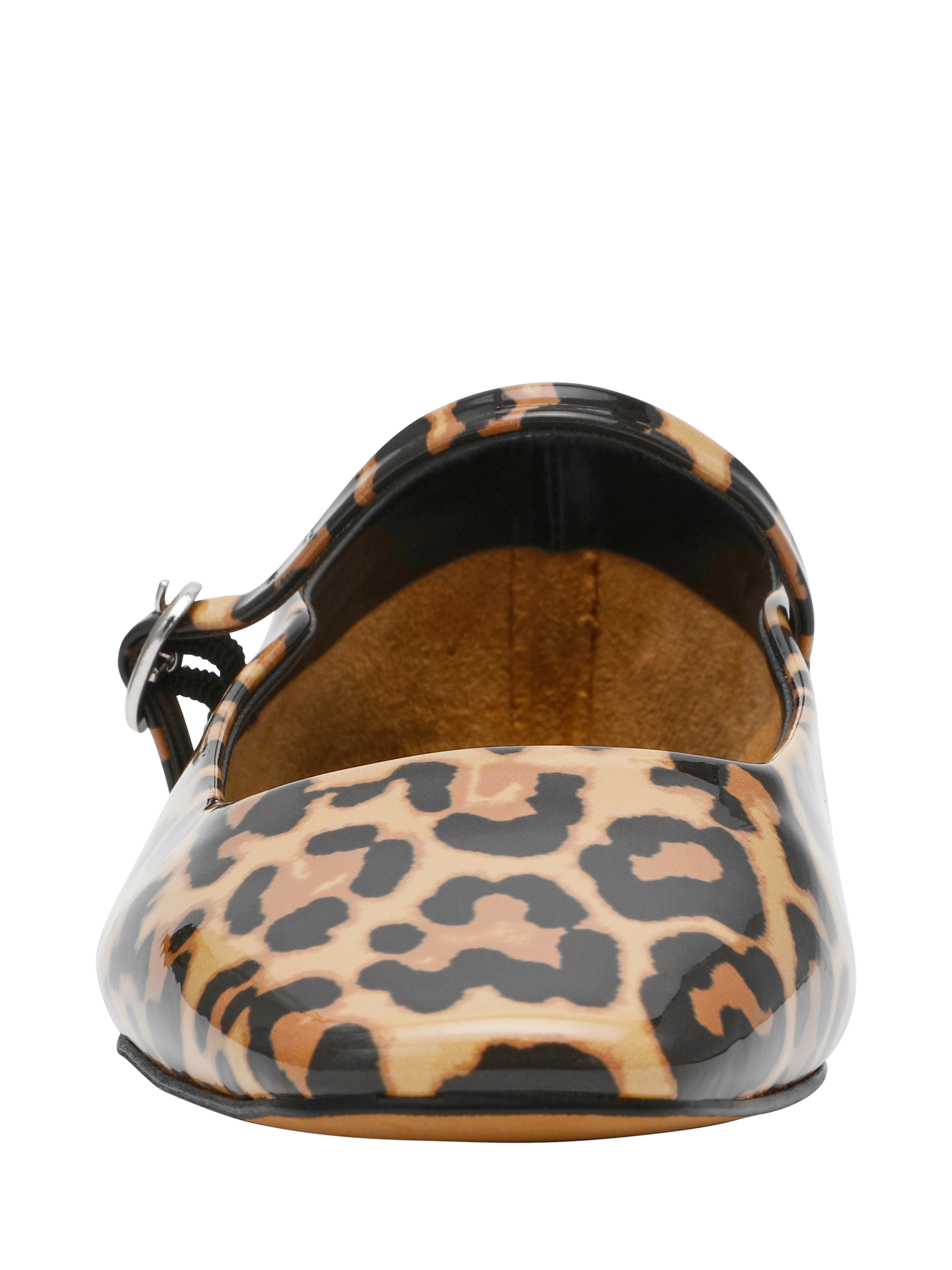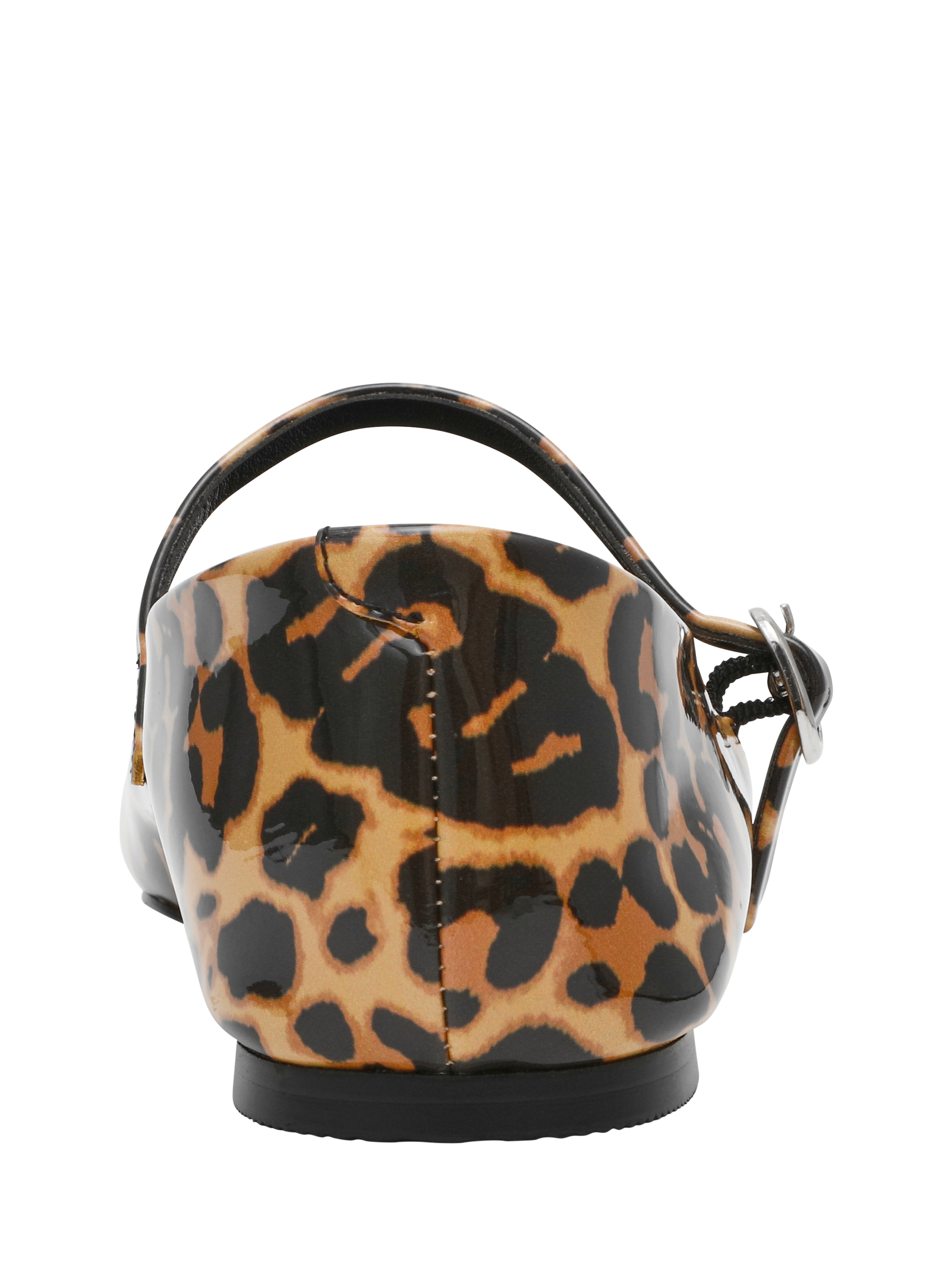 Steve Madden Mary Jane ballerina pumps, featuring a chic leopard pattern, slingback design and rounded square toe. Effortlessly secure the buckle fastening, and enjoy all-day comfort thanks to the flat heel and supportive rubber sole.