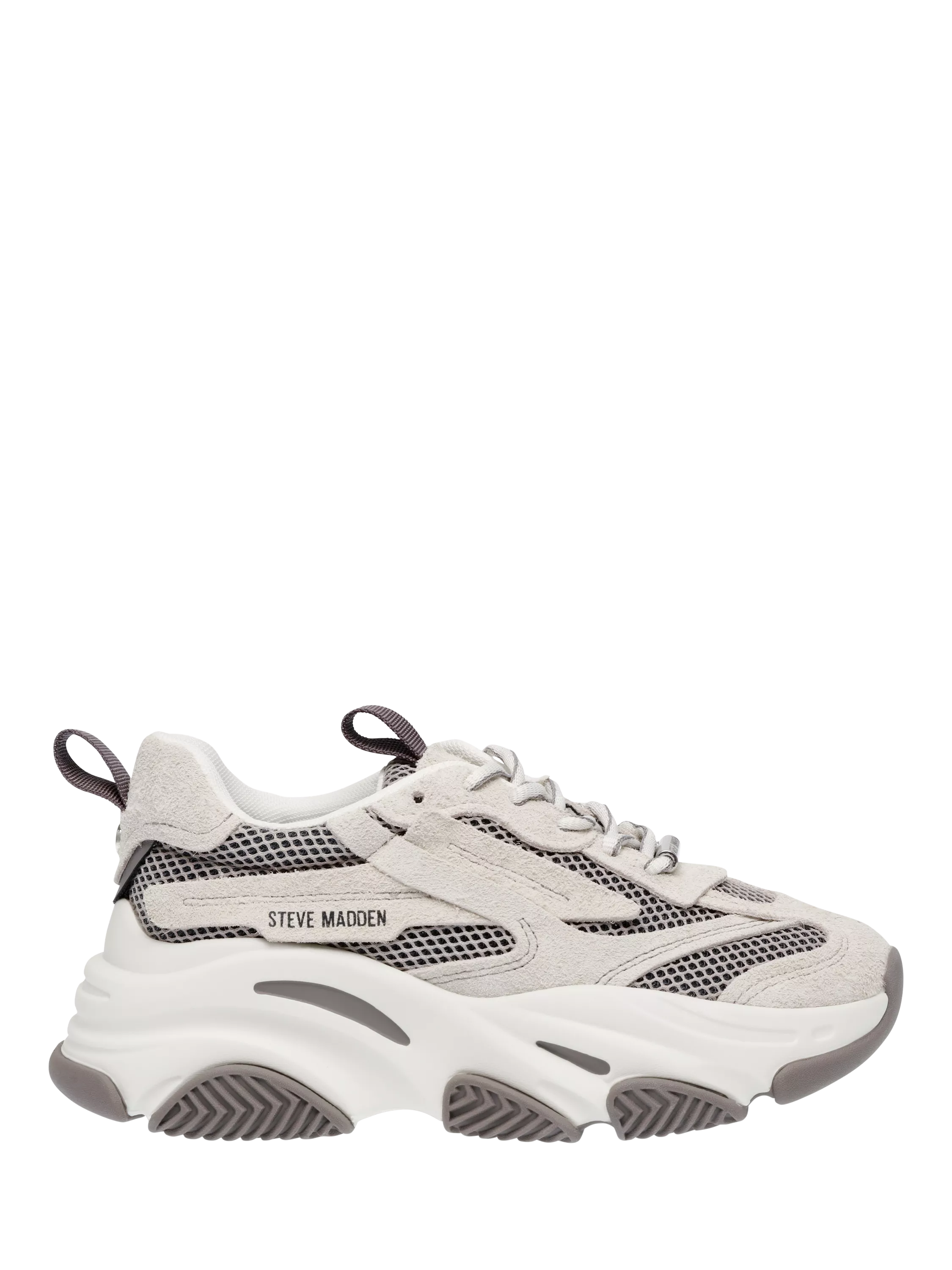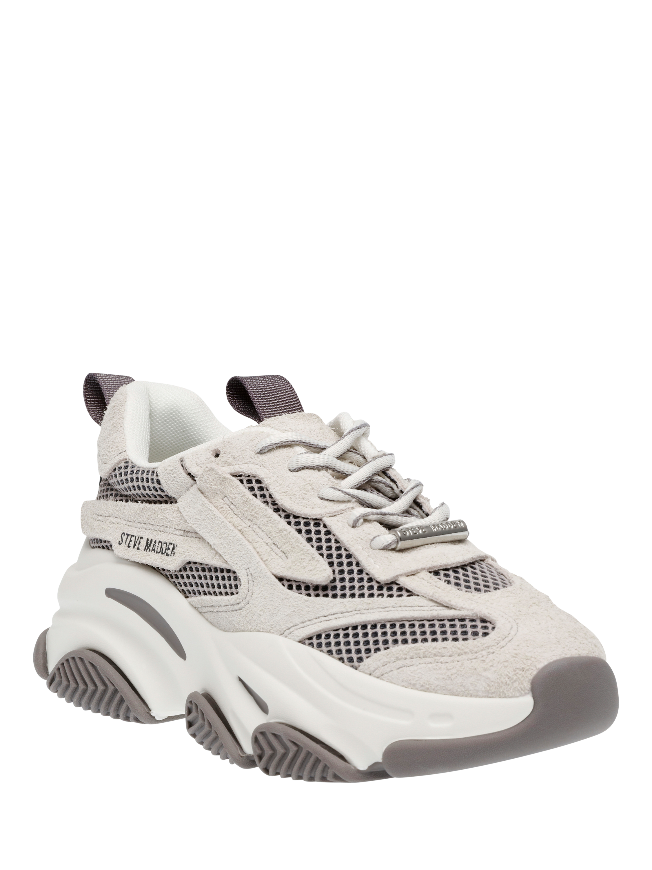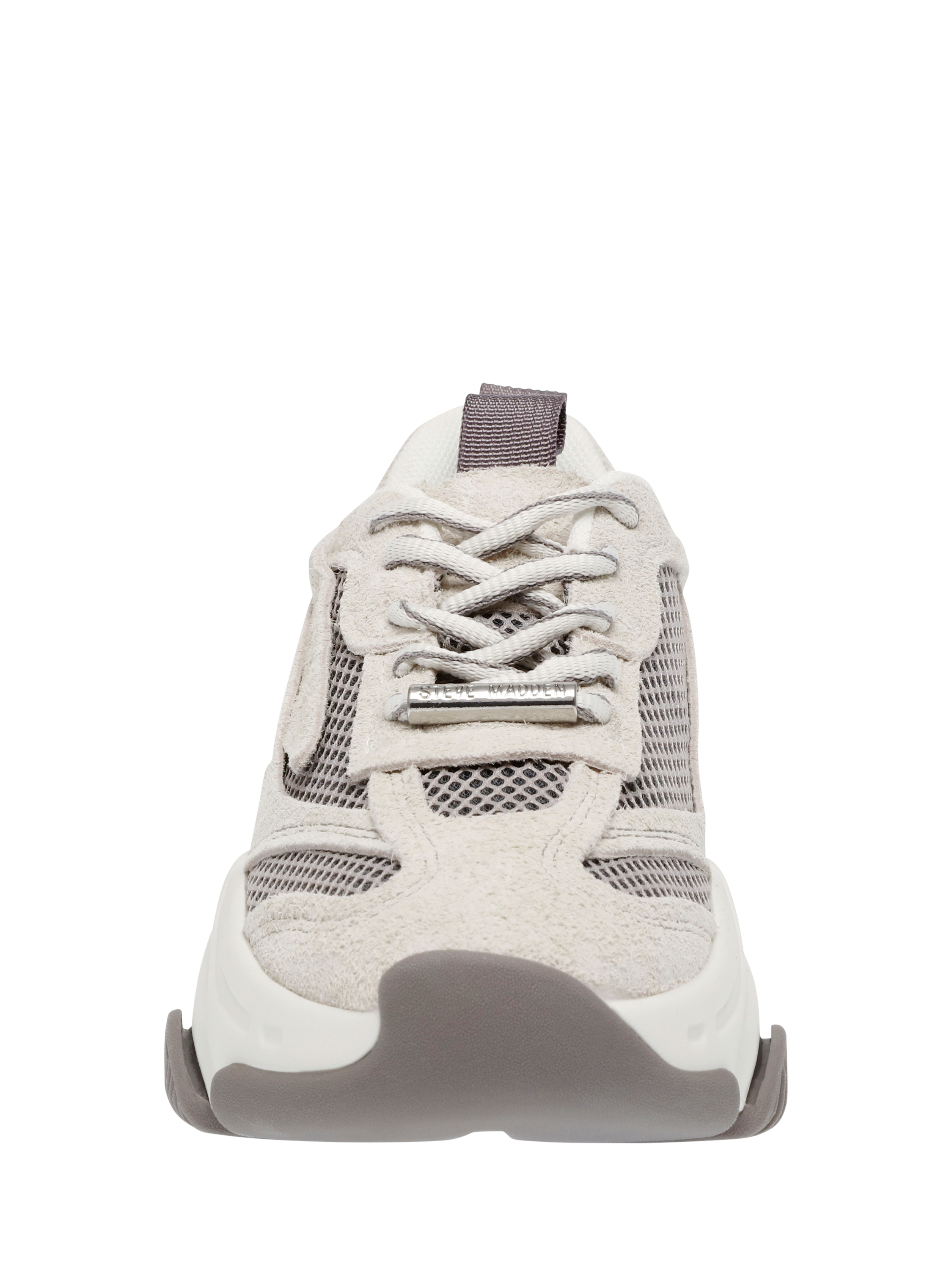 A pair of suede chunky trainers by Steve Madden. The playful colour block design and clever flatform sole keep you comfortable, whether you are heading to brunch or exploring the city.