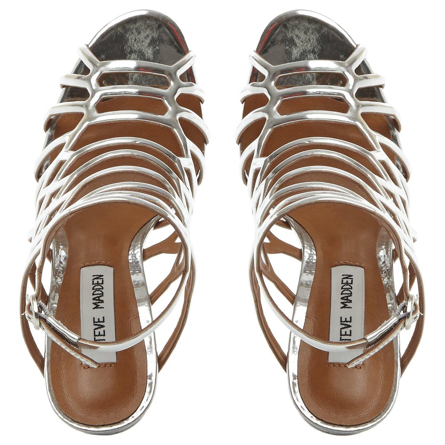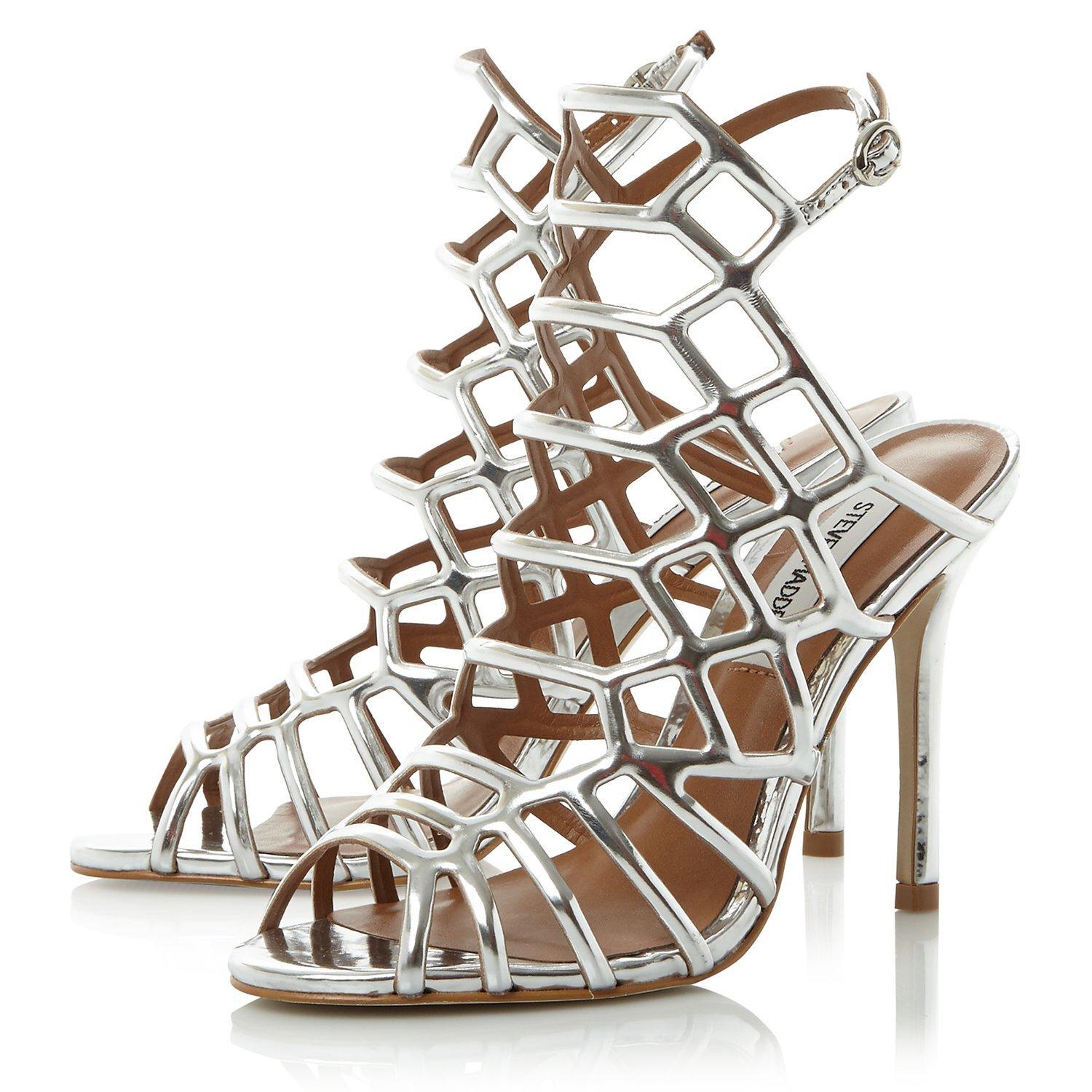 Add a feminine finish to your party pieces with Slither from Steve Madden. With a high stiletto heel, a dramatic caged upper for an eye-catching silhouette and a subtle buckle fastening to the ankle, these heels are a modern addition to any occasion outfit.