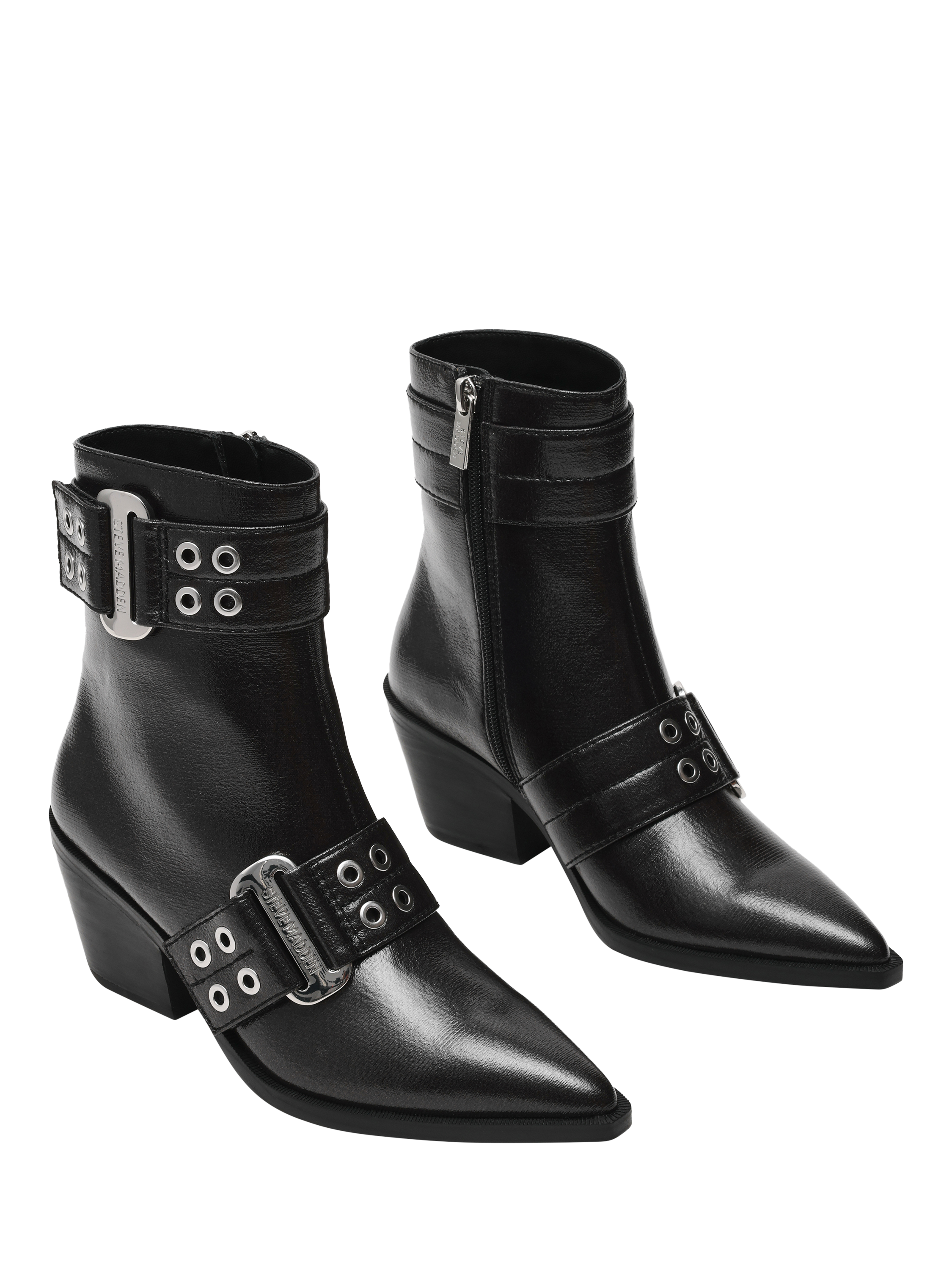 Pointed, plain ankle boots featuring a 4cm Cuban heel and side zip fastening. Designed for comfort and style with chunky buckle detailing, they are perfect for daily wear.