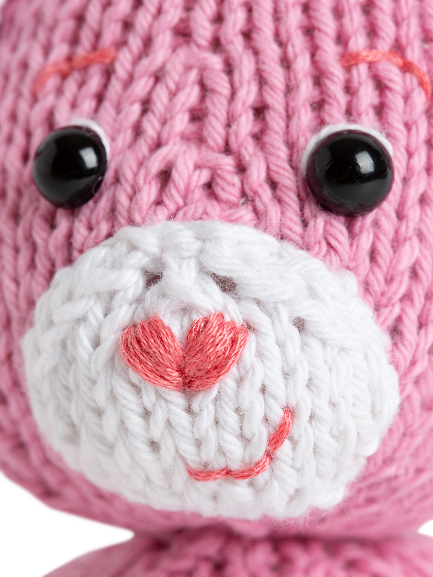 - Each kit includes:2 x 25g S&S The Cotton One in Rose Pink1 x 25g S&S The Cotton One in Paper White1 x Red Poppy Embroidery Floss1 x Lapis Blue Embroidery Floss1 x Marigold Yellow Embroidery Floss1 x Coral Pink Embroidery Floss1/2 Flamingo Pink Felt Sheet4mm knitting needlesCheer Bear Amigurumi knit patternToy stuffingSewing needle2 x 10mm Toy Safety Eyes