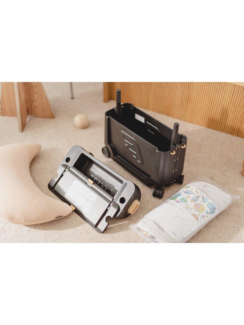 Fun and functional with ample storage, the BedBox™ holds your child’s must-haves. Once packed, let your little one ride it (or pull it) through the airport terminal for stress-free transport. Once the seat belt sign is off, transform the BedBox™ from a suitcase to a bed in 5 simple steps. The ride-on suitcase is for children 3-7 years old, and the bed feature is best suited for children over 2 years. Officially approved by many airlines.