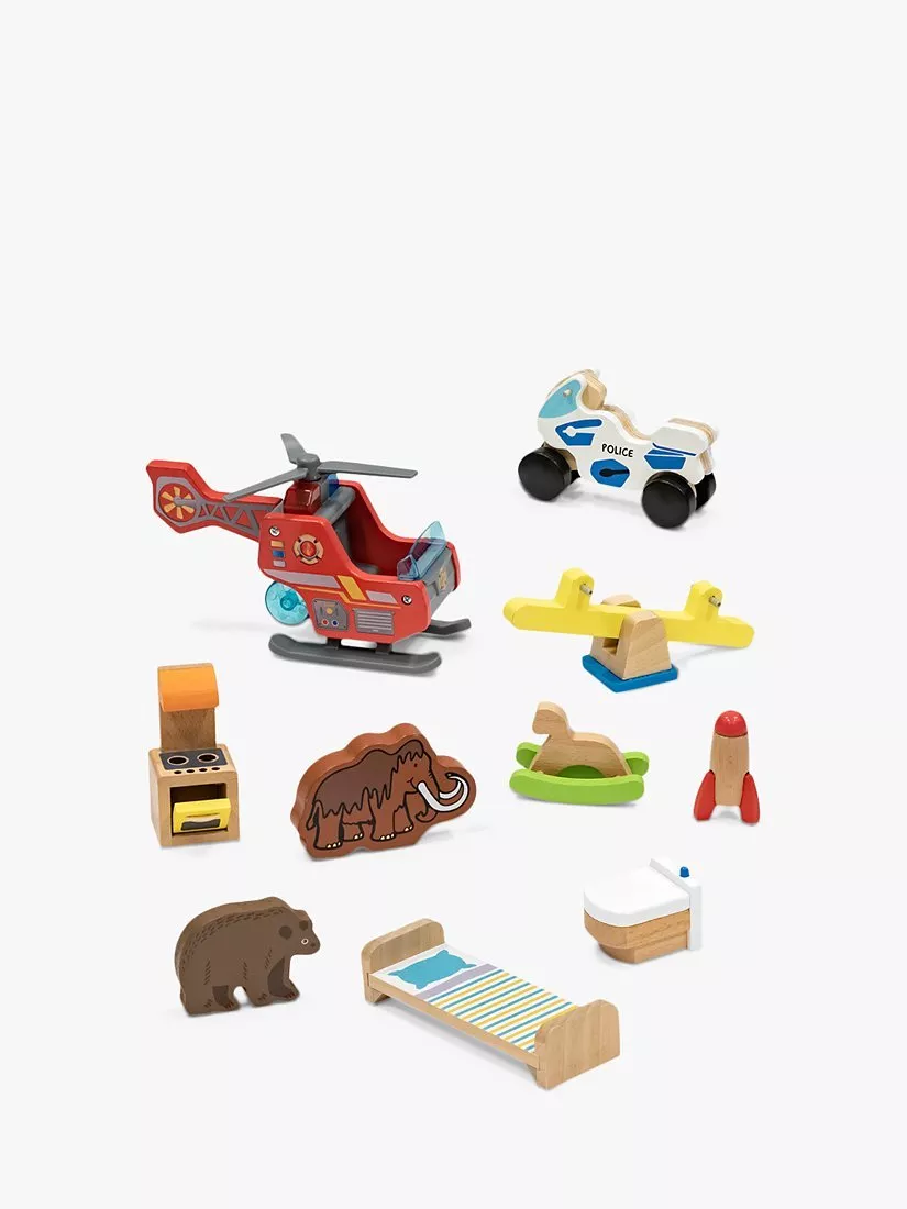 Heroes House Accessories by Hape Toys compatible with the Stokke® MuTable Playhouse to create infinite adventures. Encourages creativity and imaginative play for toddlers and children. Made of wood with 16 different accessories including first responder and playhouse toys. Recommended for kids ages 3+ years.