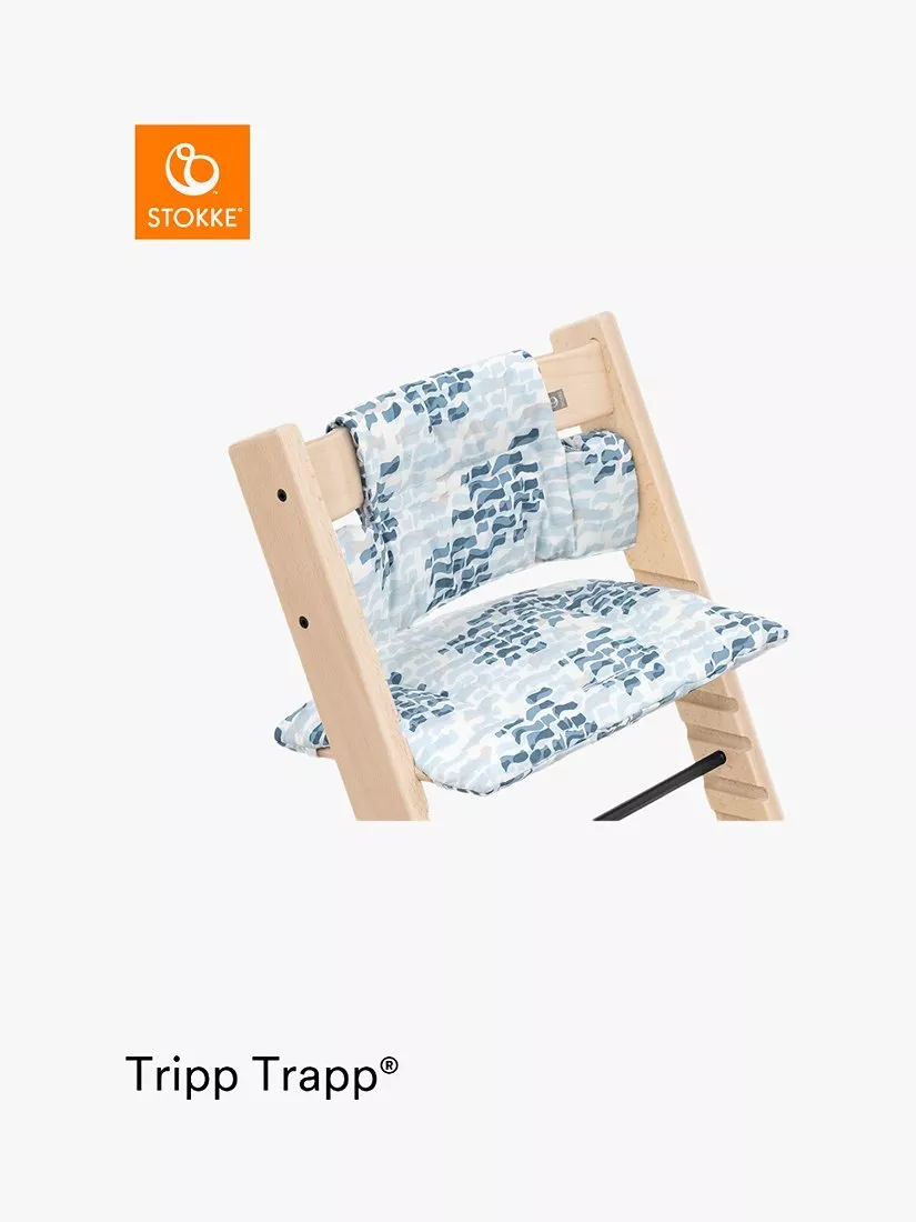 Designed for the Tripp Trapp® chair and high chair, the soft cushion is a versatile and functional style that adds both softness and personality. Offered in a coated version for easy wipe cleaning, the cushion is easy to mount and remove. Best of all, it is compatible with all Tripp Trapp® chairs with or without the Tripp Trapp® baby set.
