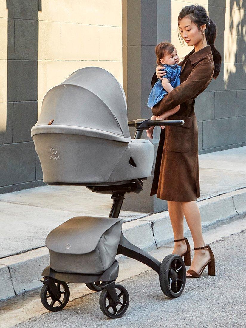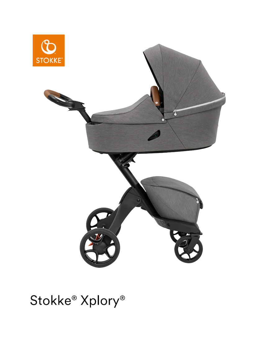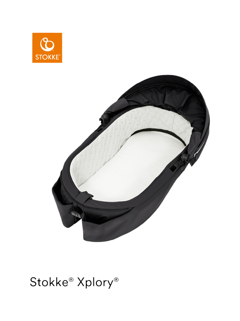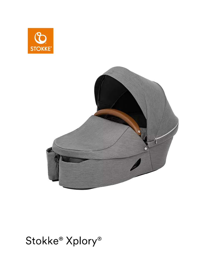 Protective and practical, this Stokke Xplory X carrycot gives your infant a cosy place to lie flat for rest and sleep during your outings together. The carry handle is covered with durable leatherette and doubles as a seat rail. Please note the carry handle comes with your stroller's seat and can be used with the carrycot. The hinged carry handle provides easy access to your baby and makes the carry cot easy to carry.