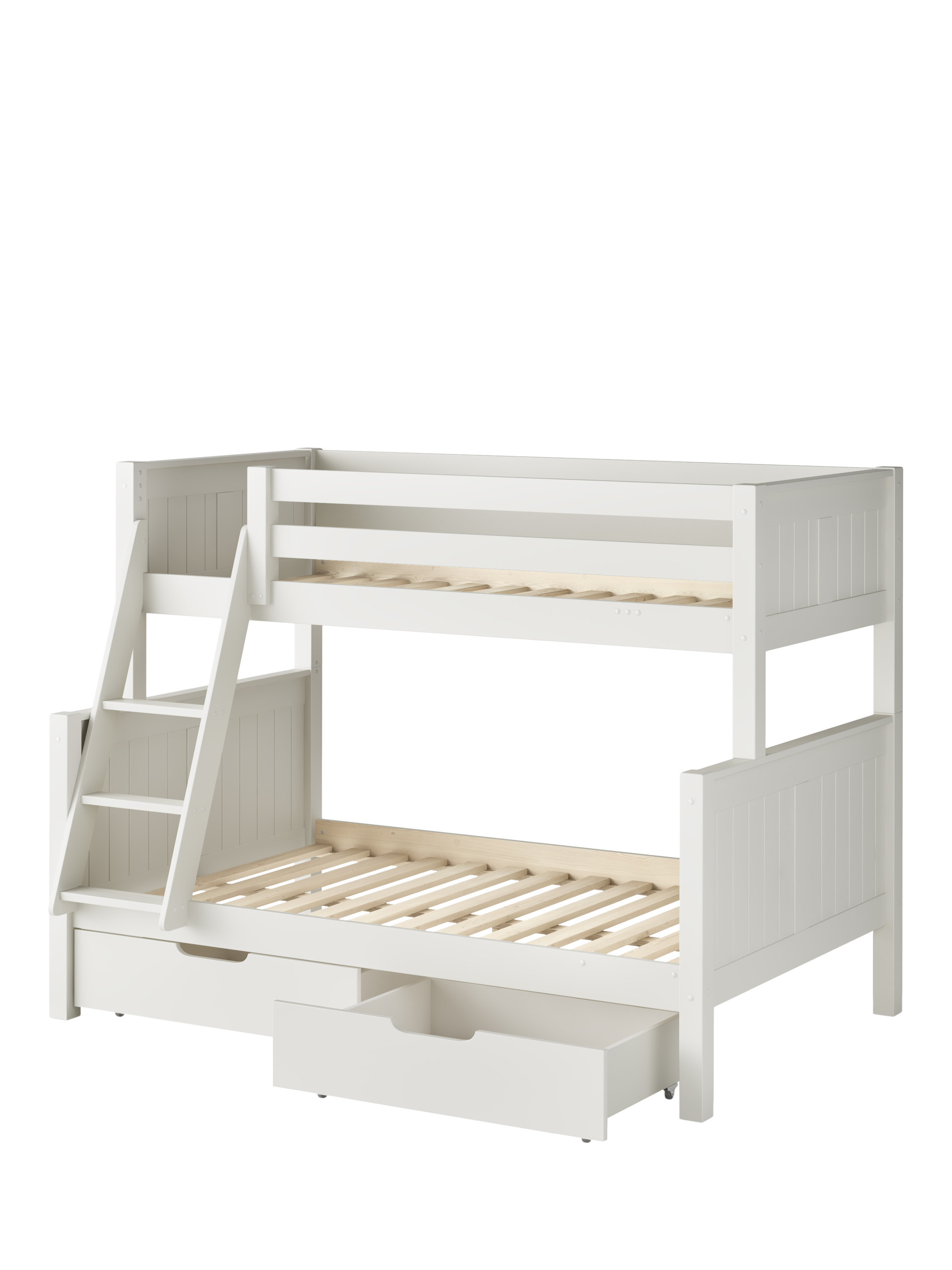Adapting to your changing needs, this bunk bed easily detaches into a lovely small double and a UK standard single bed. The integrated pair of useful storage drawers adds an extra layer of convenience, making it a perfect choice for those seeking adaptable furniture solutions with ample storage.