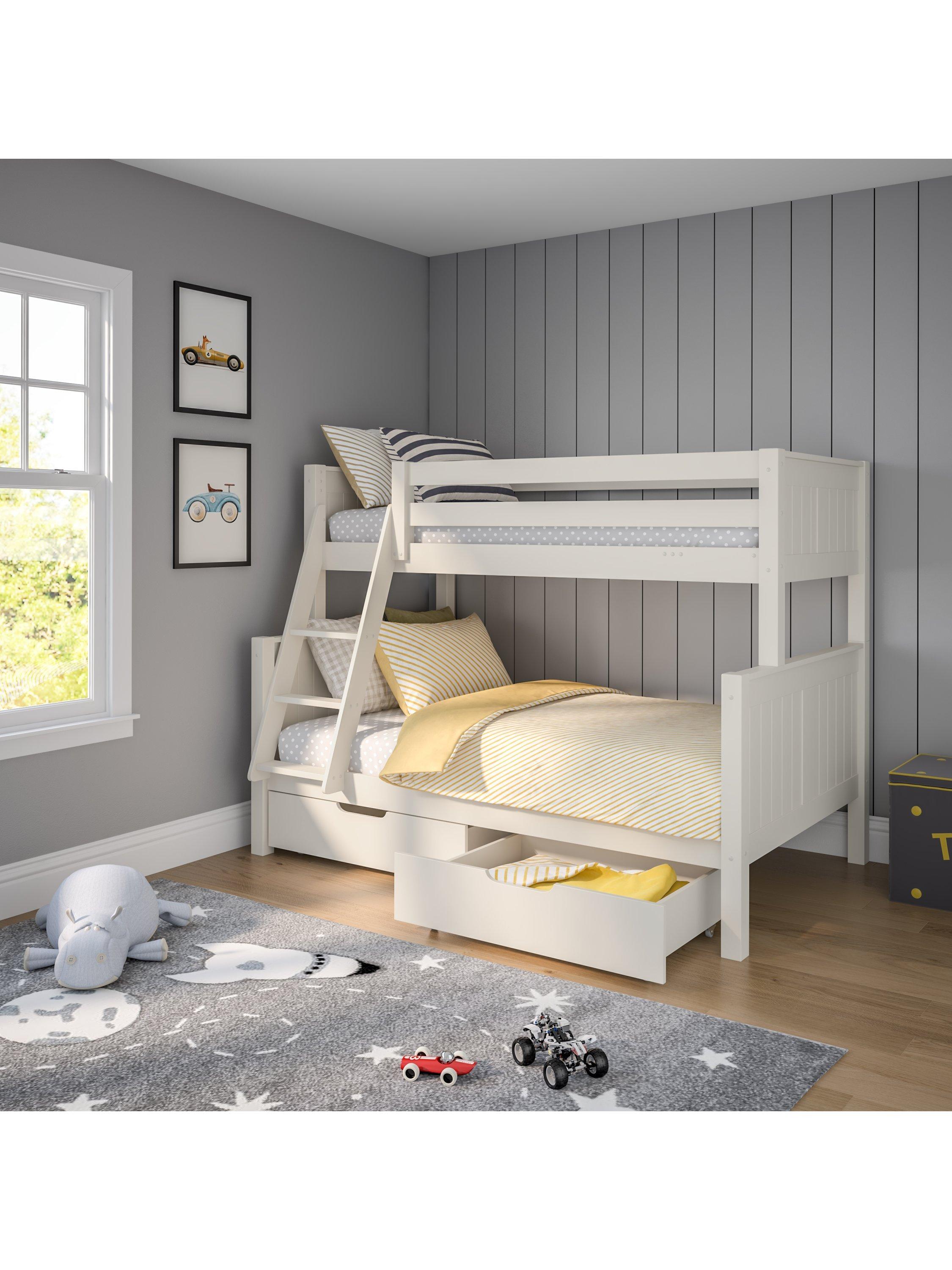 Elevate your sleeping arrangements with the Classic Originals Triple Bunk Bed including a pair of useful storage drawers as a key feature. These spacious drawers are seamlessly integrated into the design, offering a stylish and practical storage solution for clothes, bedding, or other essentials. Redefine your bedroom by creating a tidy and organised space with this valuable addition.