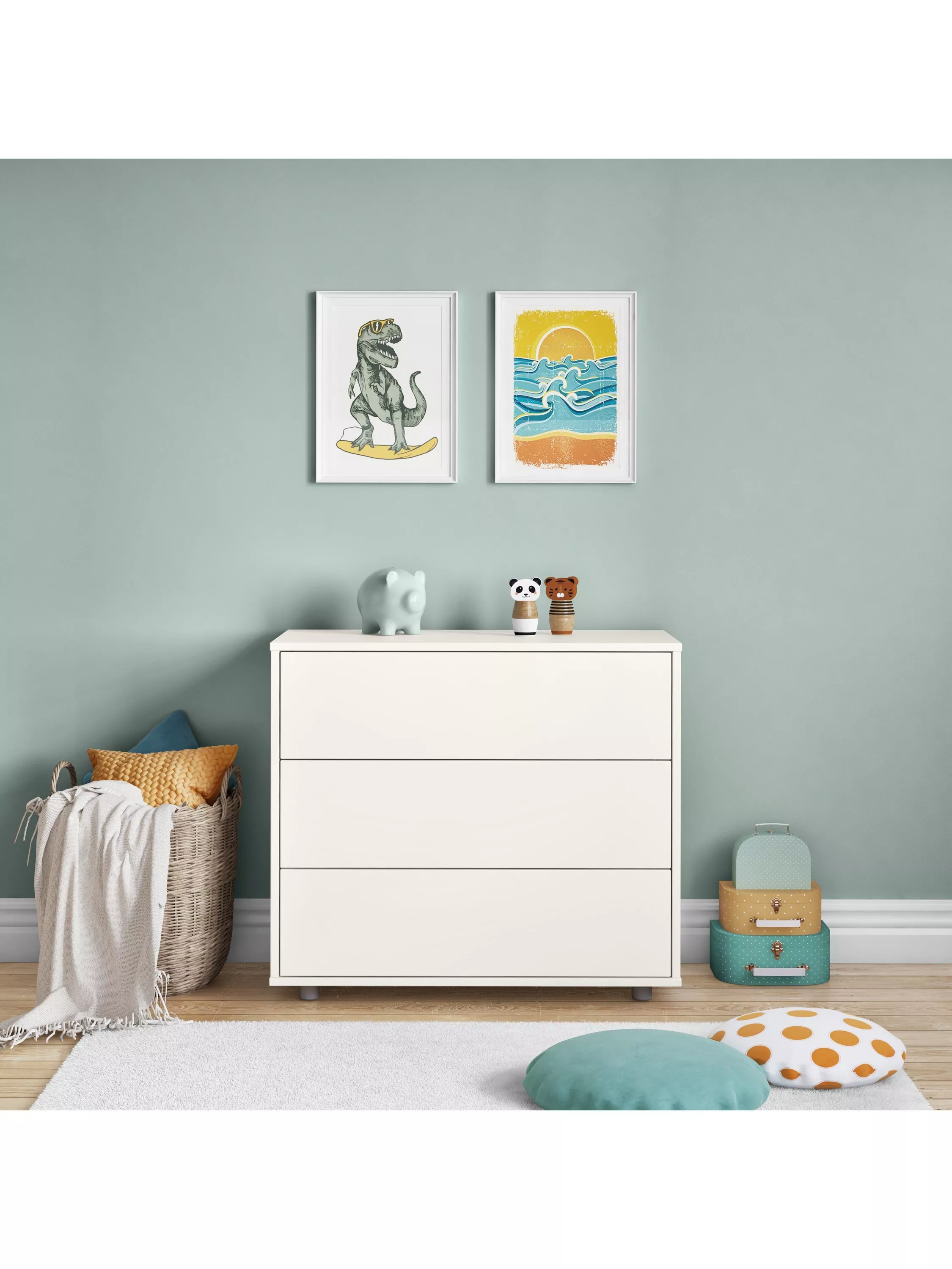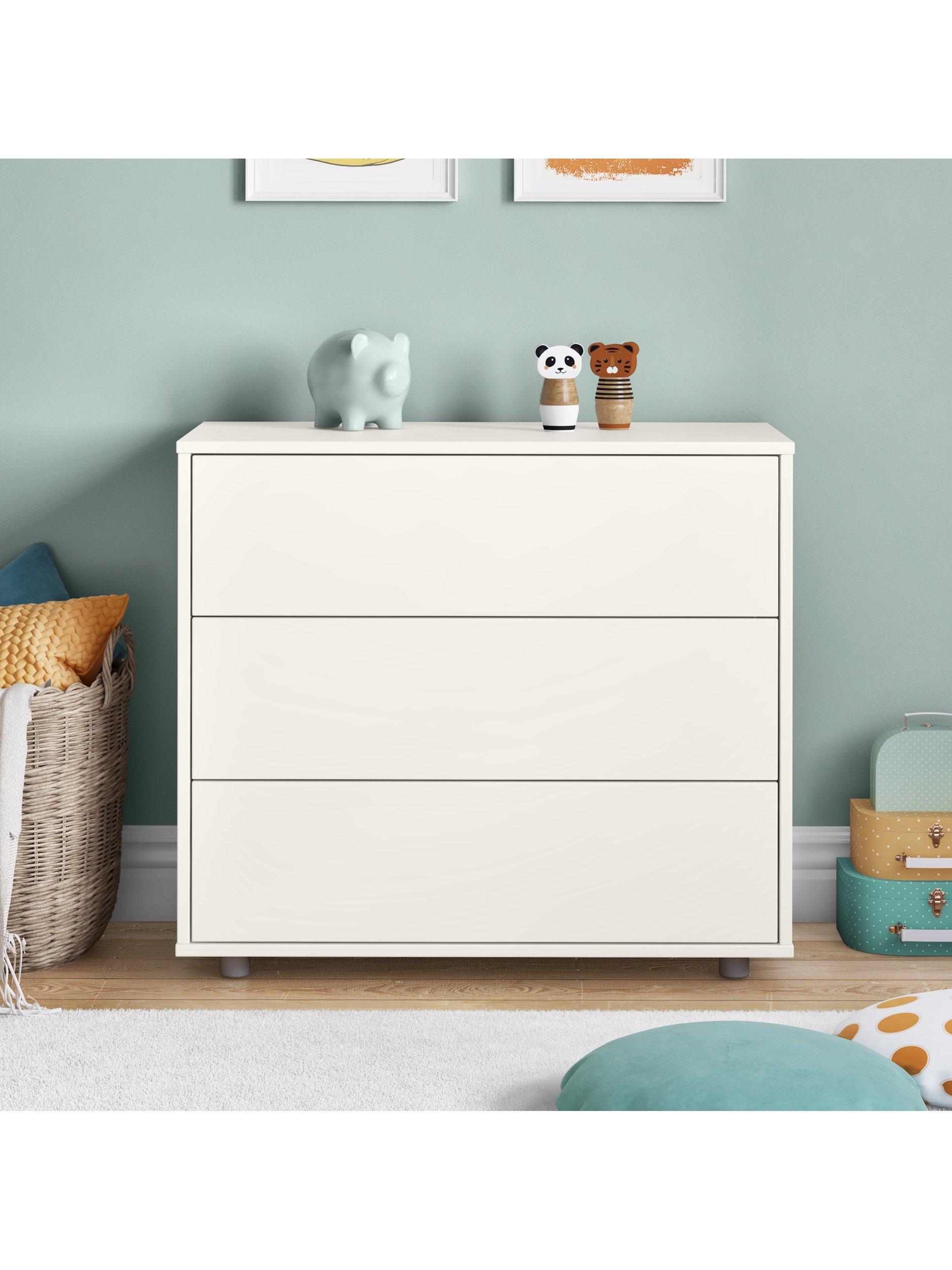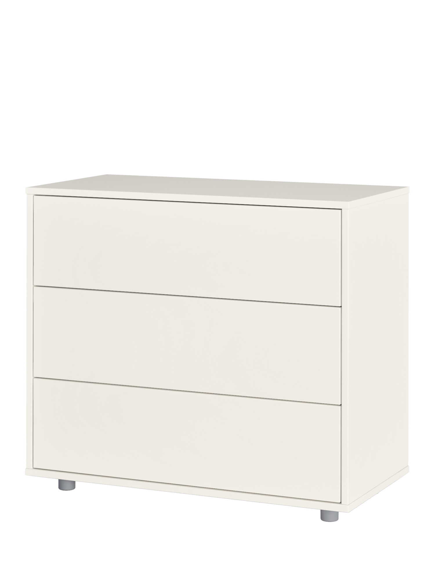 Each of the three drawers features smooth running metal runners and a sleek and discreet push-to-open function. The chest then sits on attractive metal-tone feet.