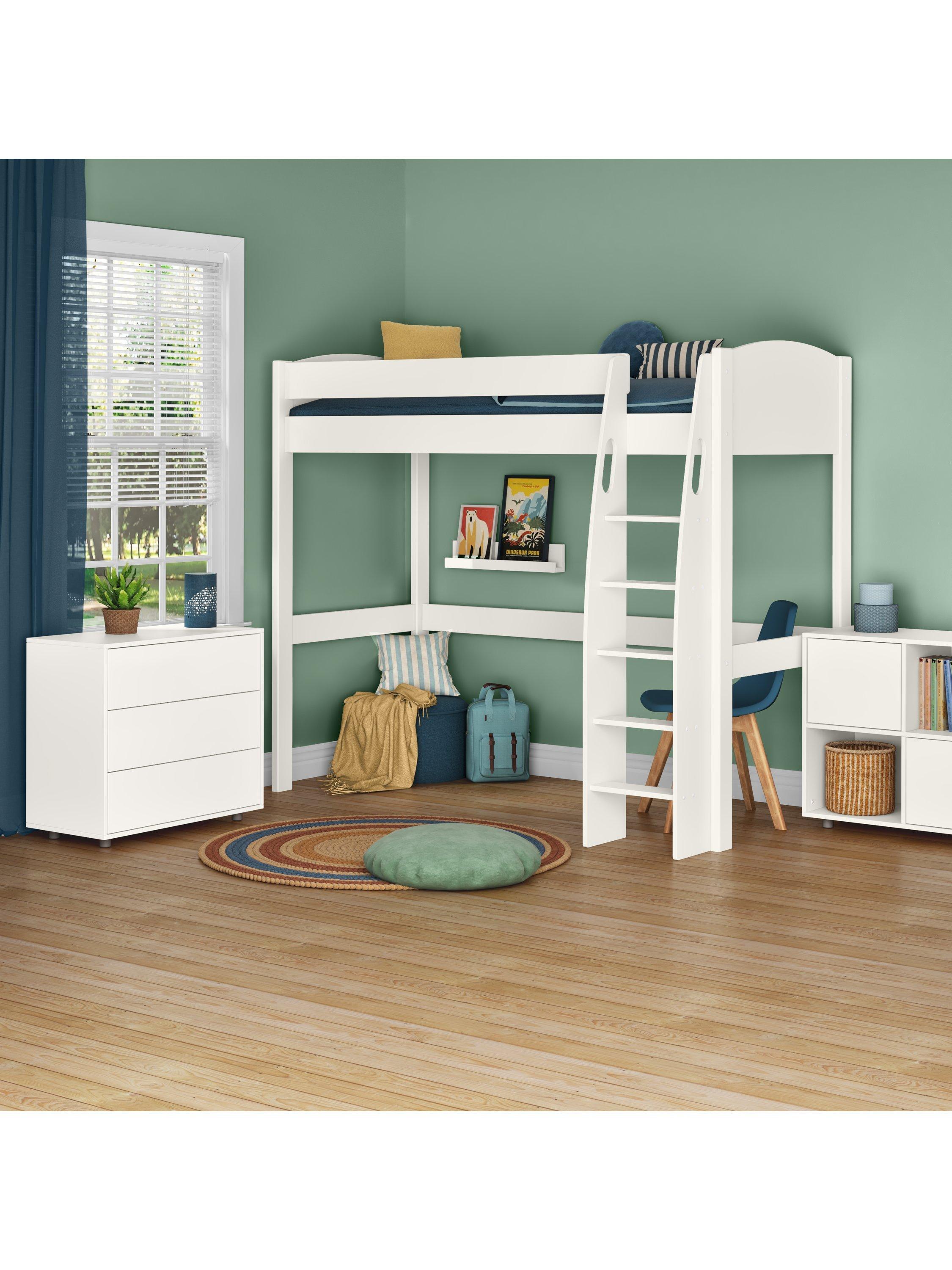 This impressive high-sleeper bed offers plenty of functional space beneath. Make use of the under bed area by creating useful combinations of Stompa furniture to create a dedicated place for work, rest and play.